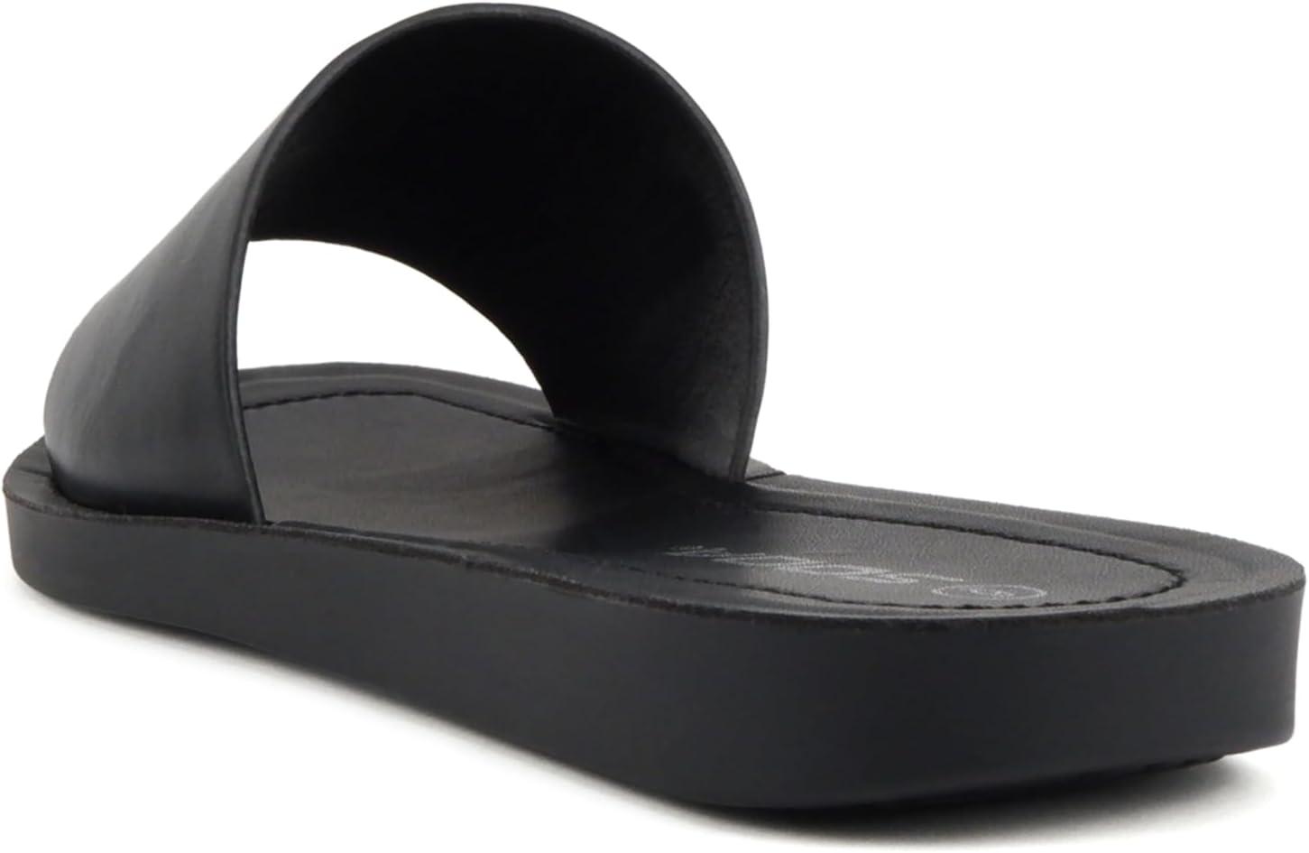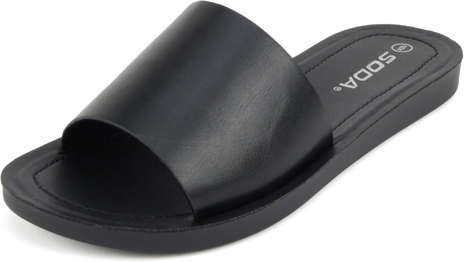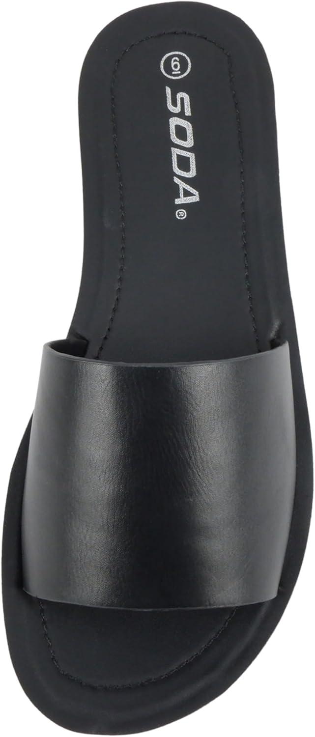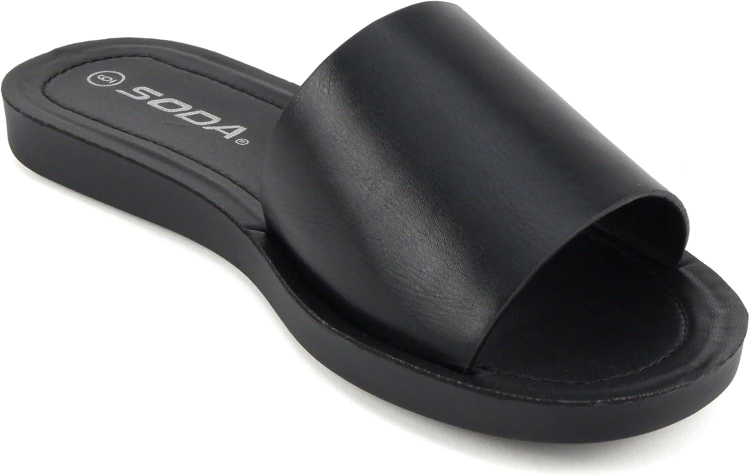 Soda Shoes Efron-S Women Flip Flops Basic Plain Slippers Slip On Sandals Slides Casual Peep Toe Beach(All Black Pu)