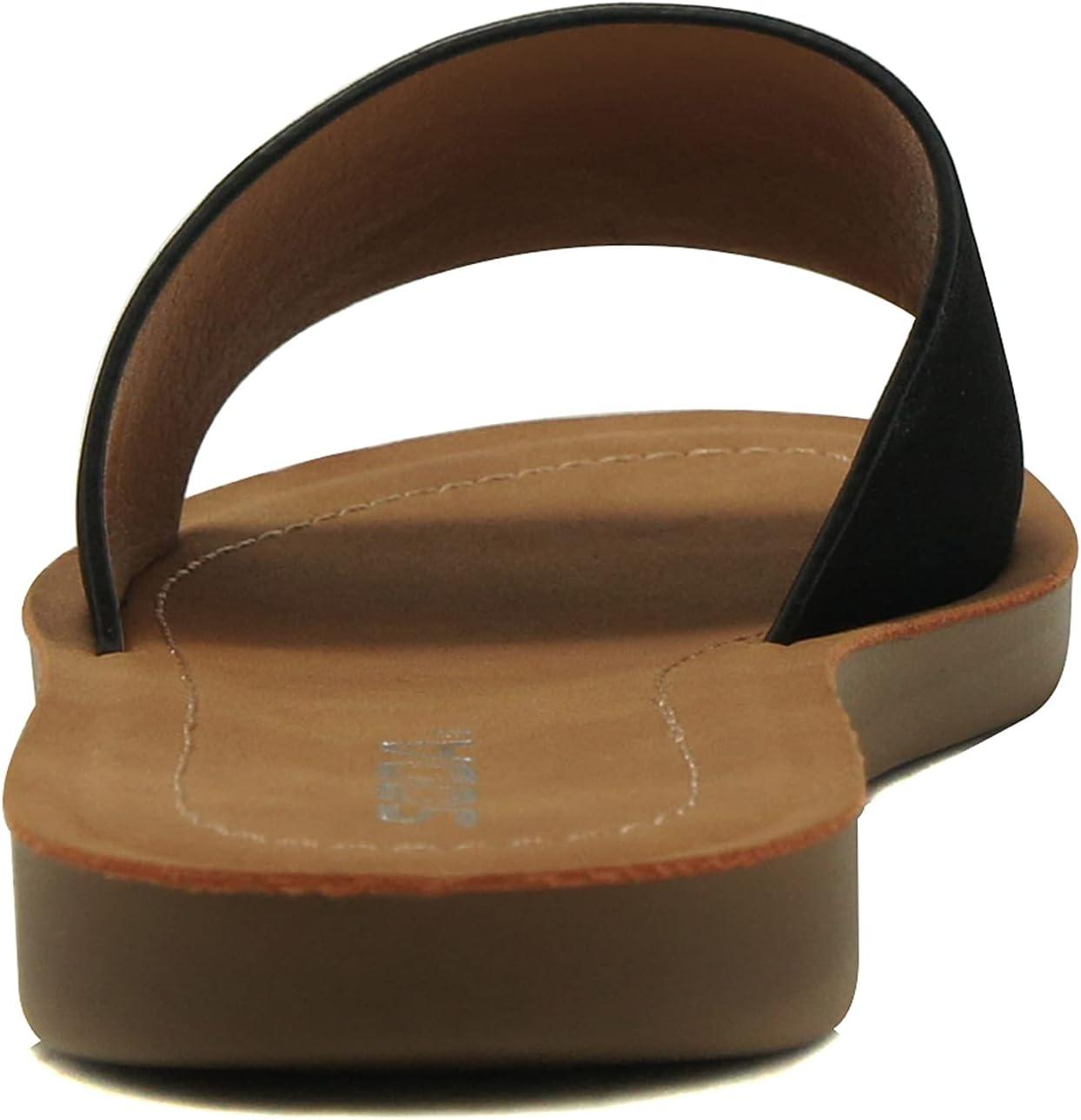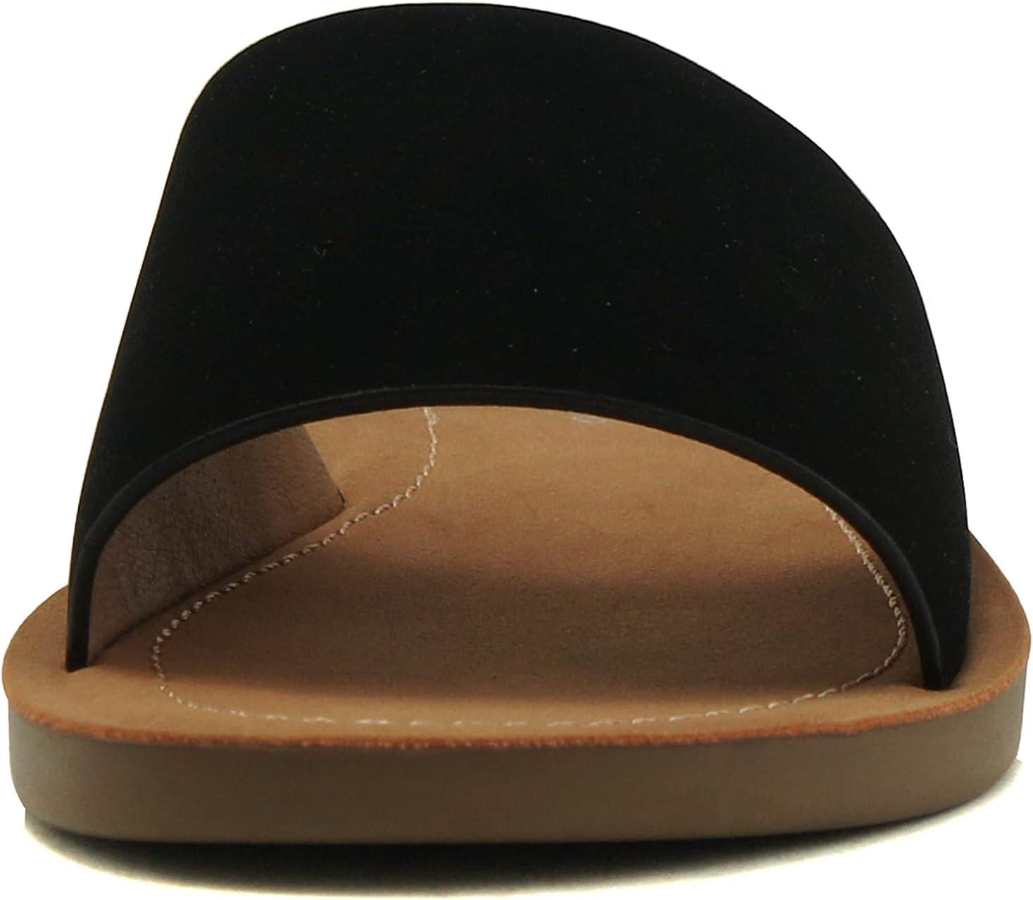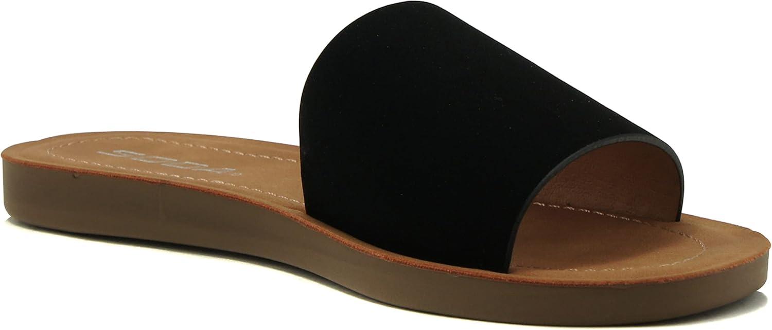 Soda Shoes Efron-S Women Flip Flops Basic Plain Slippers Slip On Sandals Slides Casual Peep Toe Beach(Black-efron)