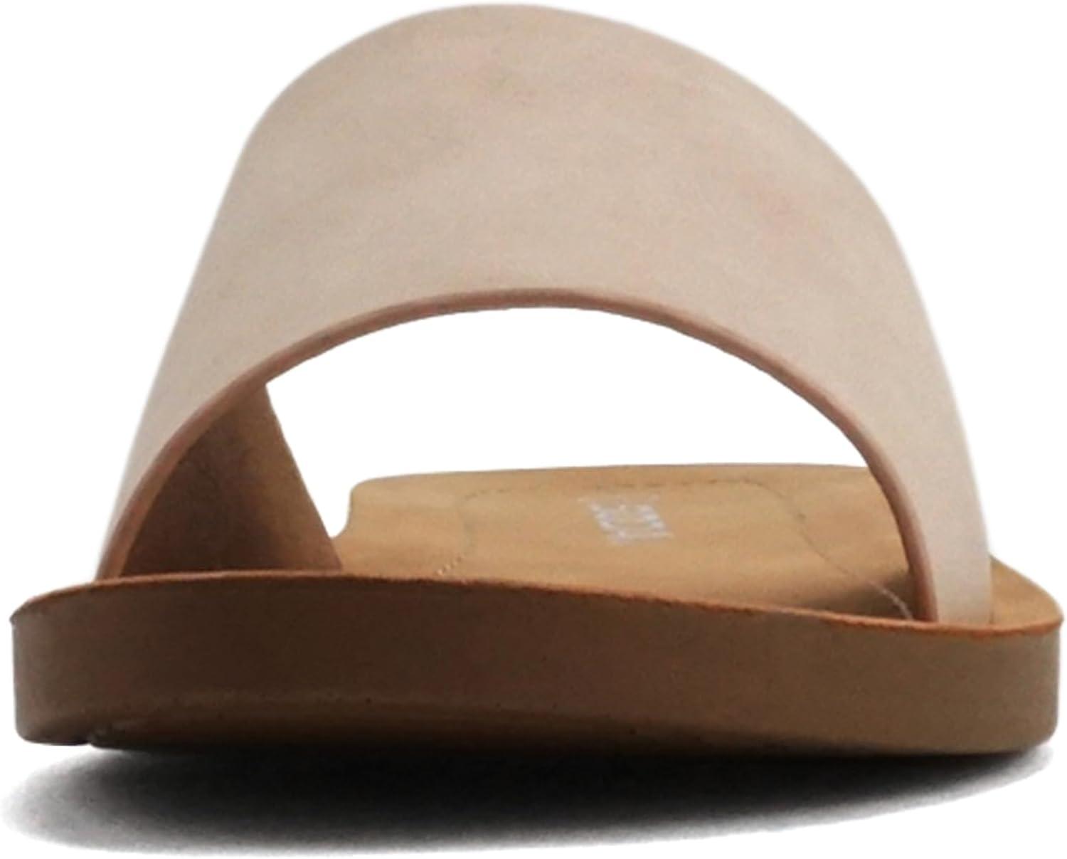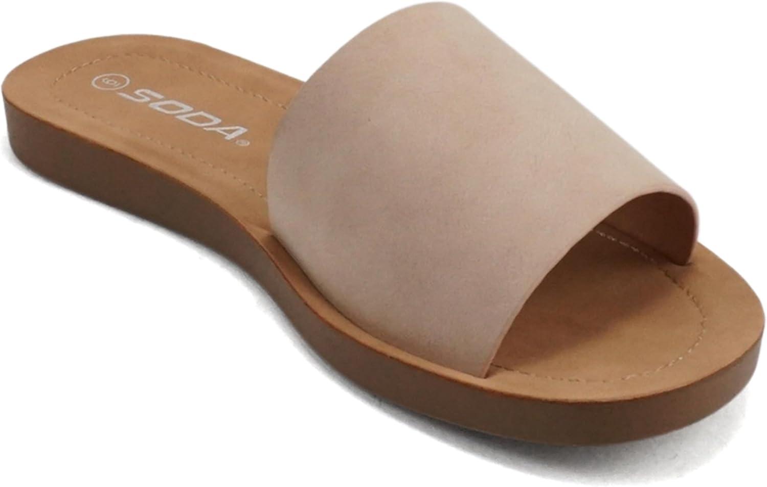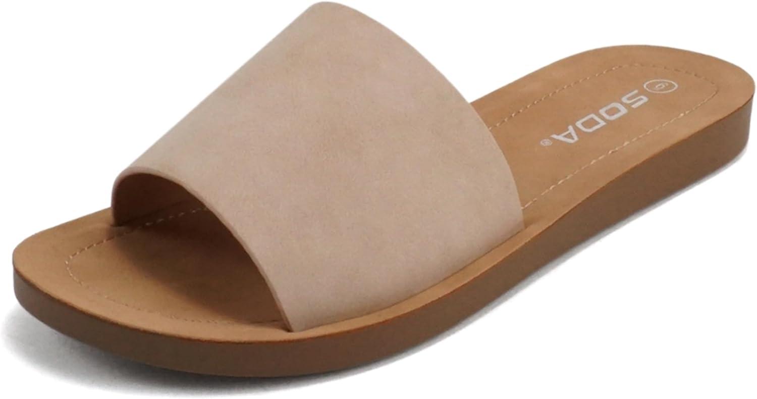 Soda Shoes Efron-S Women Flip Flops Basic Plain Slippers Slip On Sandals Slides Casual Peep Toe Beach(Blush Nbpu)