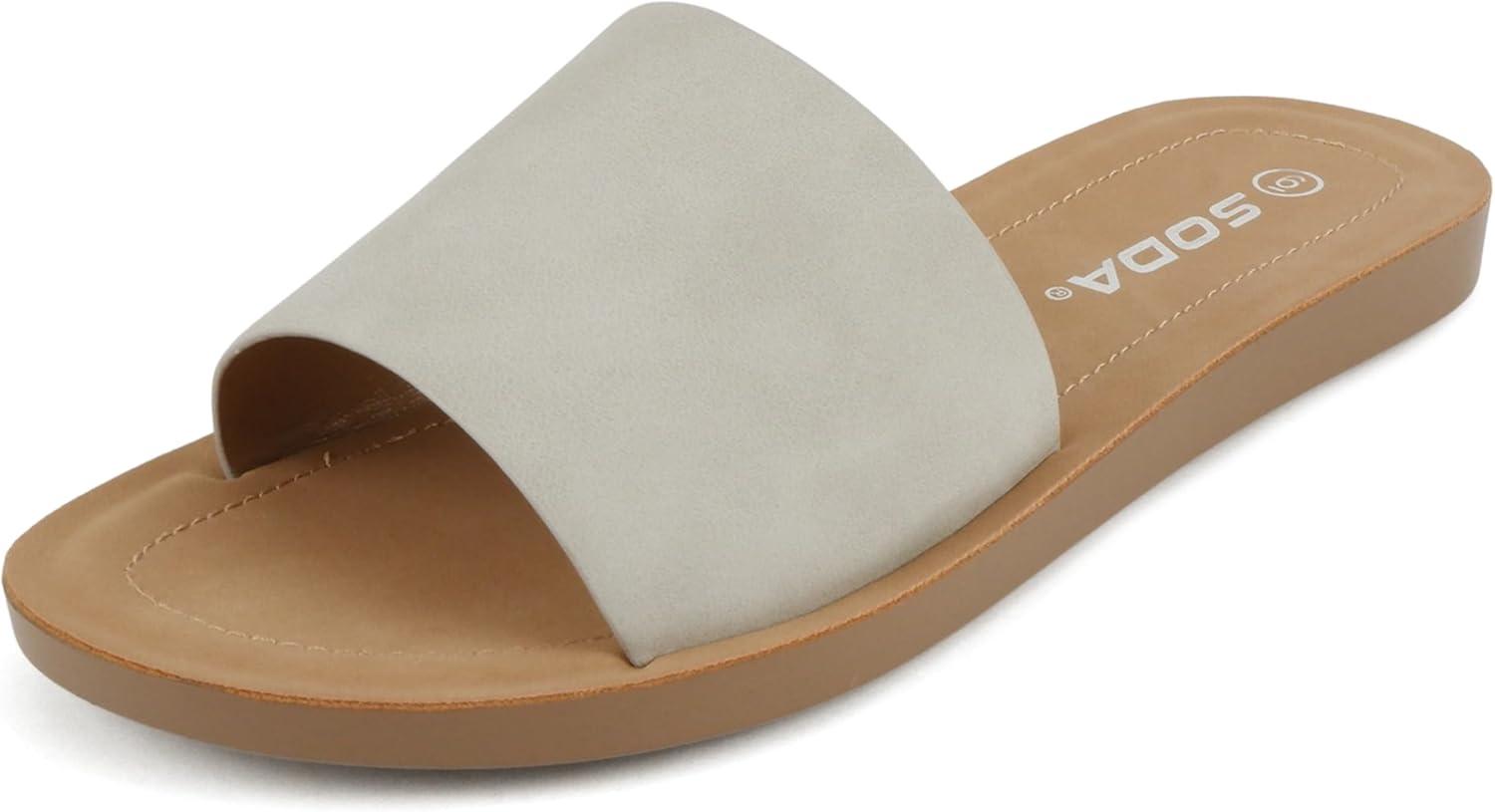 Soda Shoes Efron-S Women Flip Flops Basic Plain Slippers Slip On Sandals Slides Casual Peep Toe Beach(Dove Grey Nbpu)