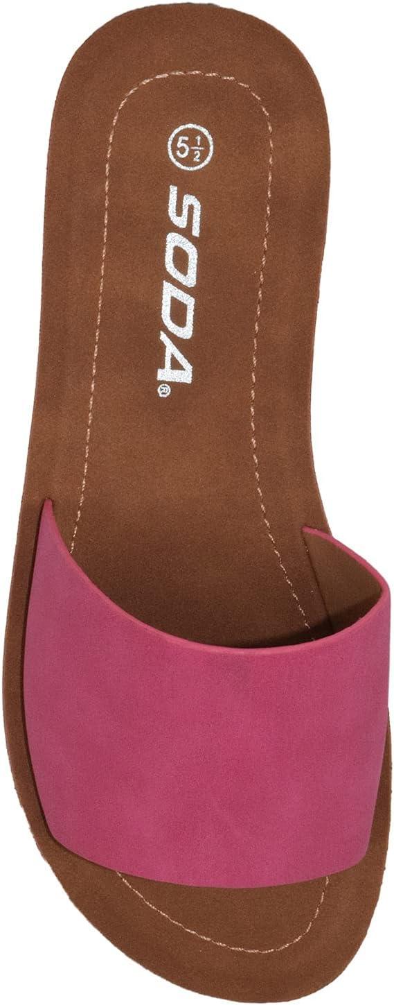 Soda Shoes Efron-S Women Flip Flops Basic Plain Slippers Slip On Sandals Slides Casual Peep Toe Beach(Fuchsia)