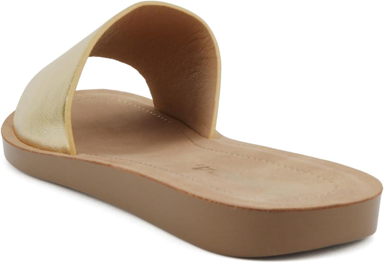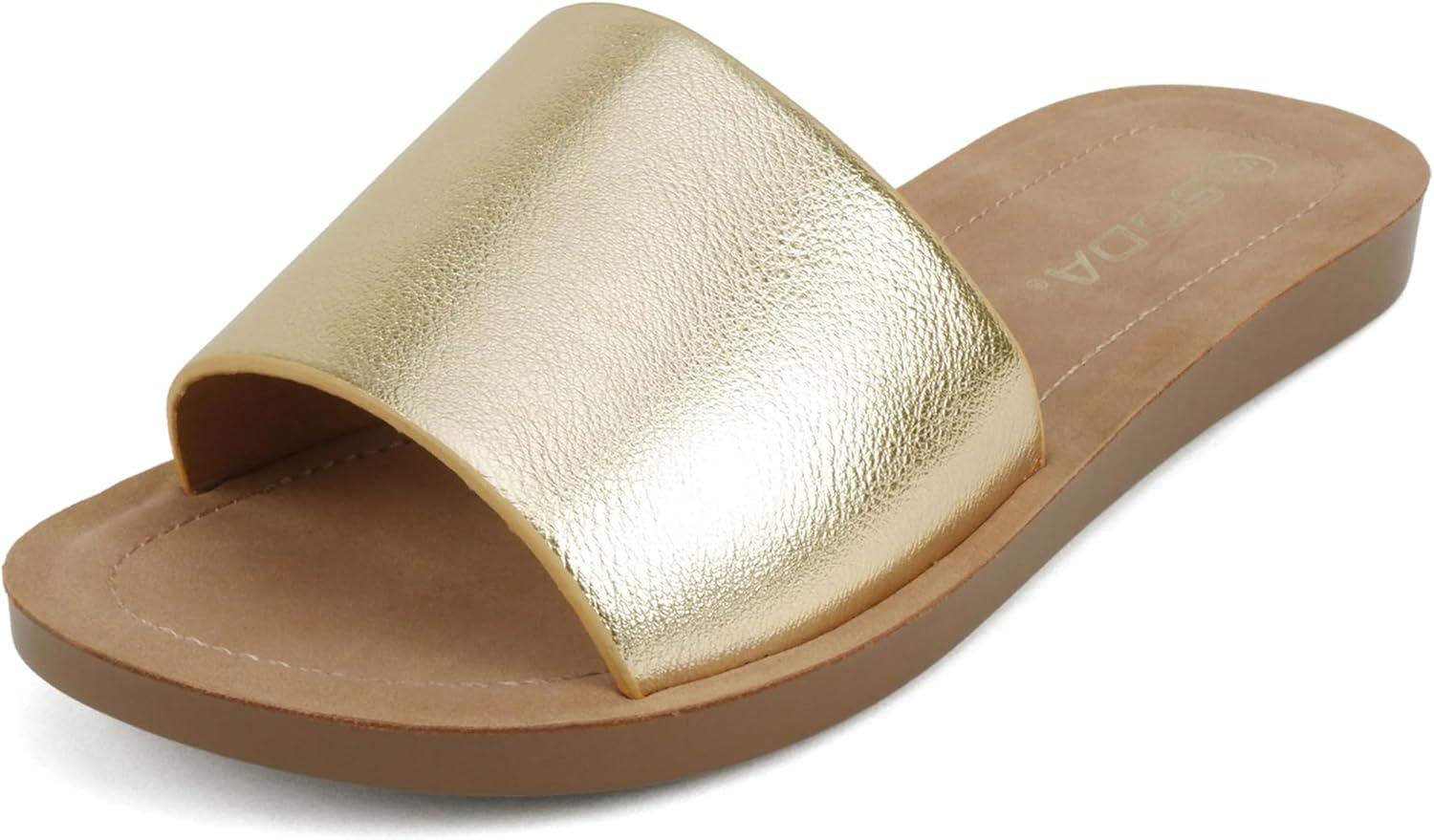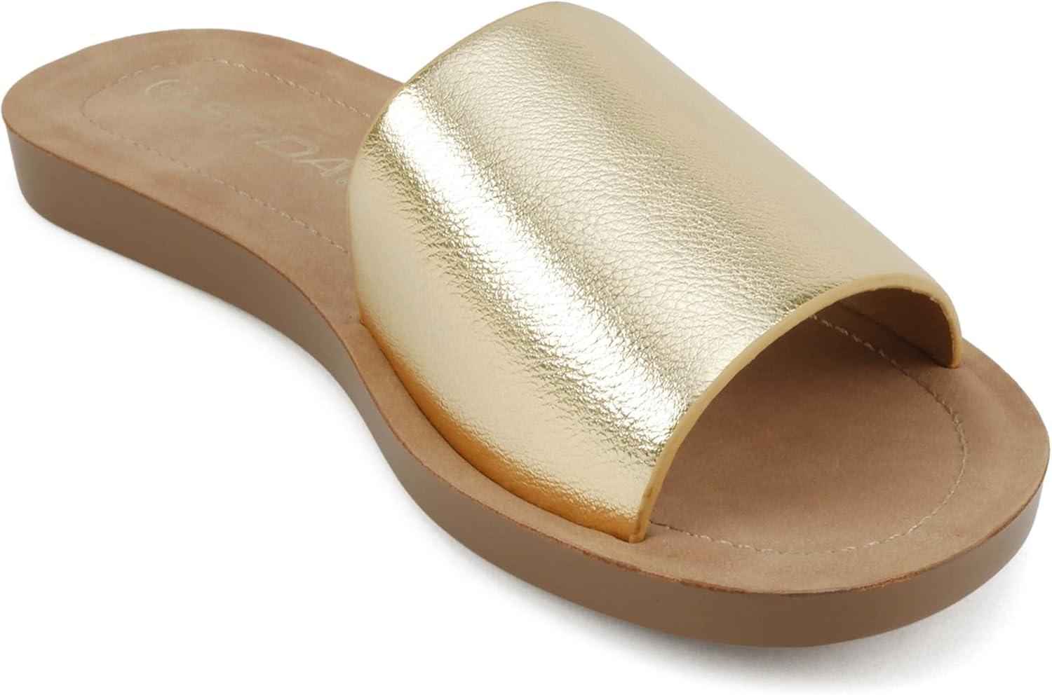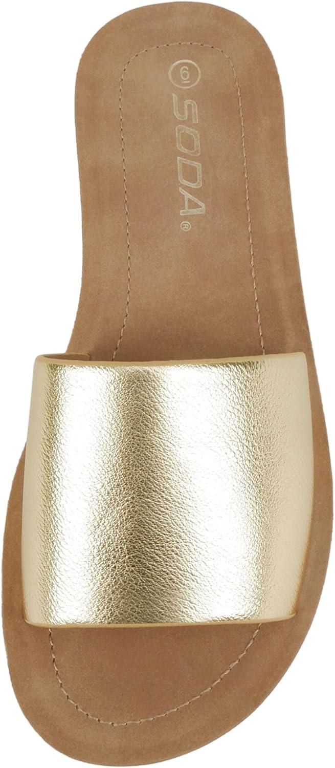 Soda Shoes Efron-S Women Flip Flops Basic Plain Slippers Slip On Sandals Slides Casual Peep Toe Beach(Gold)