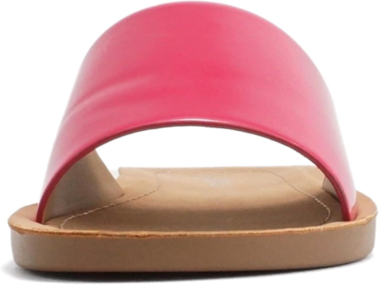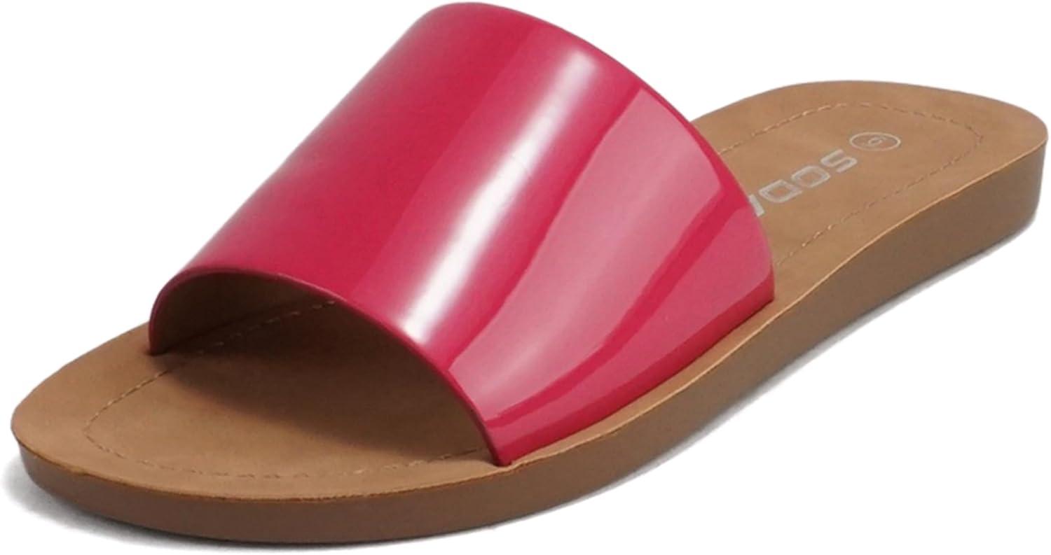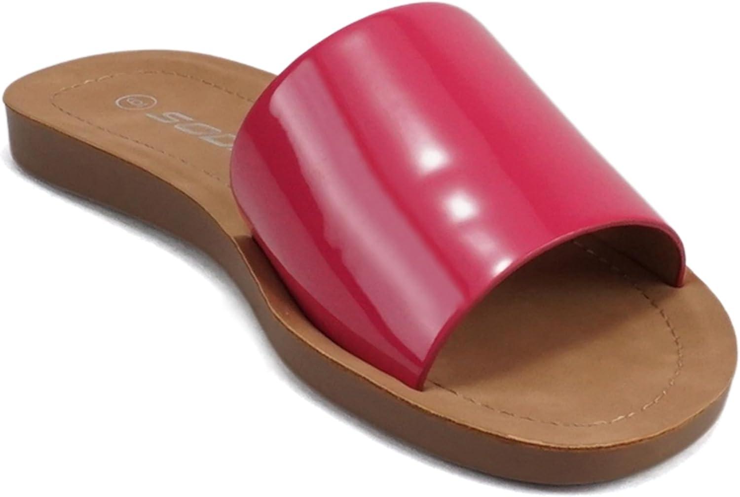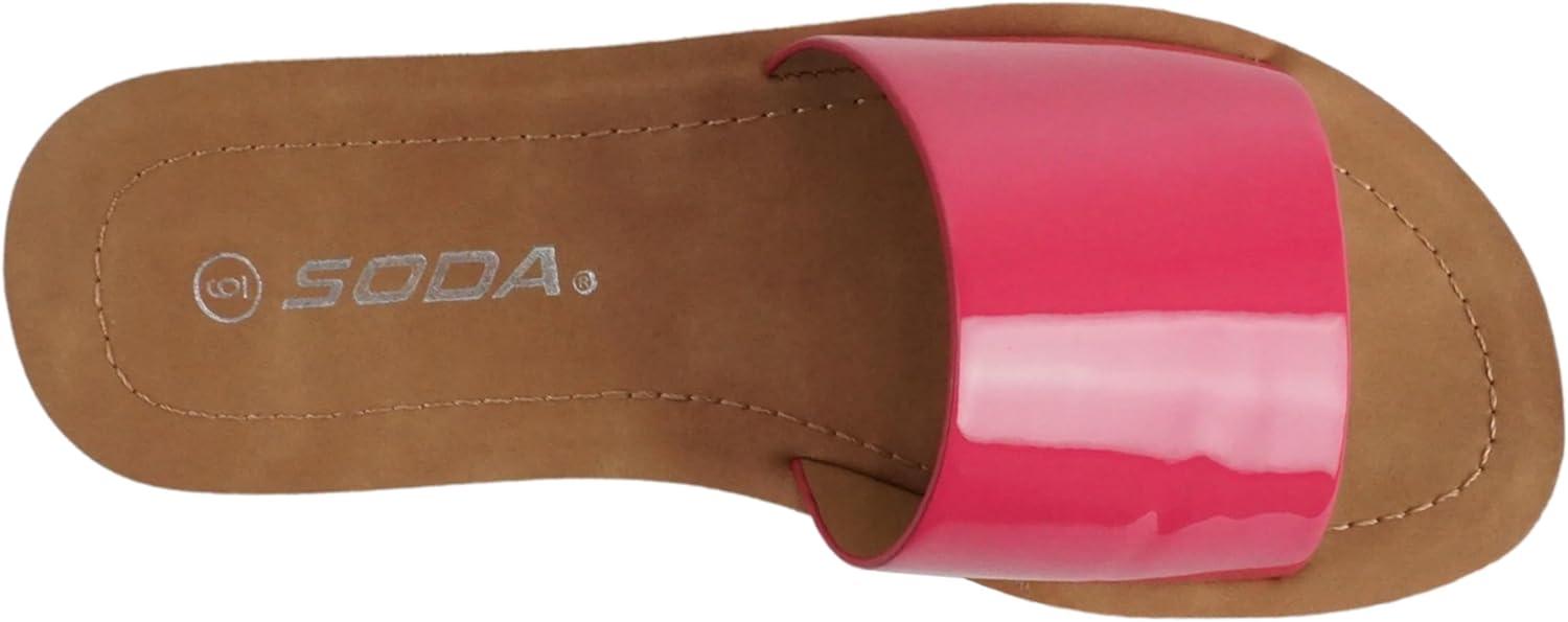 Soda Shoes Efron-S Women Flip Flops Basic Plain Slippers Slip On Sandals Slides Casual Peep Toe Beach(Hot Pink Patent)