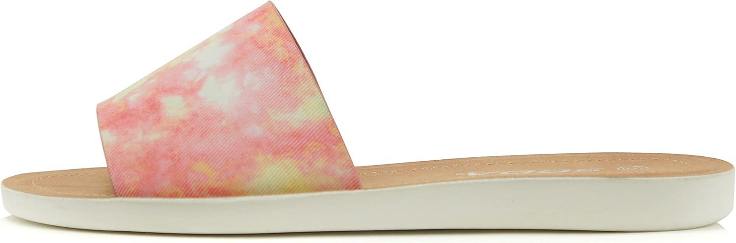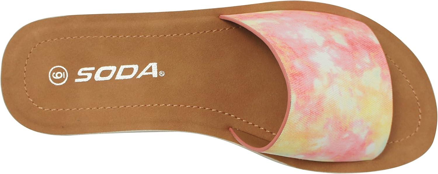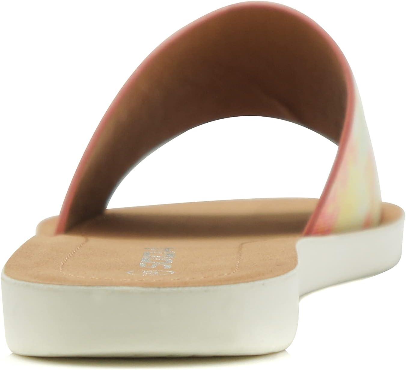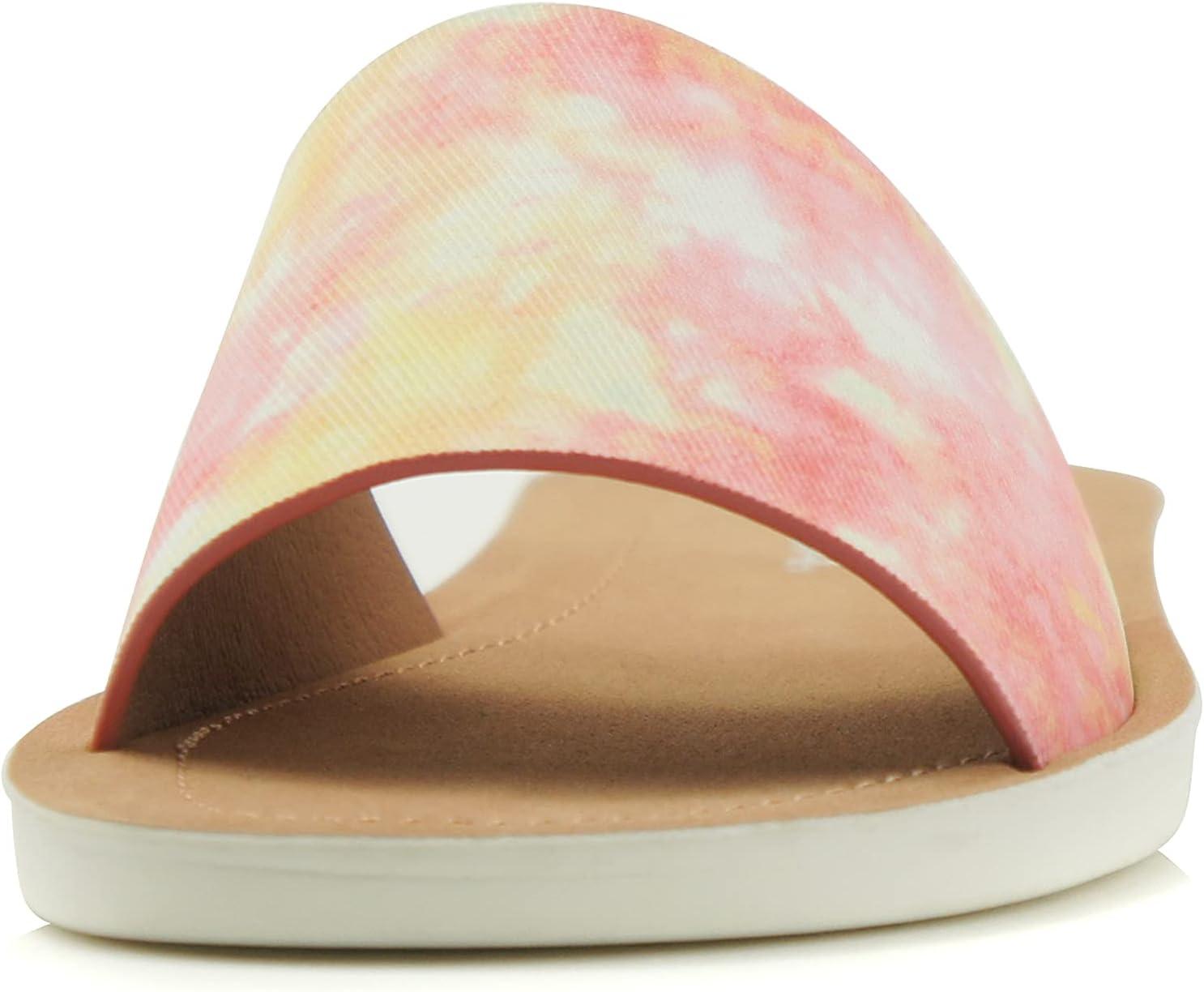 Soda Shoes Efron-S Women Flip Flops Basic Plain Slippers Slip On Sandals Slides Casual Peep Toe Beach(Pink/Yellow Tie Dye)