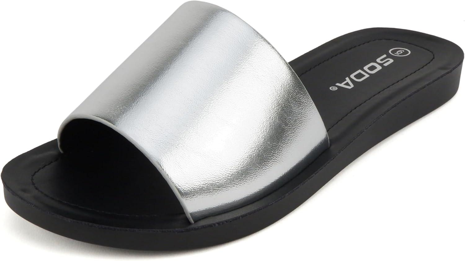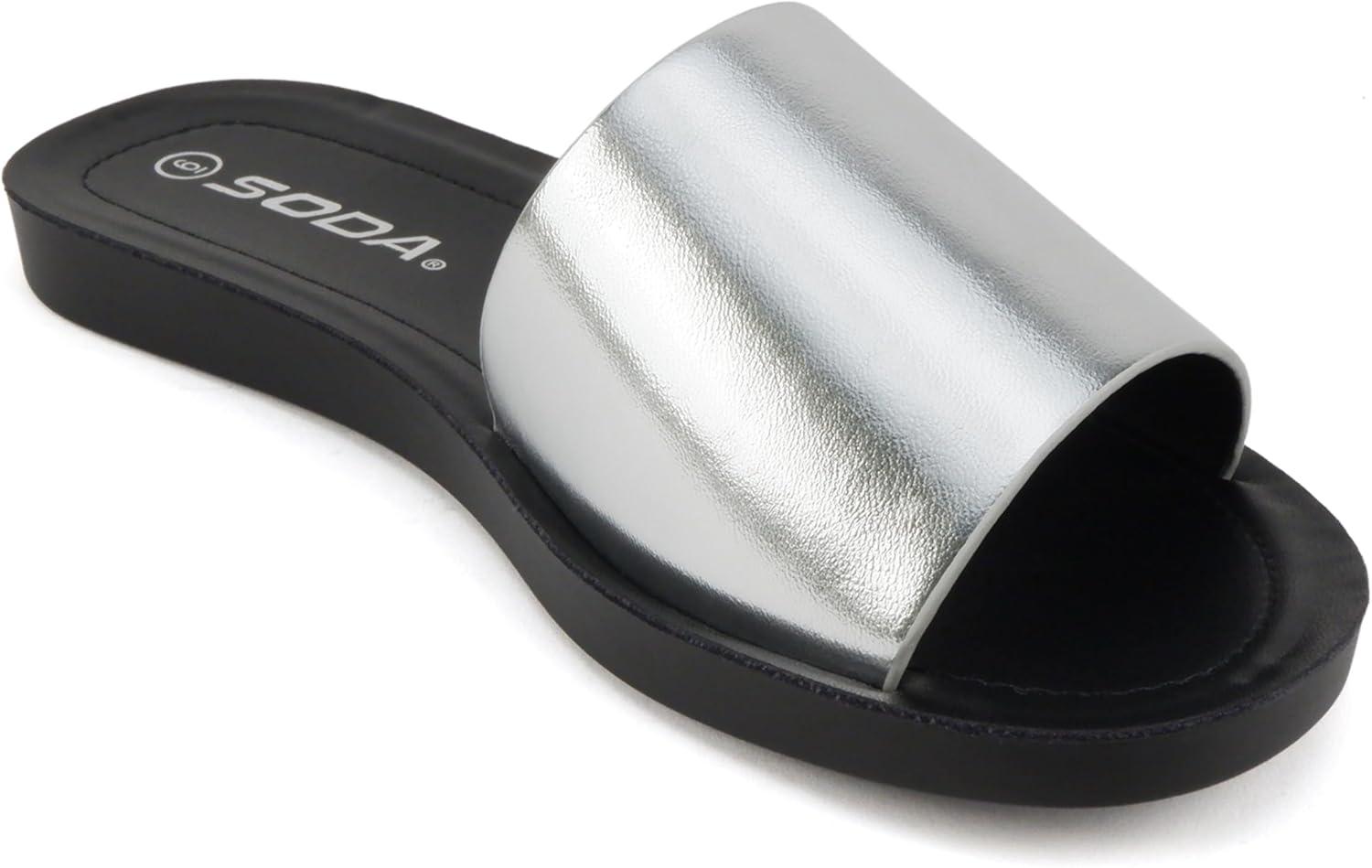 Score big savings on Soda Shoes Efron-S Women Flip Flops Basic Plain Slippers Slip On Sandals Slides Casual Peep Toe Beach(Silver Metallic/Black) during our back-to-school sale. Limited quantities available.