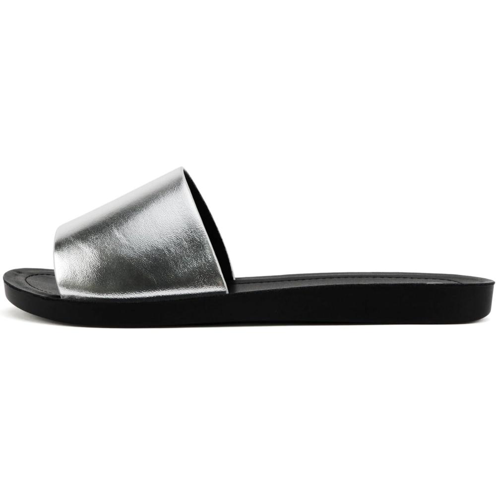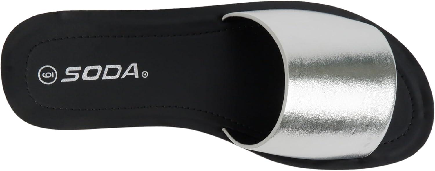Soda Shoes Efron-S Women Flip Flops Basic Plain Slippers Slip On Sandals Slides Casual Peep Toe Beach(Silver Metallic/Black)