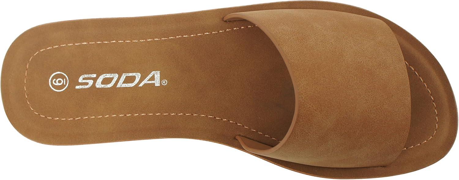Soda Shoes Efron-S Women Flip Flops Basic Plain Slippers Slip On Sandals Slides Casual Peep Toe Beach(Tan-efron)