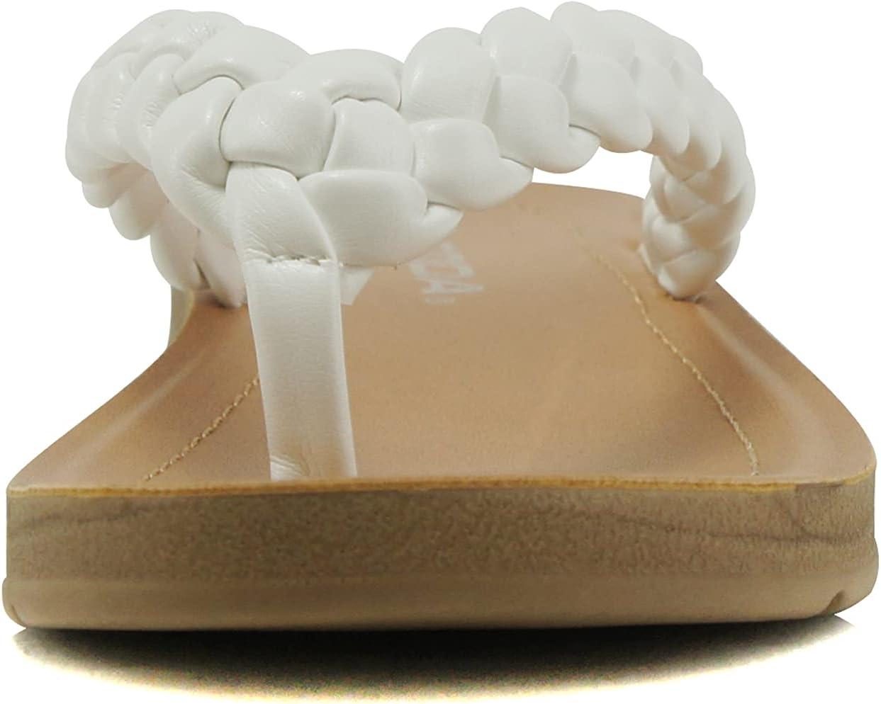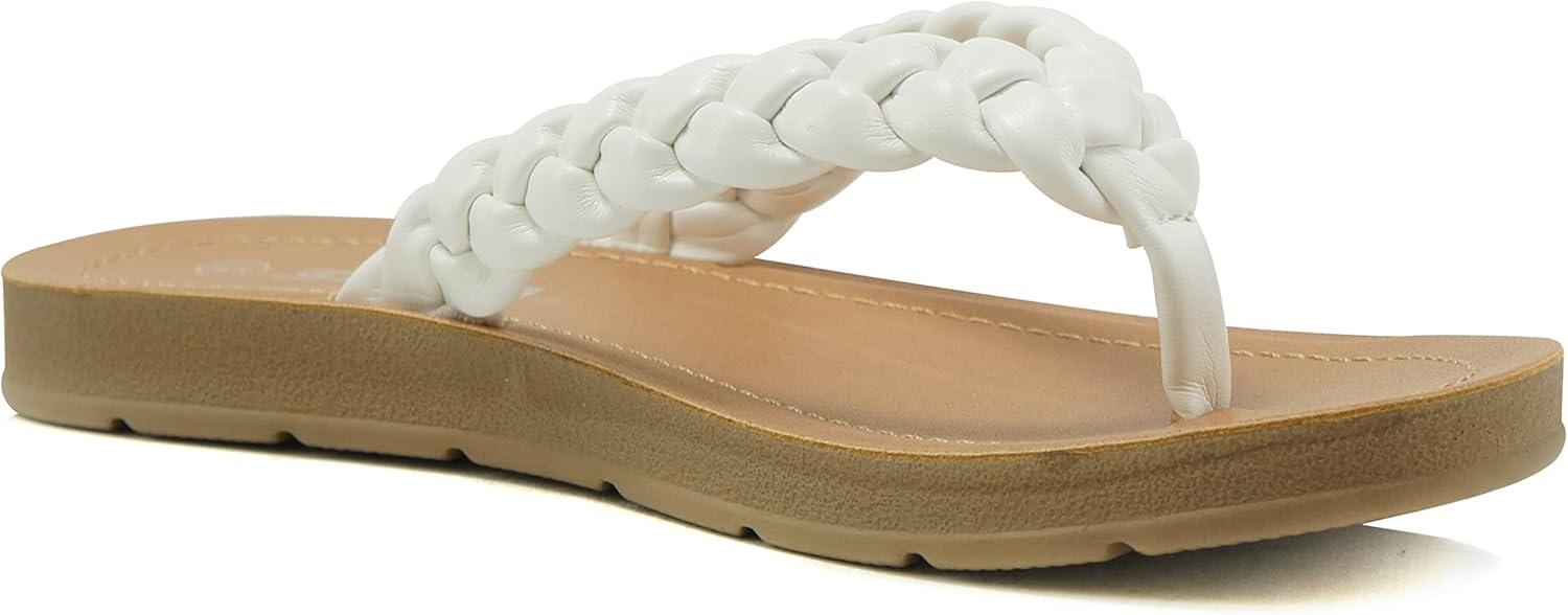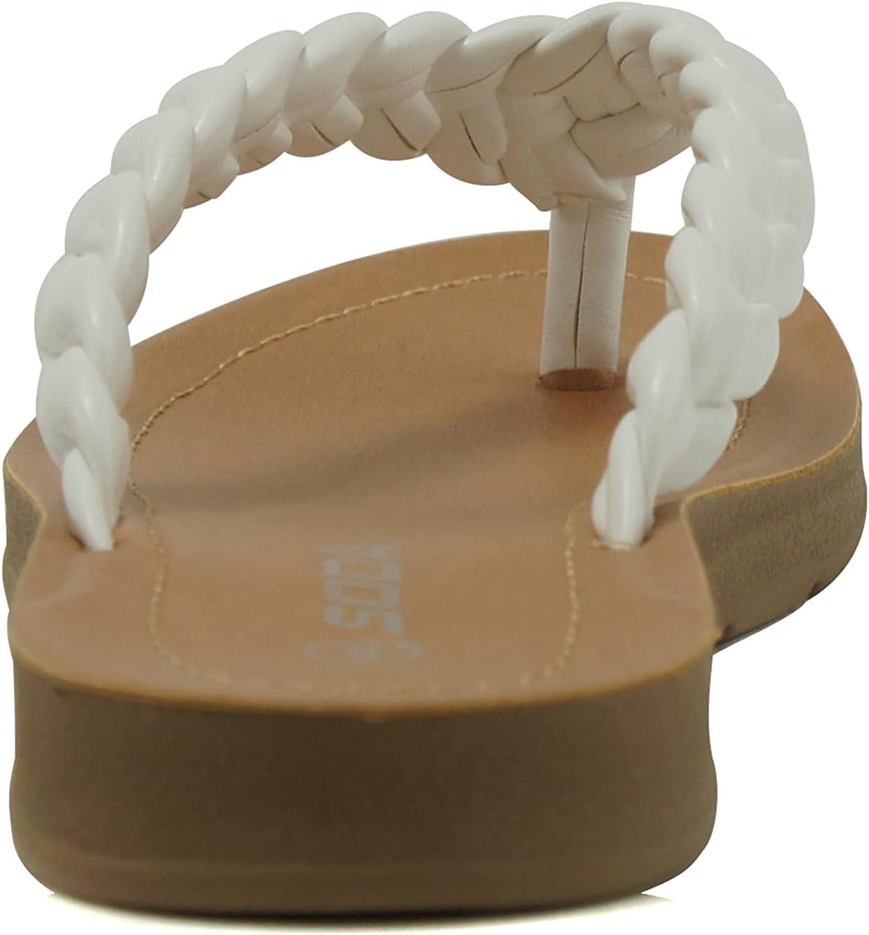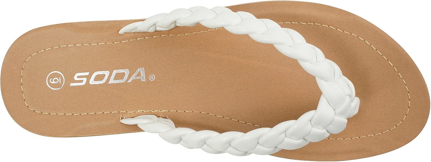Soda STILL ~ Women Casual Comfort Braided Flip Flops Flat Fashion Thong Sandal(White)