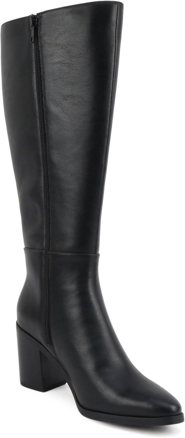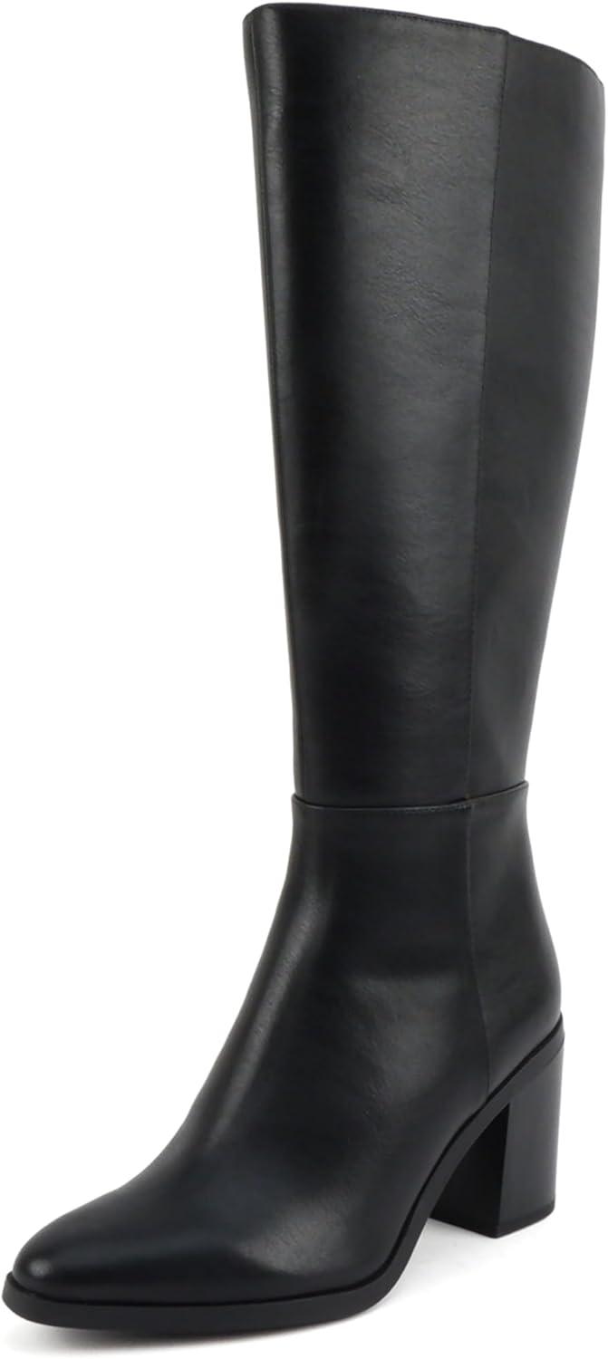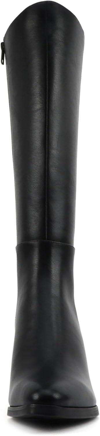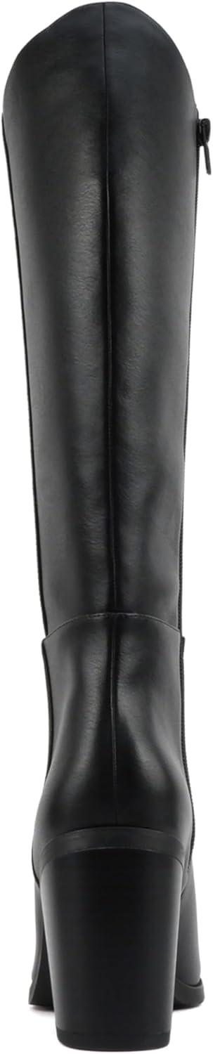 Soda “Study” ~ Women Pointed Toe Low Heel Knee-High Boot with Side Zipper(Black Pu)