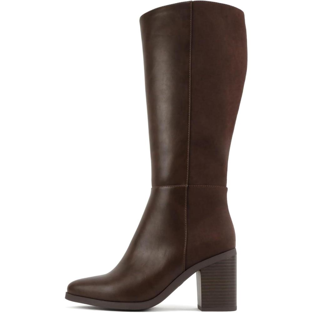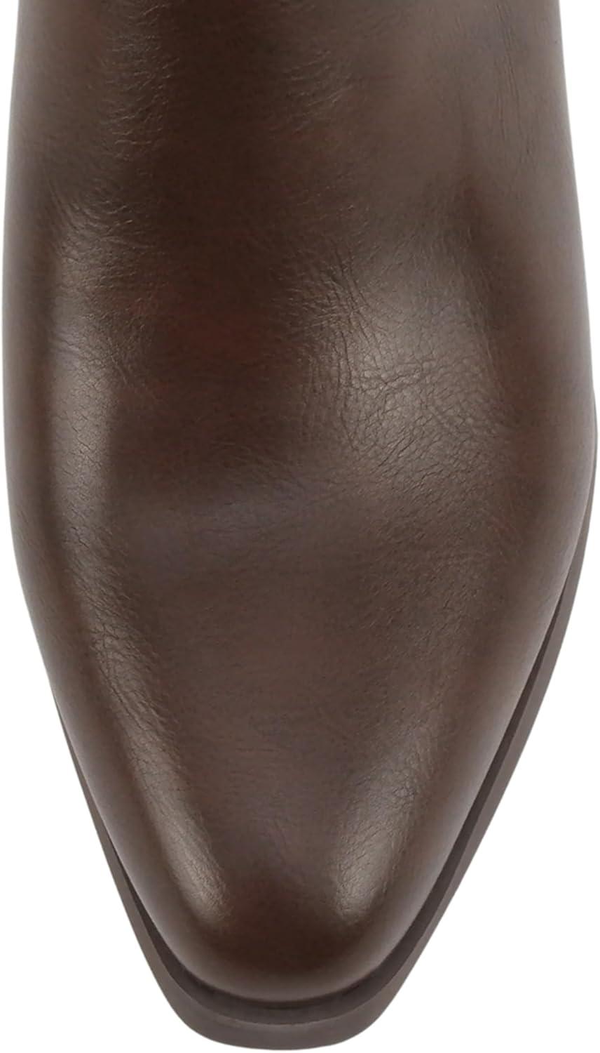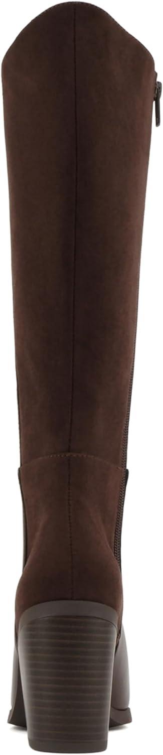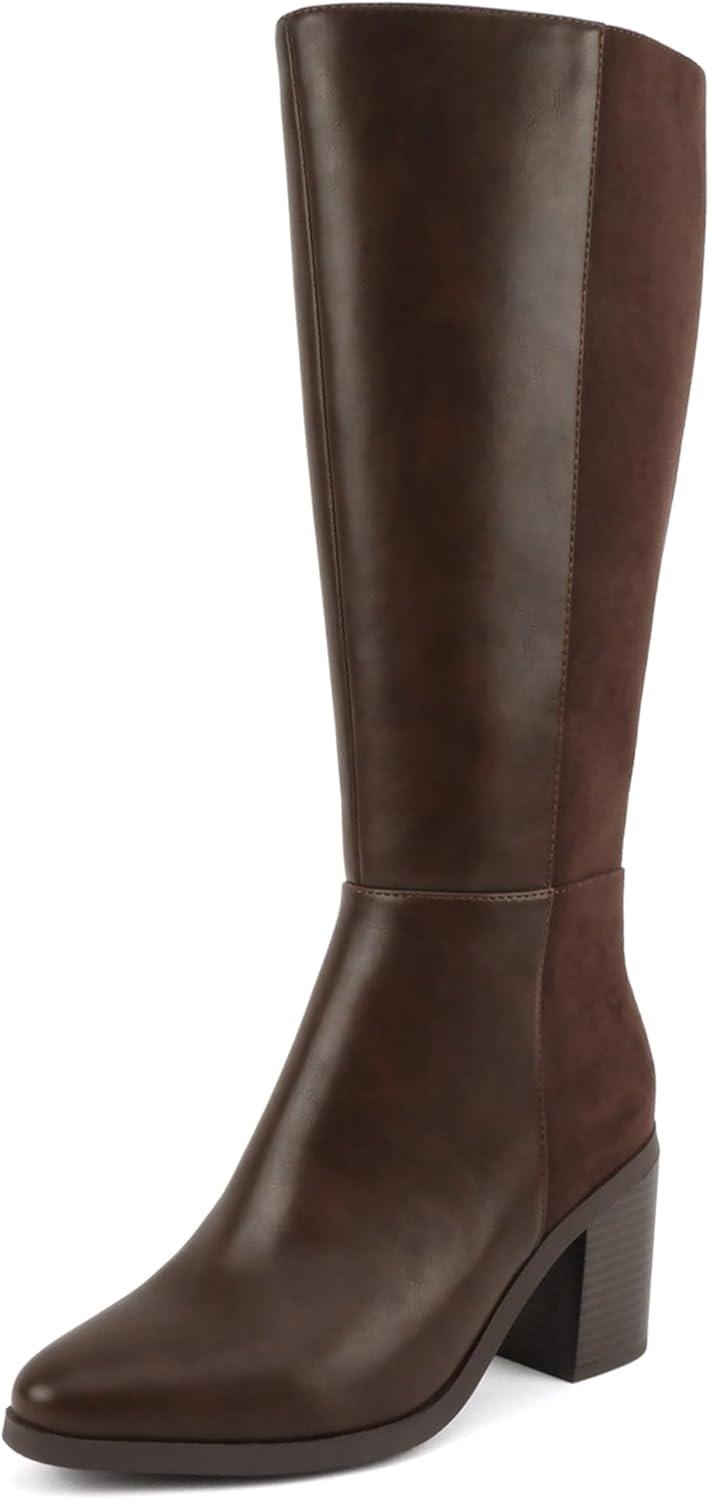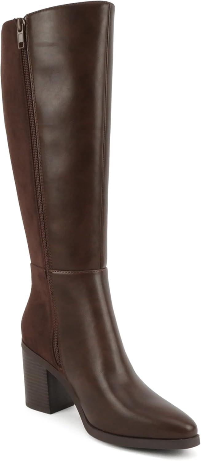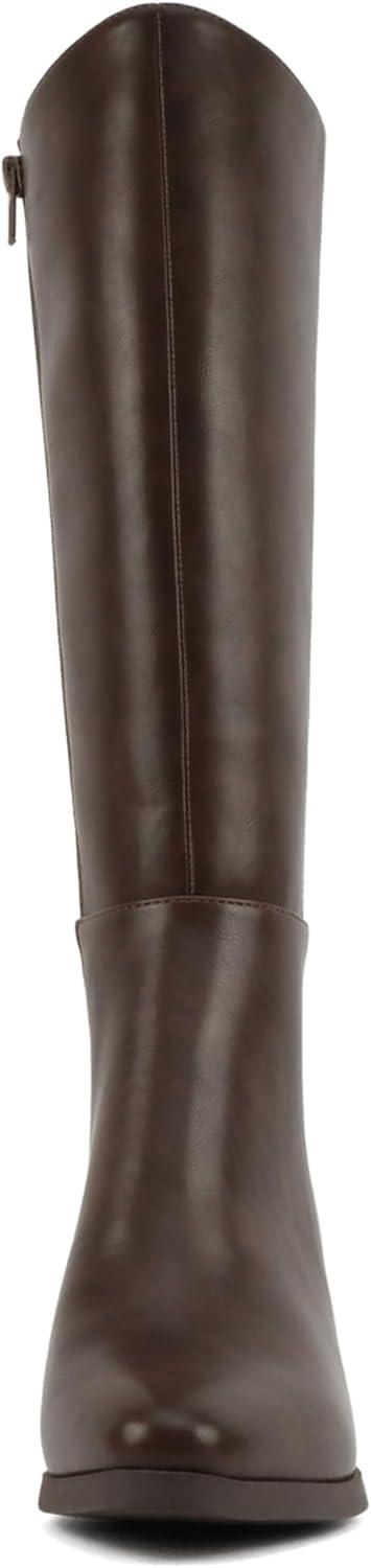 Soda “Study” ~ Women Pointed Toe Low Heel Knee-High Boot with Side Zipper(Brown Pu)