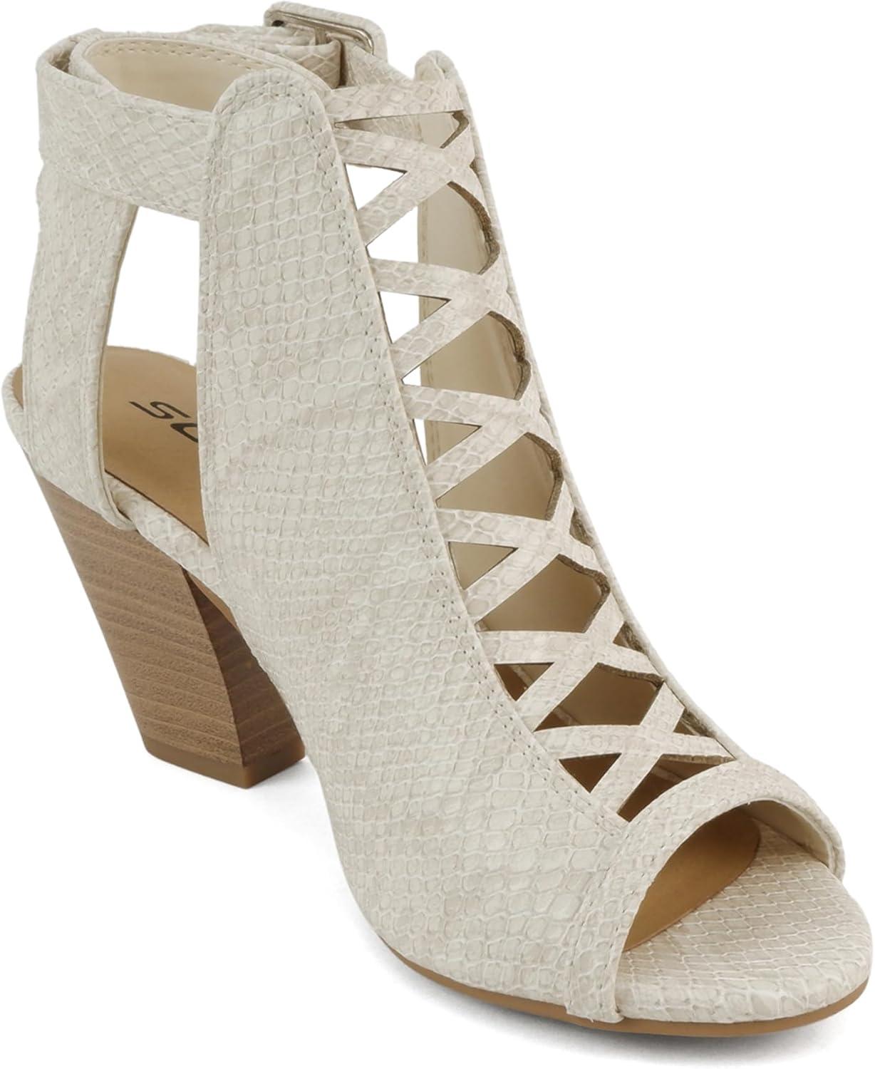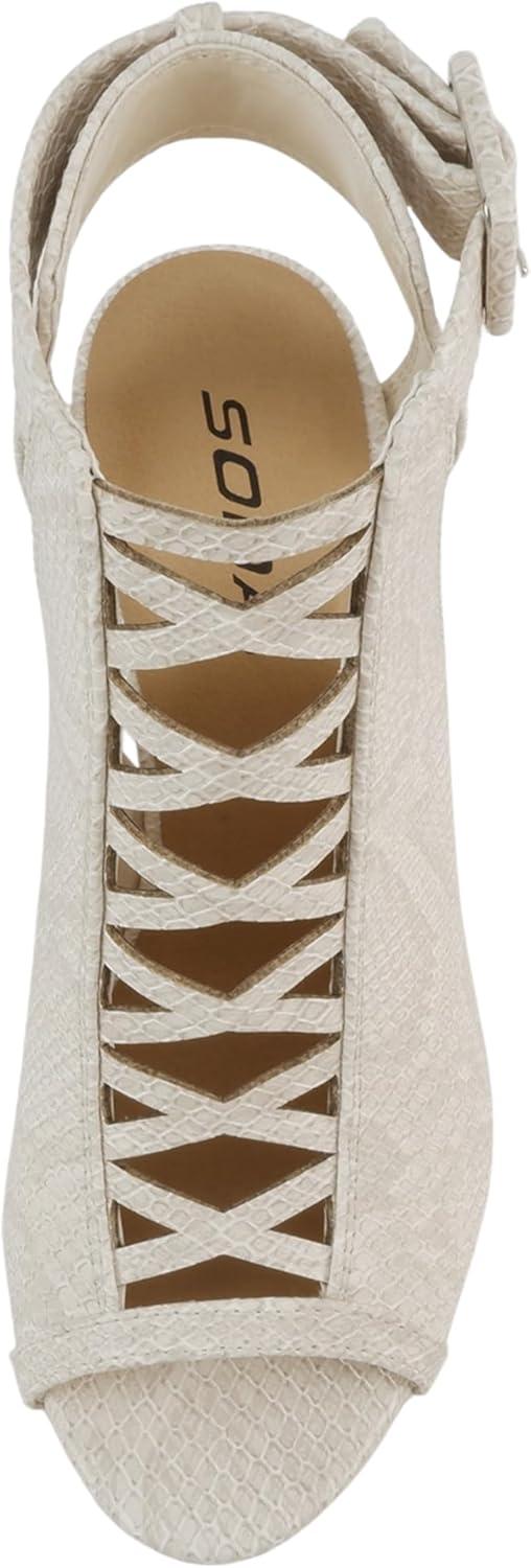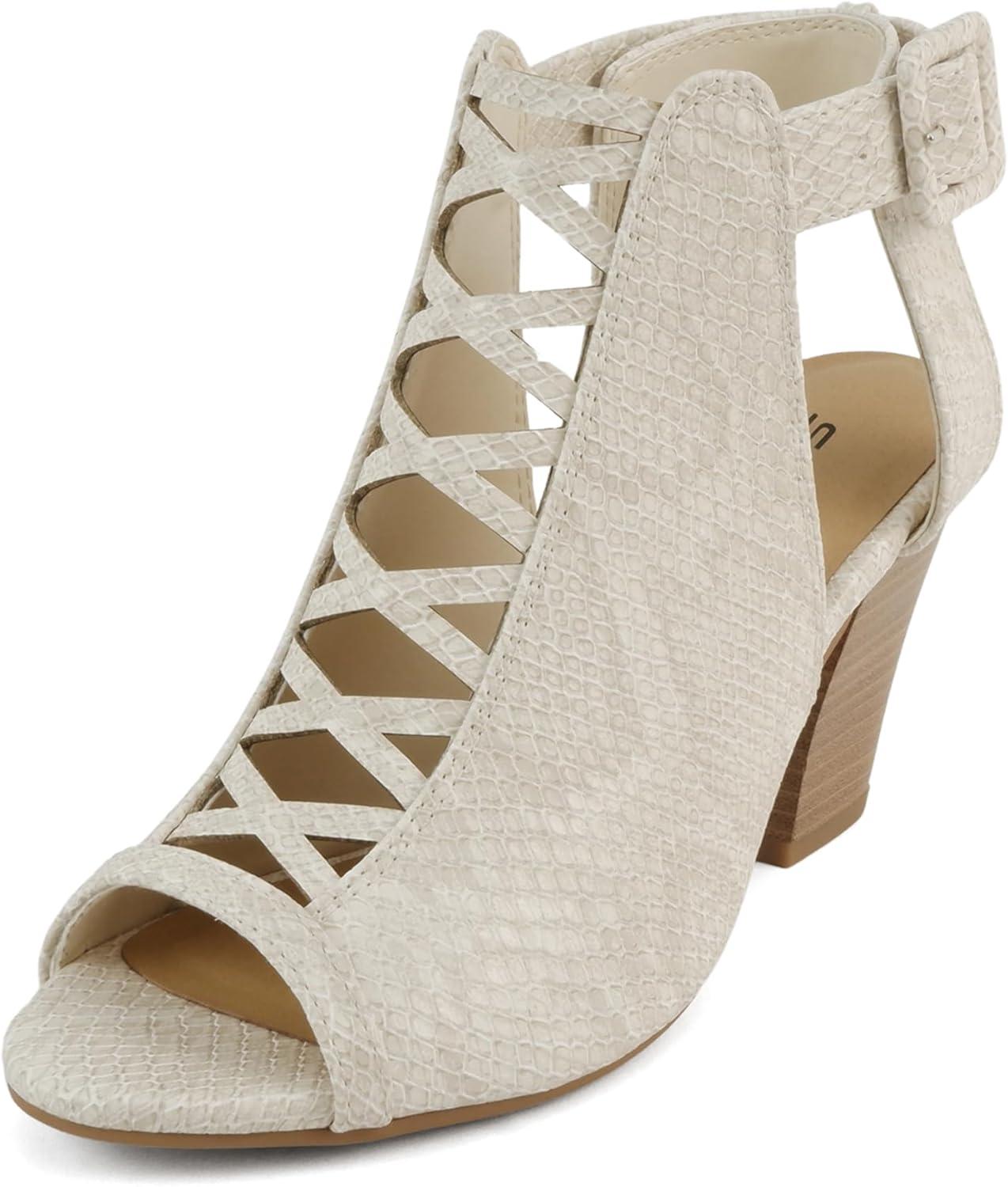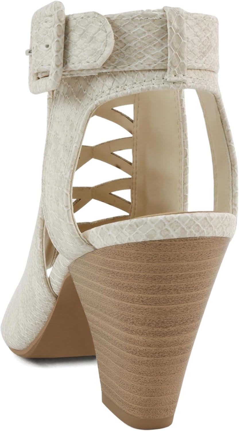 Soda Taking ~ Women Open Toe Low Heel Gladiator Sandal with Adjustable Ankle Strap(Ivory Snake Pu)