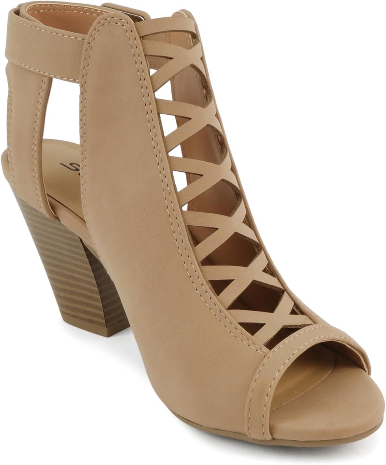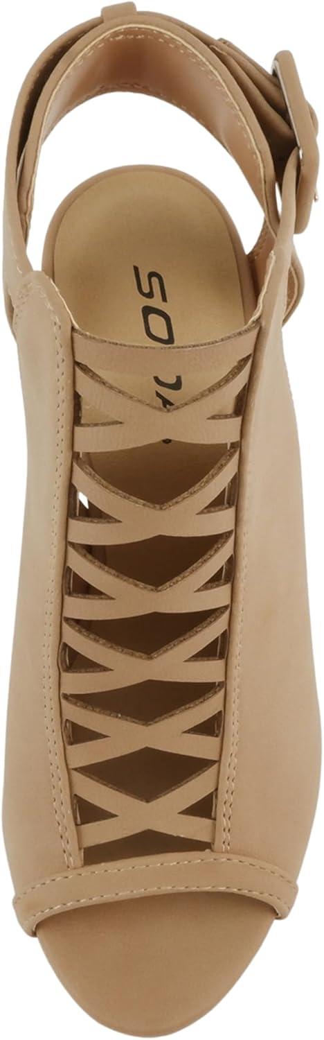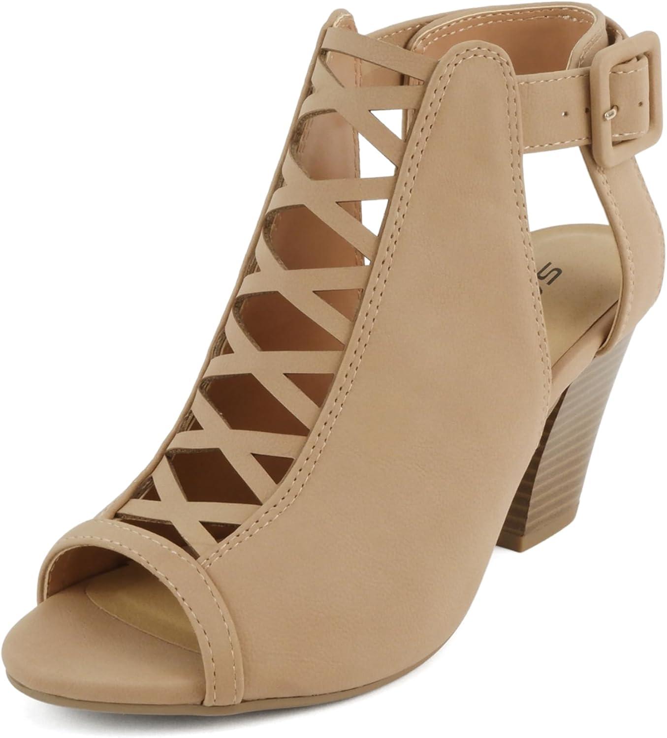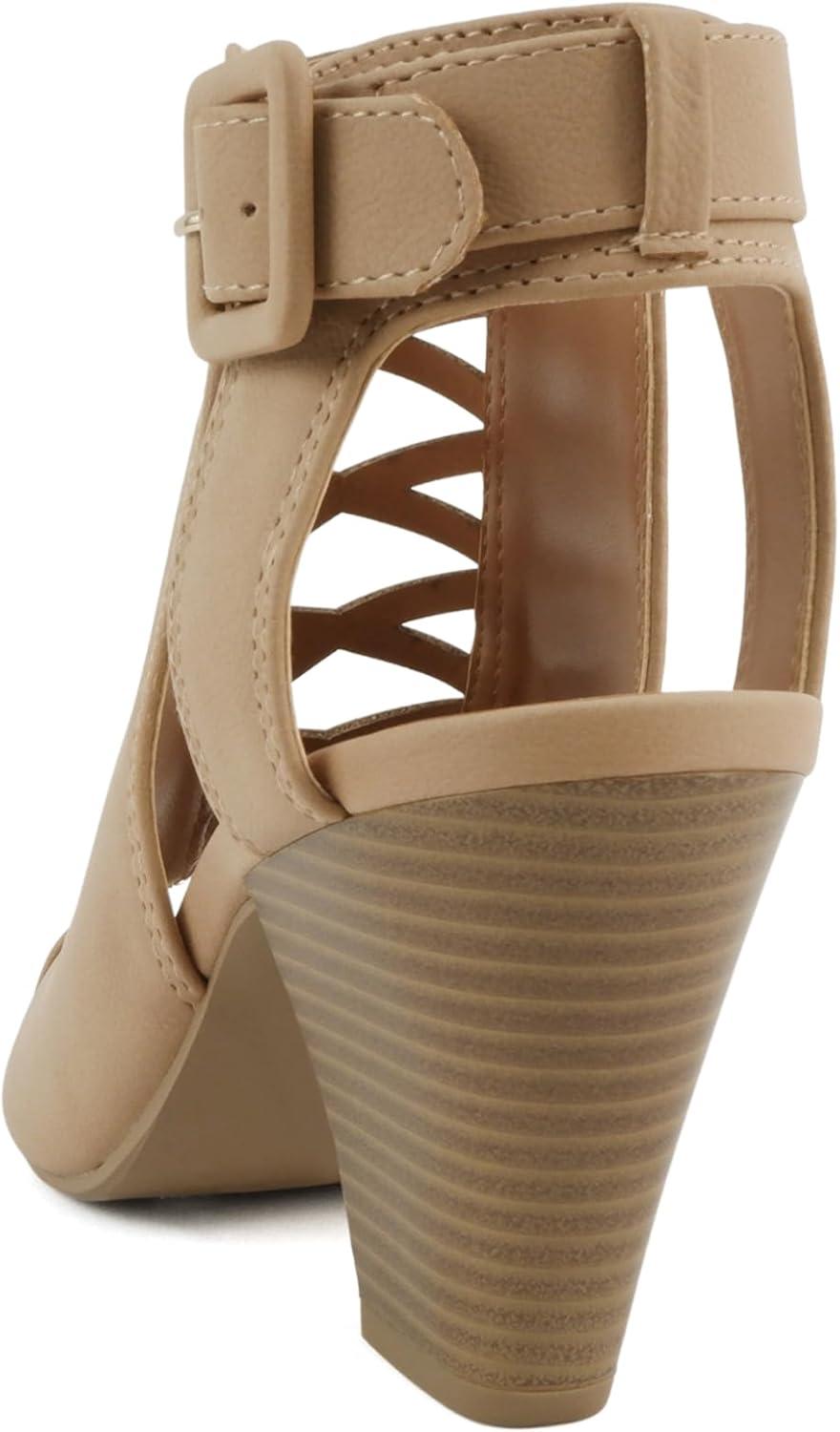 Soda Taking ~ Women Open Toe Low Heel Gladiator Sandal with Adjustable Ankle Strap(Sand Nubuck)