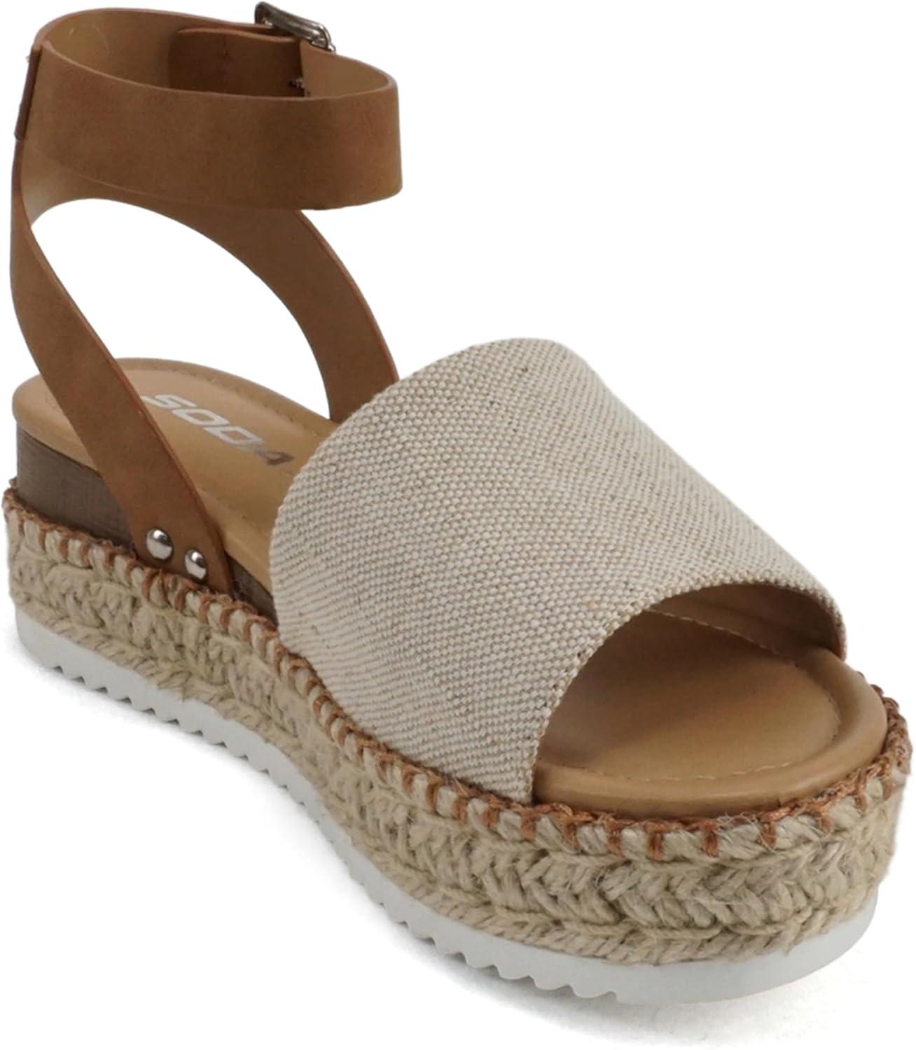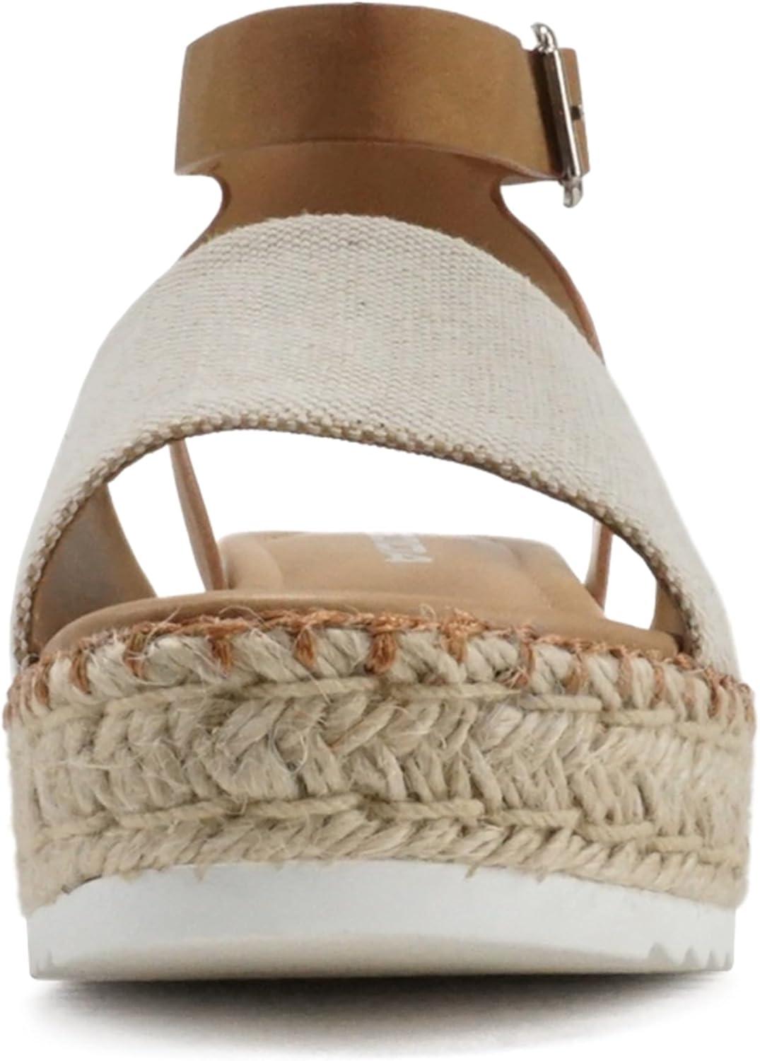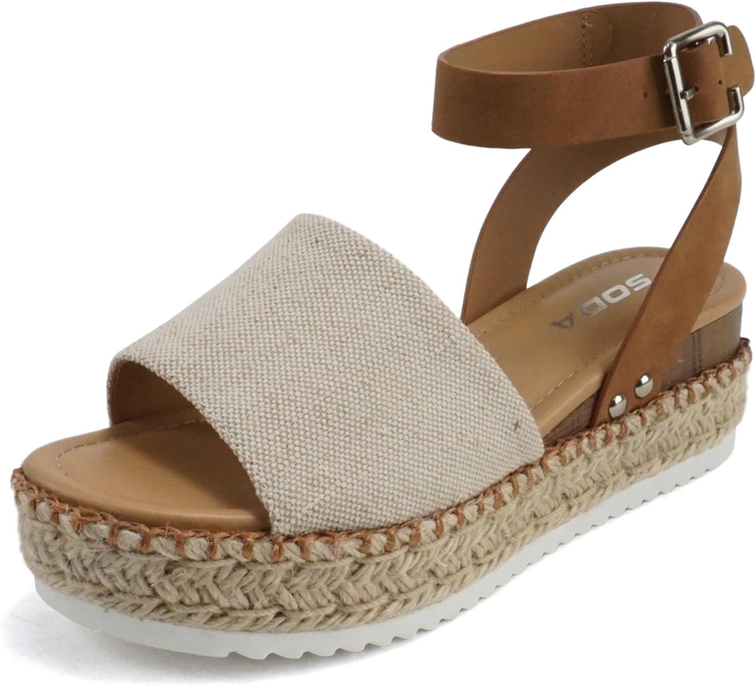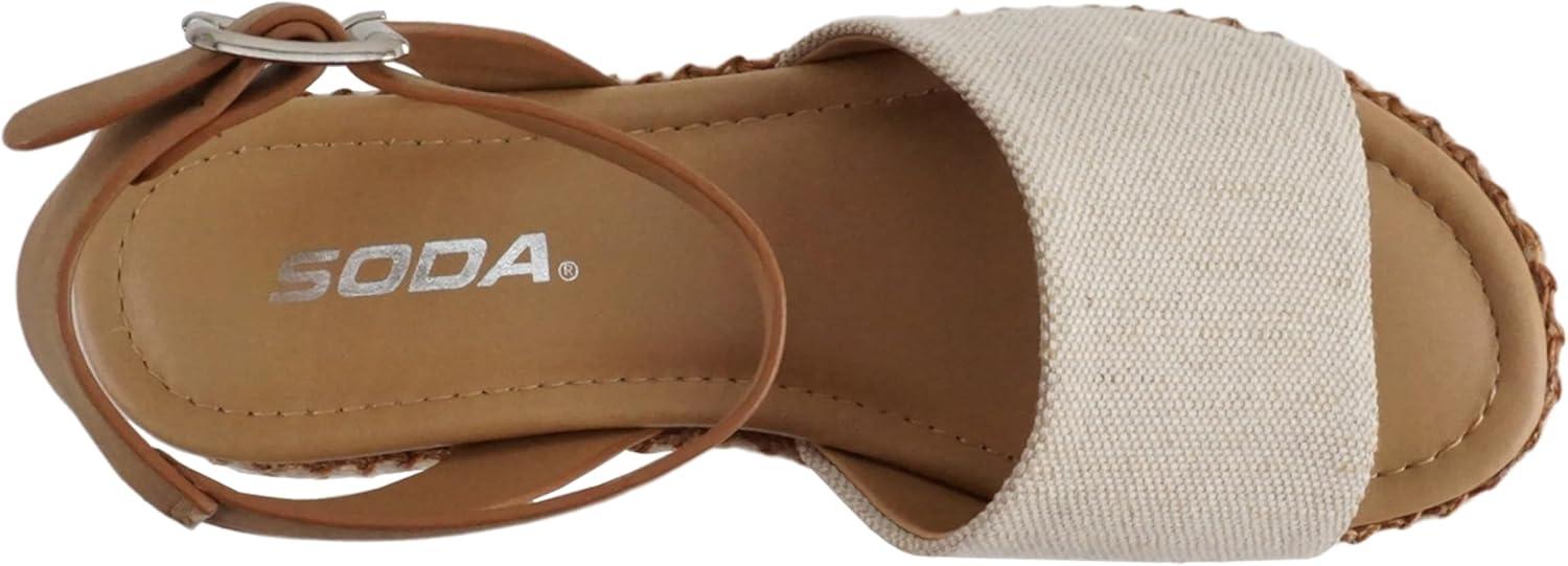 Soda Topic Open Toe Buckle Ankle Strap Espadrilles Flatform Wedge Casual Sandal(Bg/Tan (Whipped Stitch))