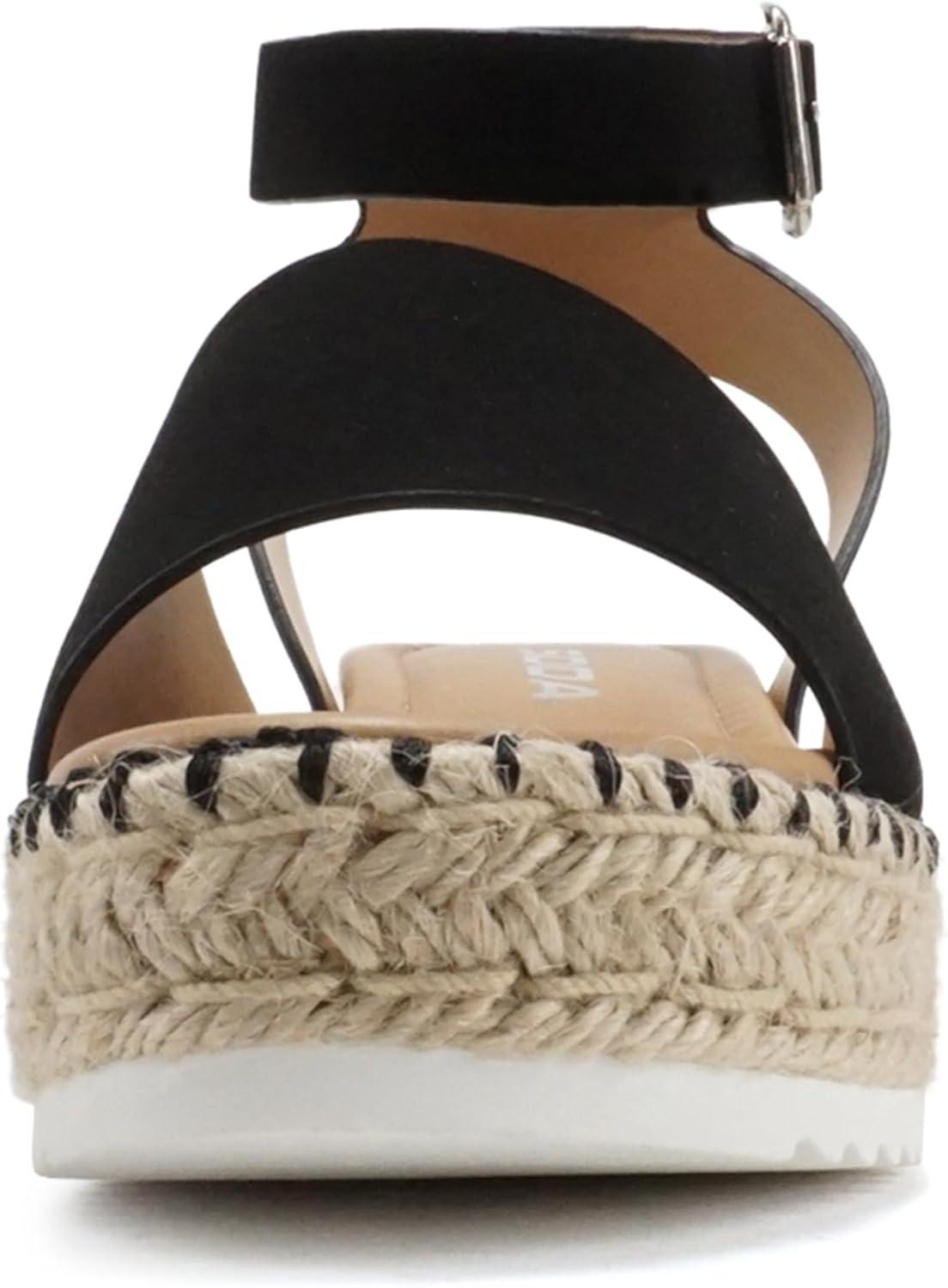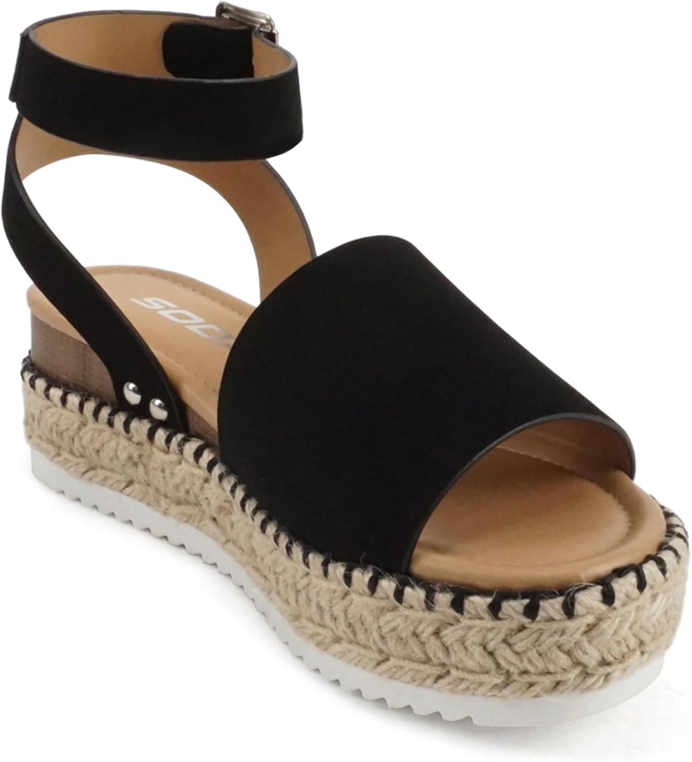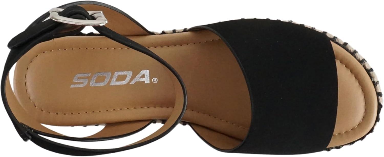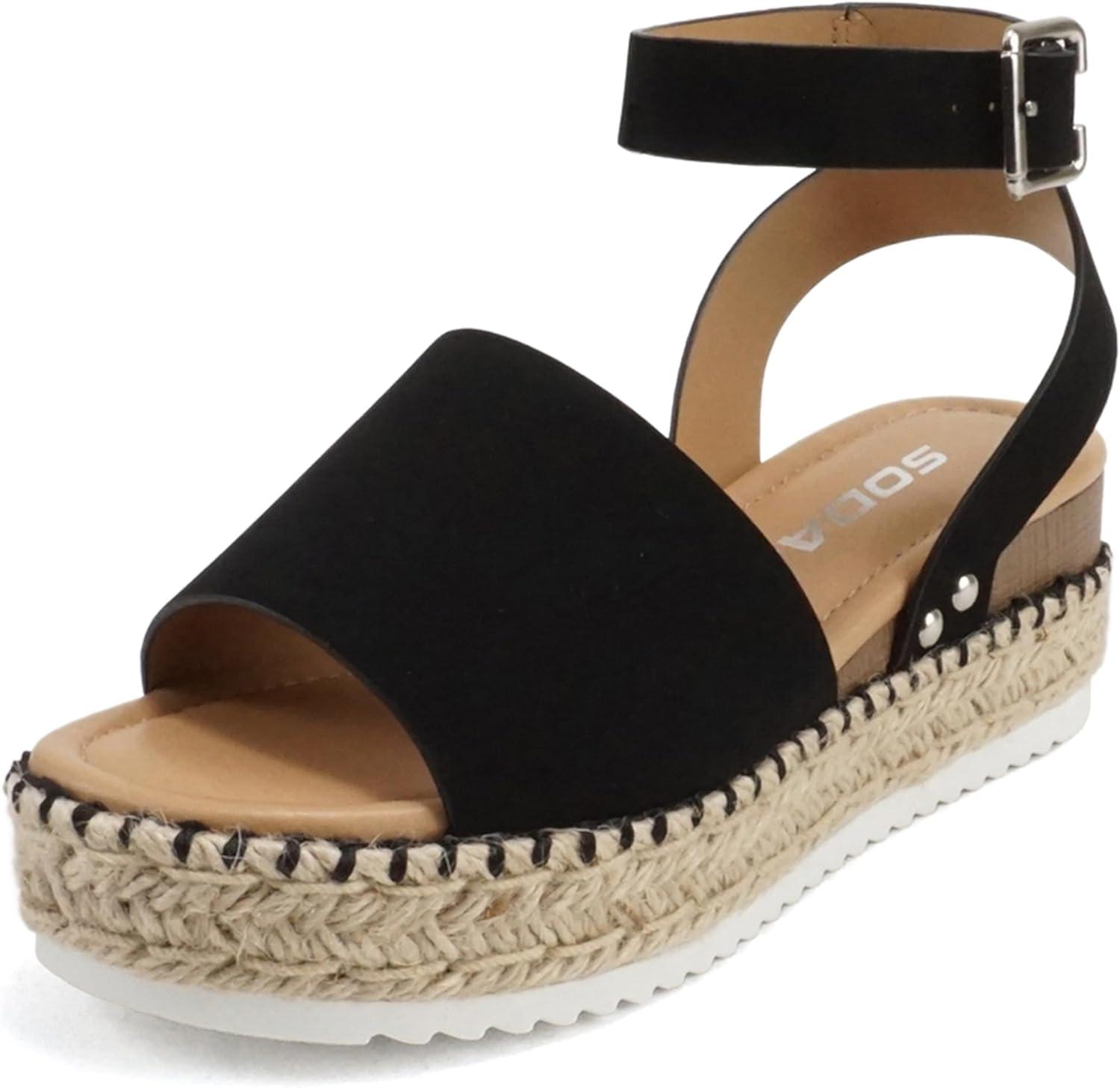 Soda Topic Open Toe Buckle Ankle Strap Espadrilles Flatform Wedge Casual Sandal(Blk Nbpu (Whipped Stitch))