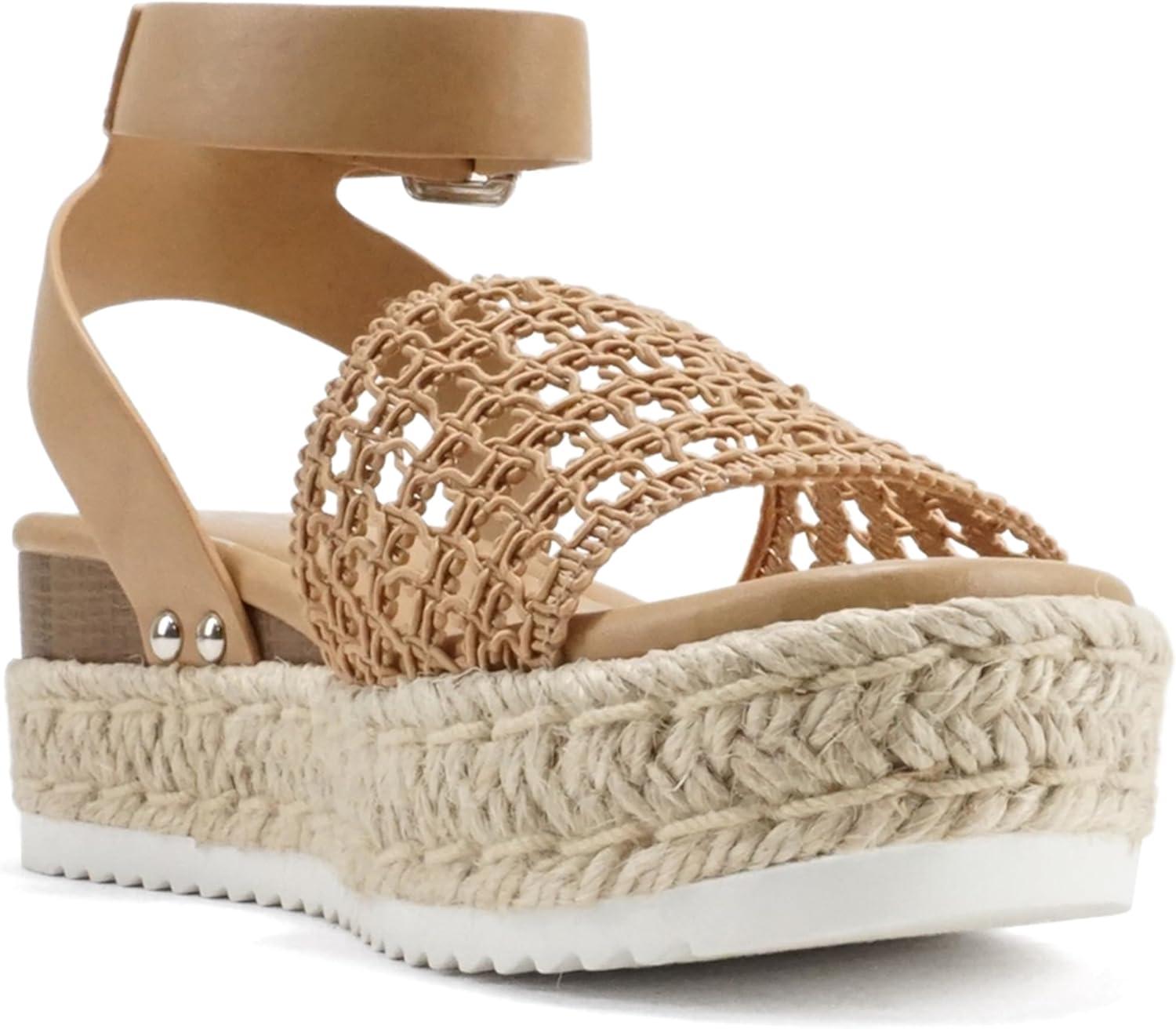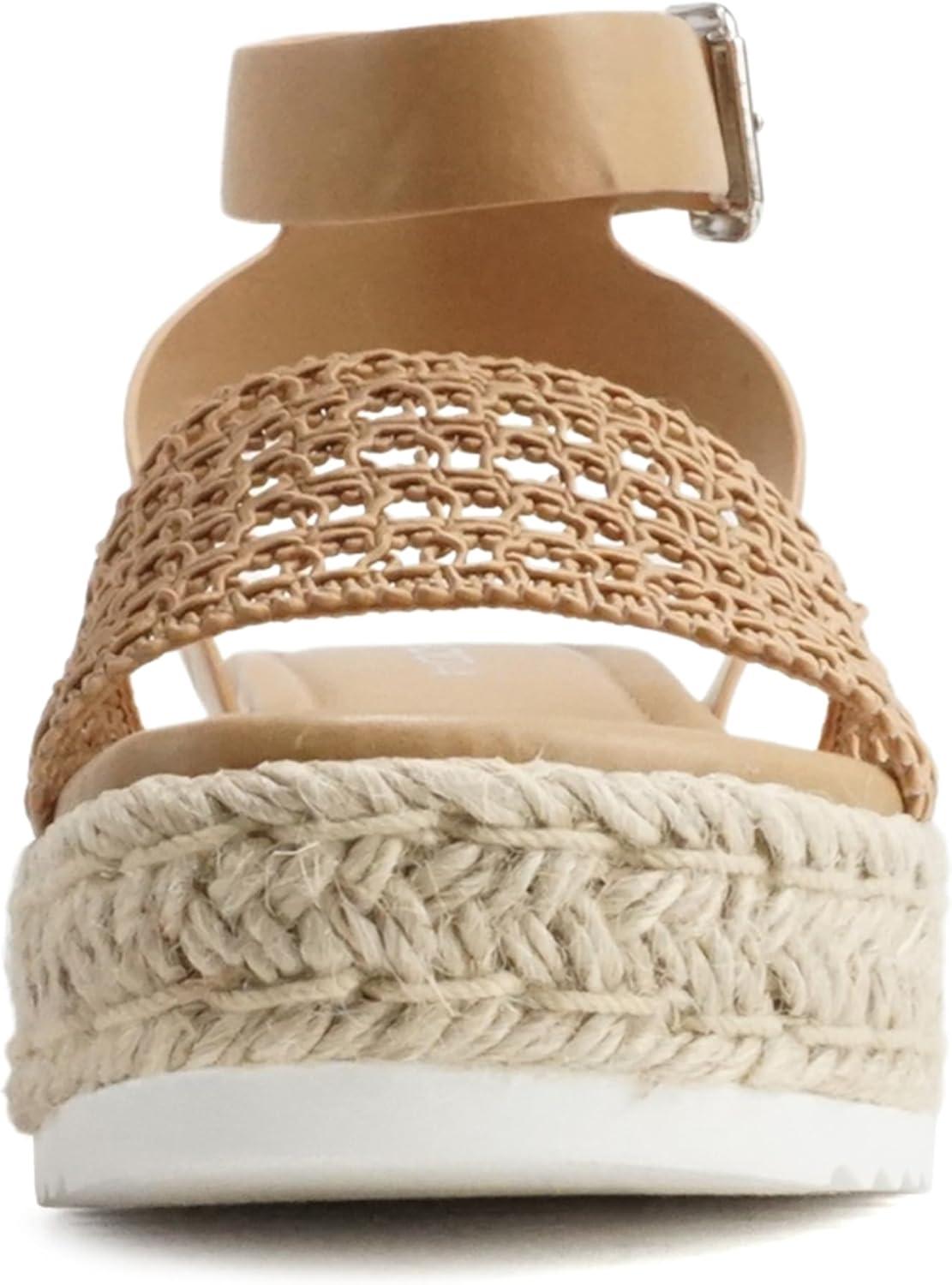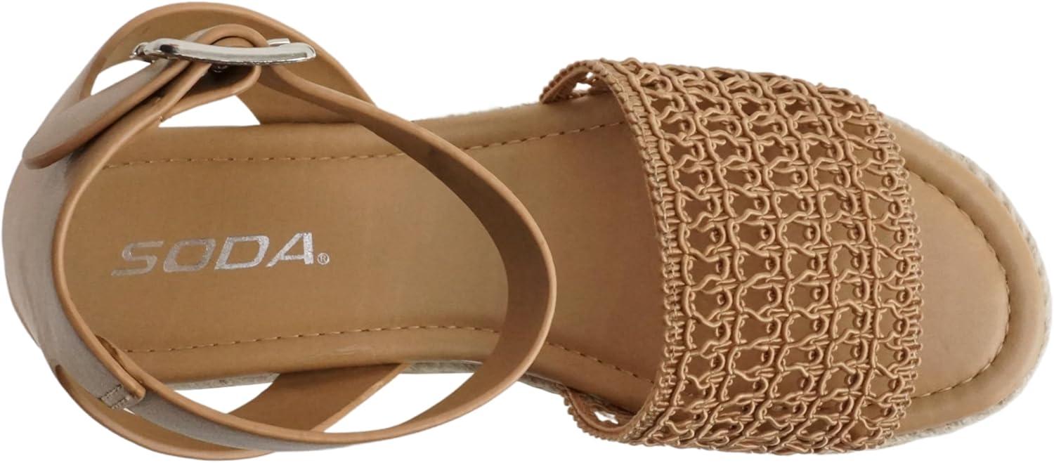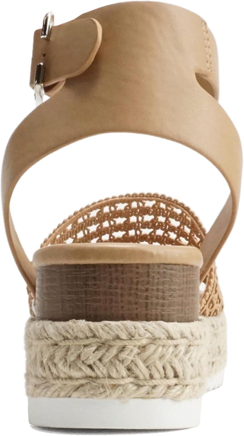 Soda Topic Open Toe Buckle Ankle Strap Espadrilles Flatform Wedge Casual Sandal(Braided Camel)