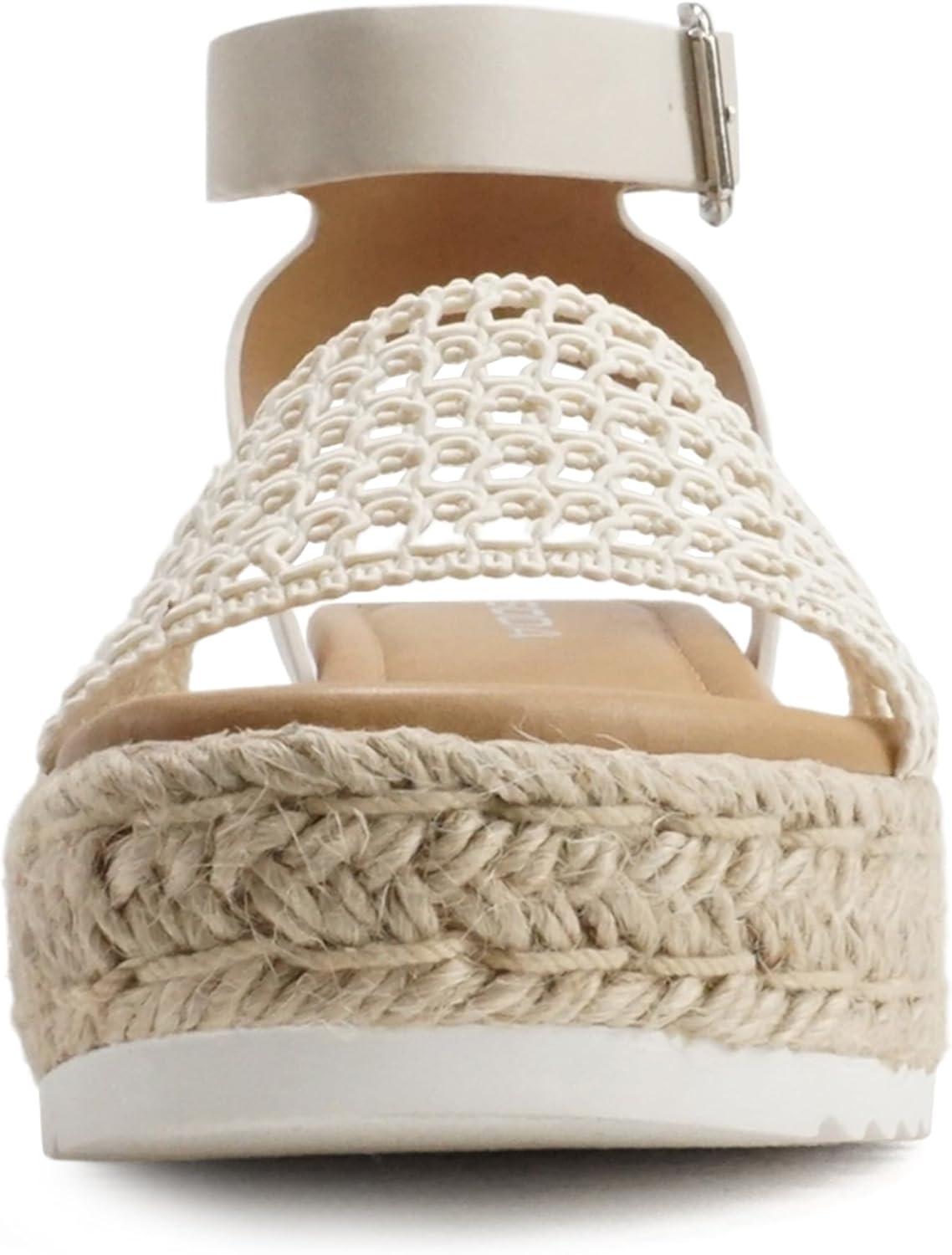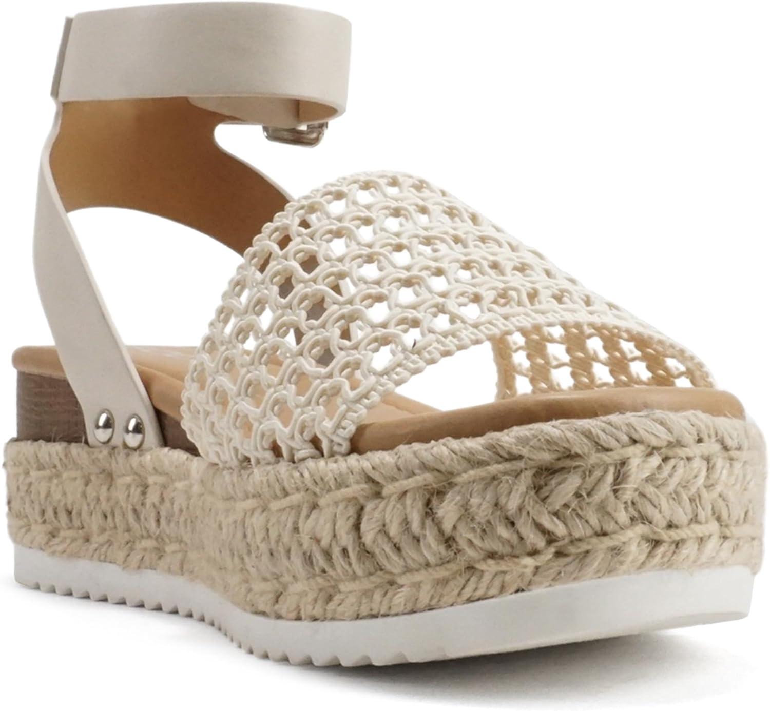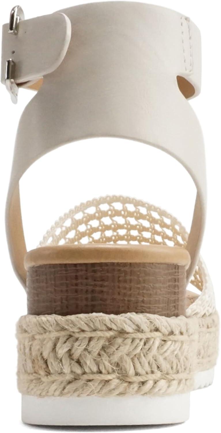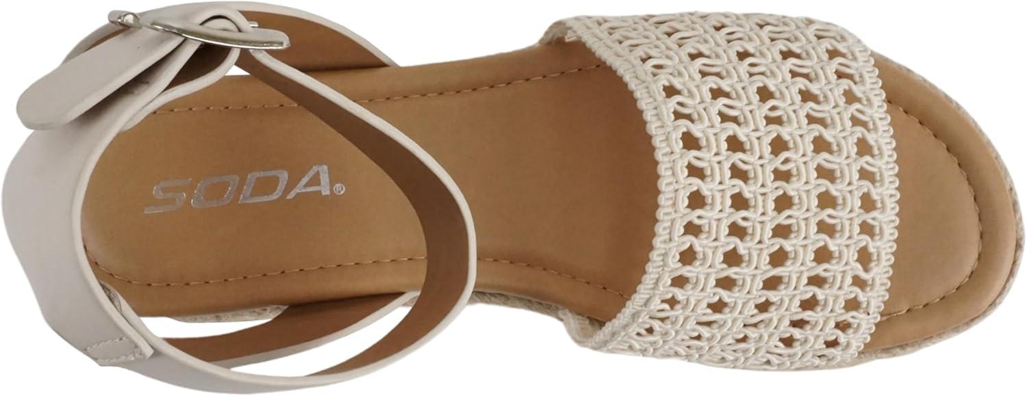 Soda Topic Open Toe Buckle Ankle Strap Espadrilles Flatform Wedge Casual Sandal(Braided Ivory)