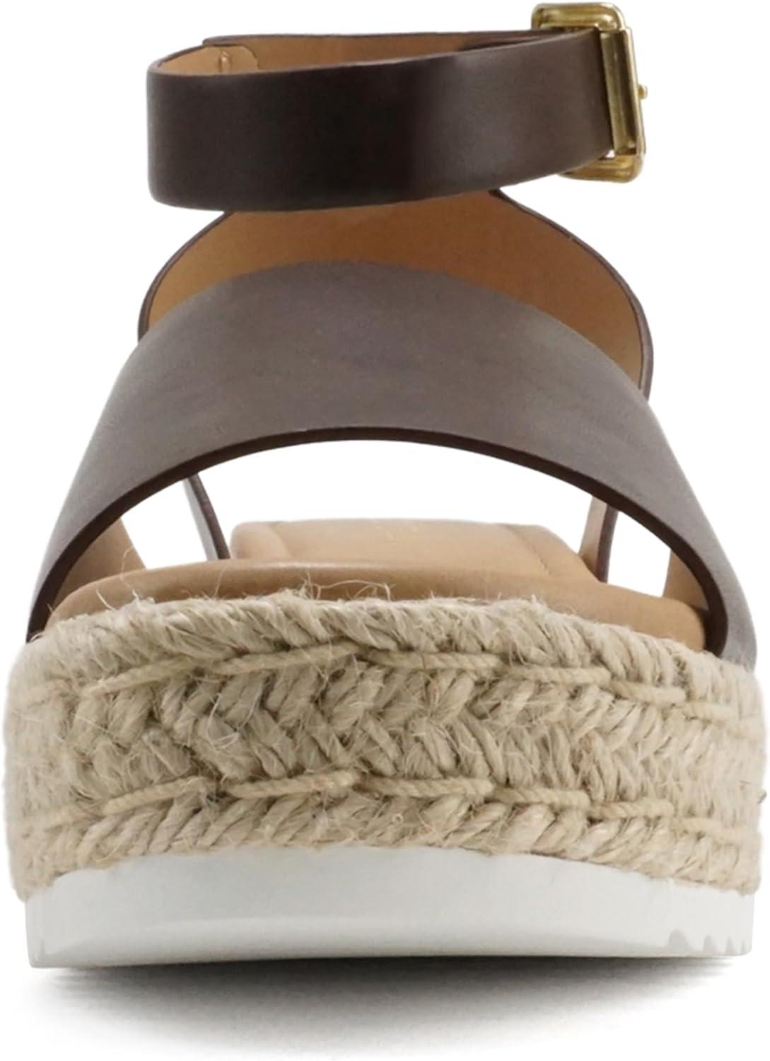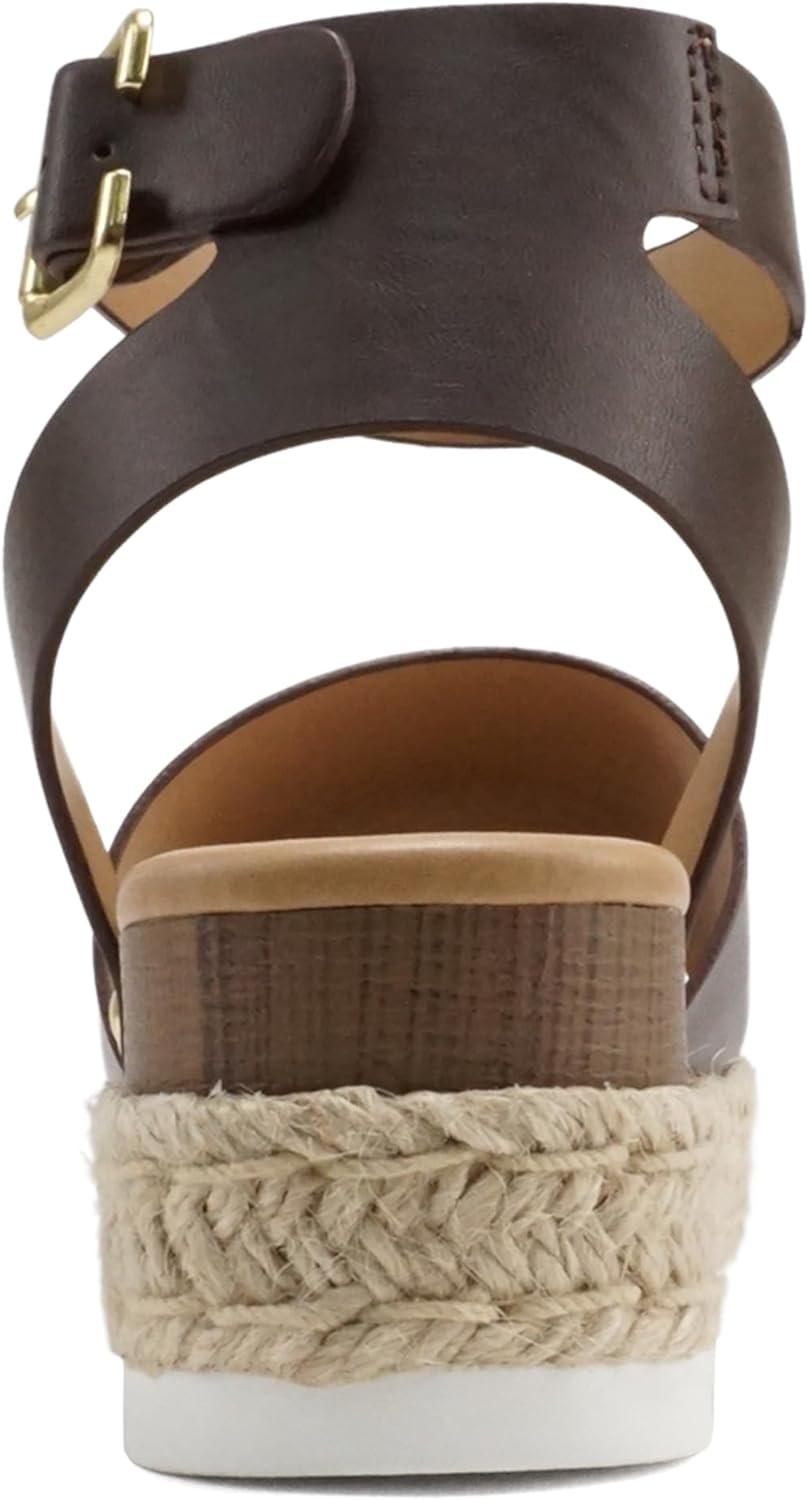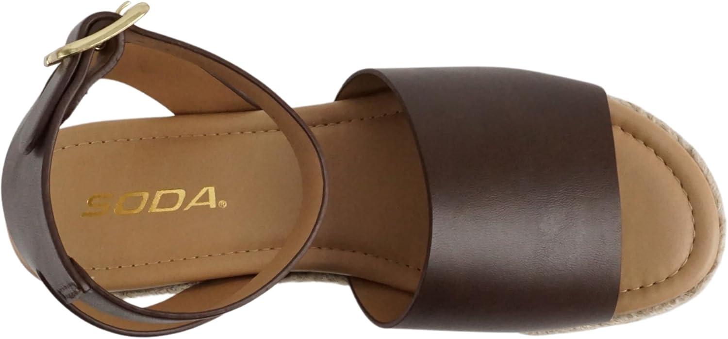 Soda Topic Open Toe Buckle Ankle Strap Espadrilles Flatform Wedge Casual Sandal(Brown Pu)