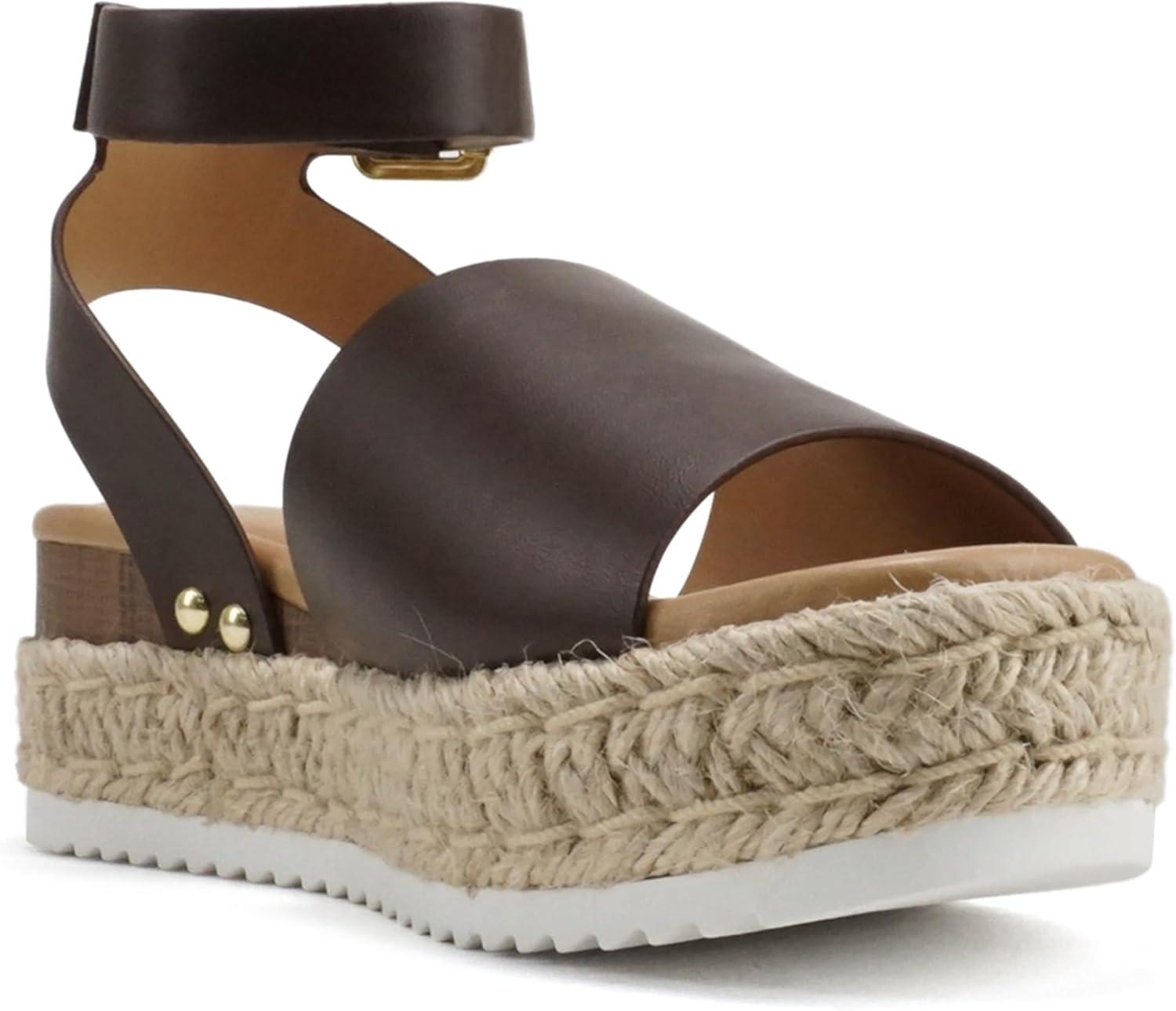 Get your hands on our newest Soda Topic Open Toe Buckle Ankle Strap Espadrilles Flatform Wedge Casual Sandal(Brown Pu) and enjoy a limited-time discount offer.