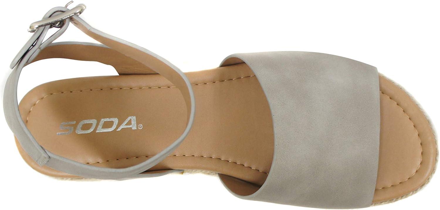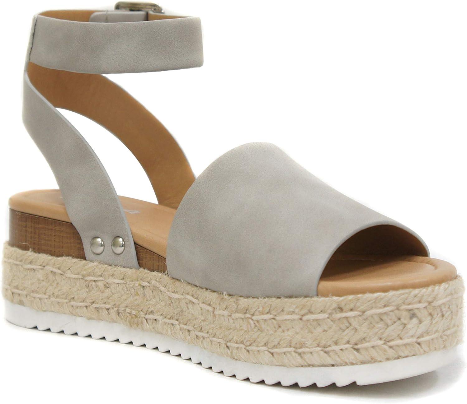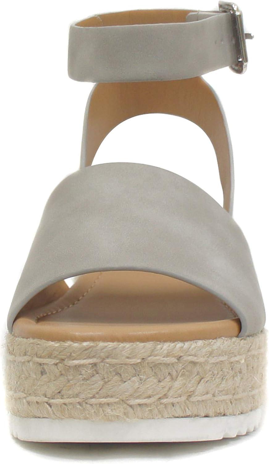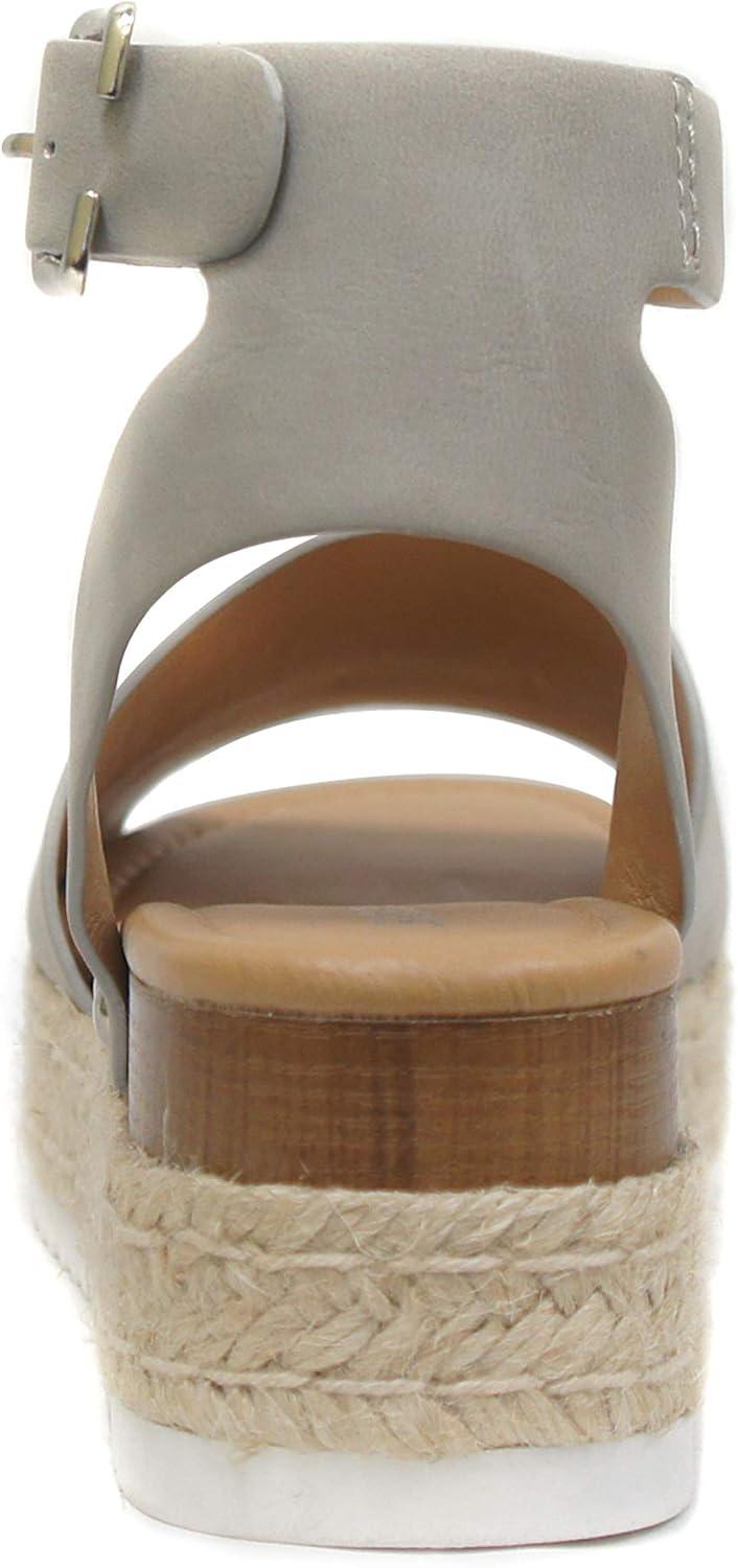 Soda Topic Open Toe Buckle Ankle Strap Espadrilles Flatform Wedge Casual Sandal(Dove Grey)