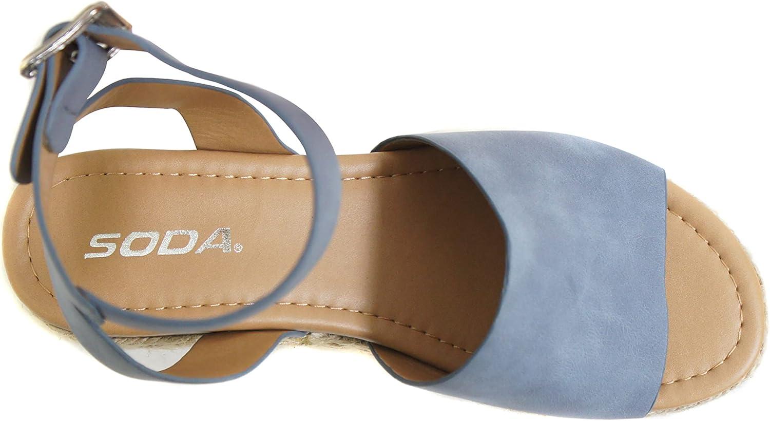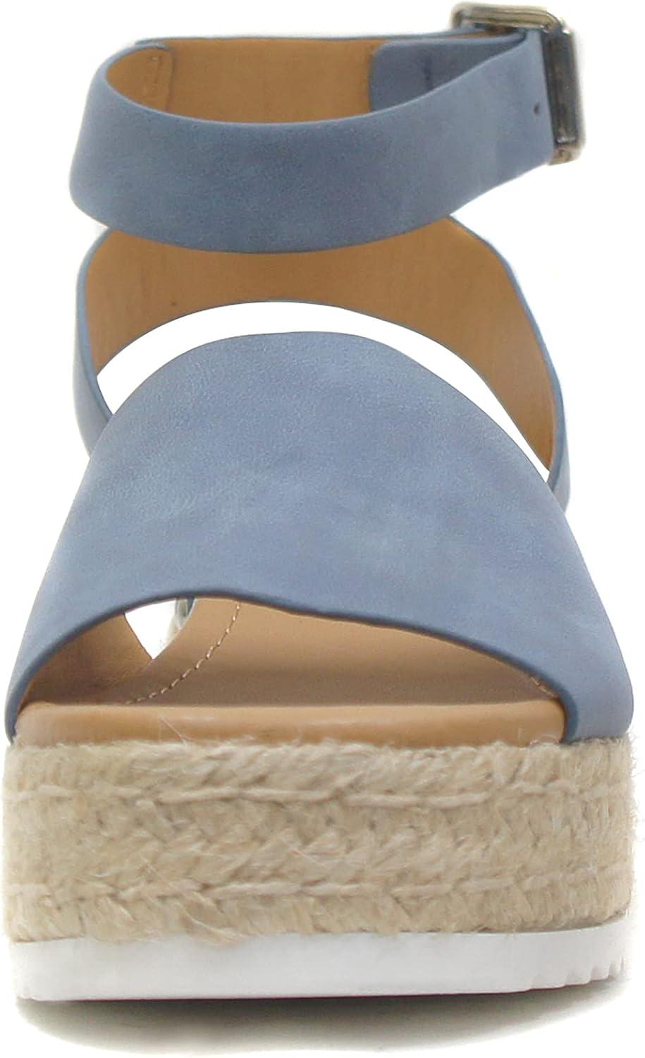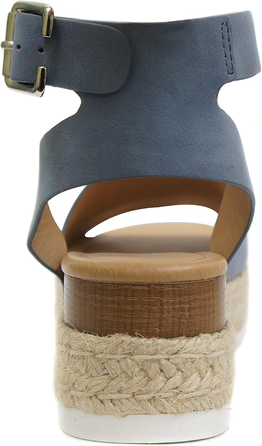 Soda Topic Open Toe Buckle Ankle Strap Espadrilles Flatform Wedge Casual Sandal(Dusty Blue)