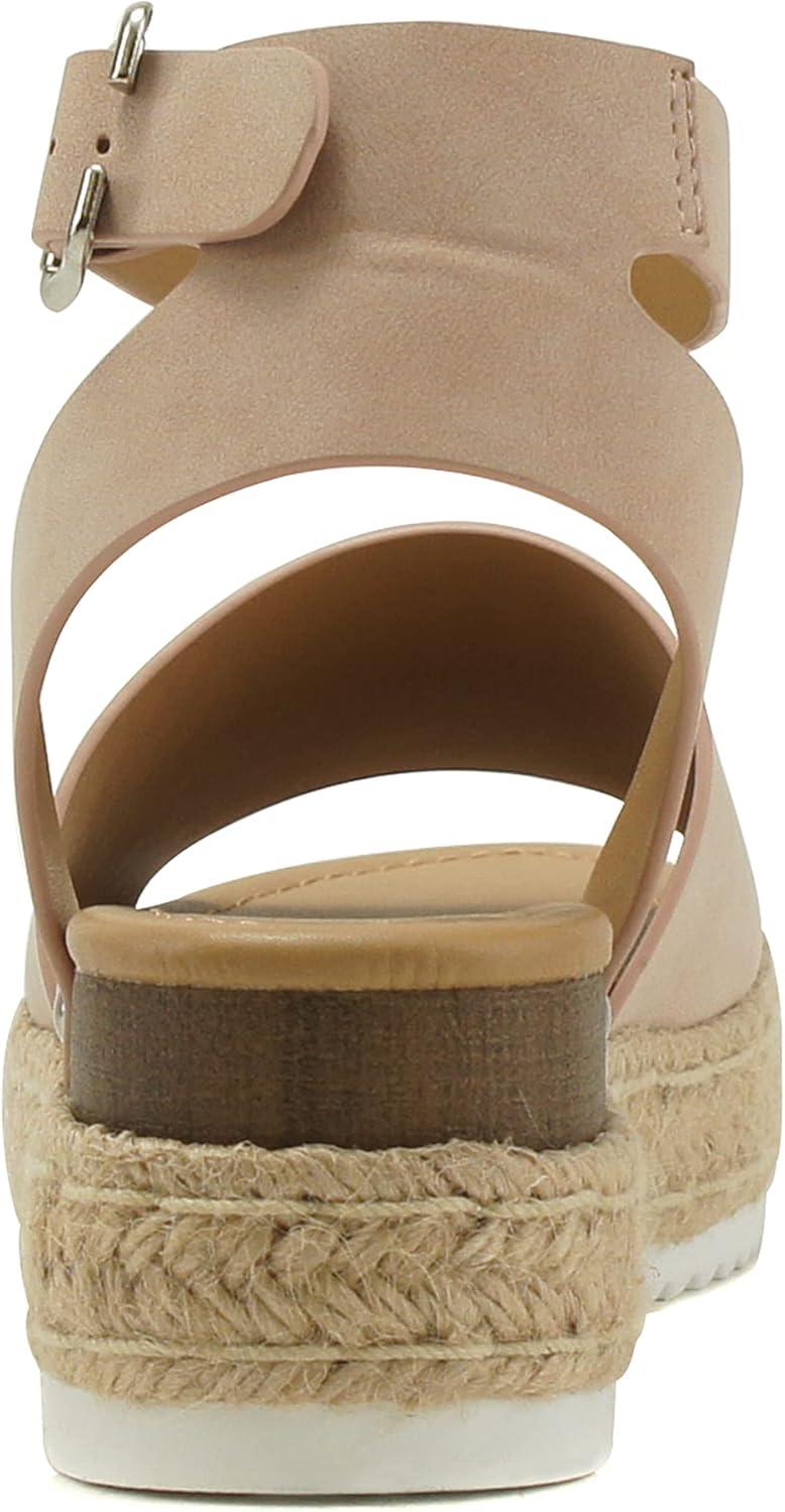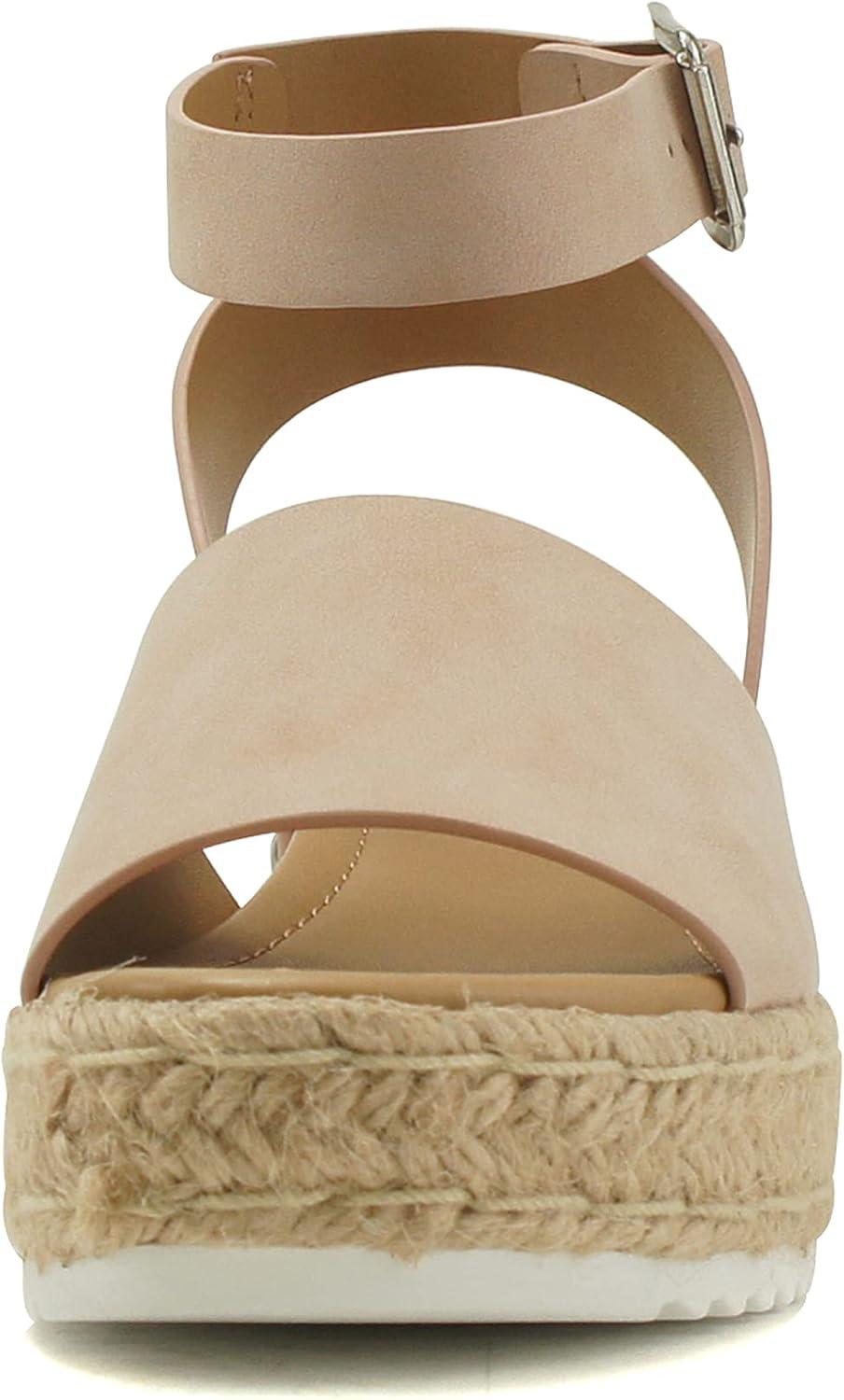 Soda Topic Open Toe Buckle Ankle Strap Espadrilles Flatform Wedge Casual Sandal(Dusty Mauve)