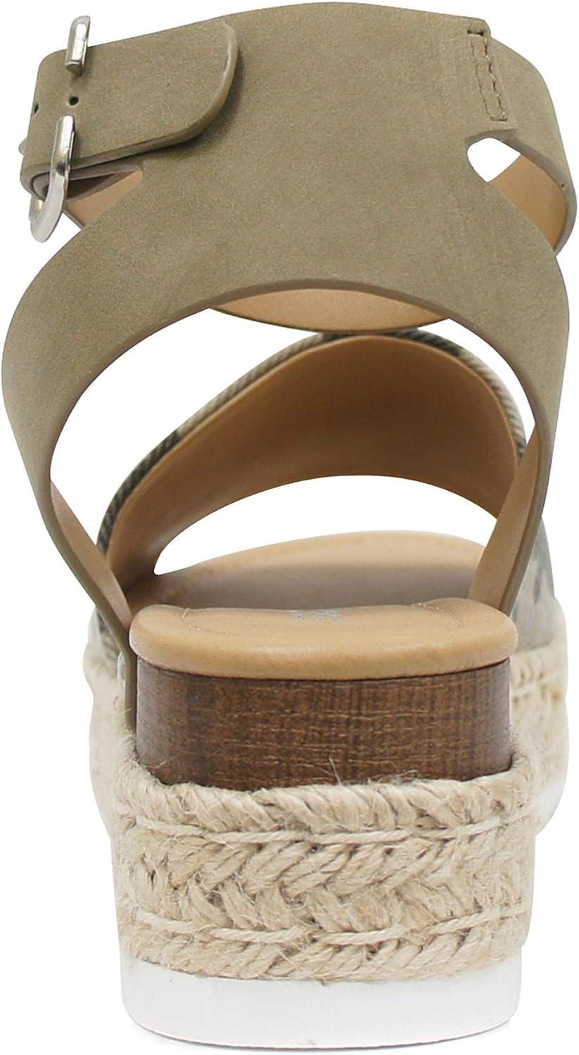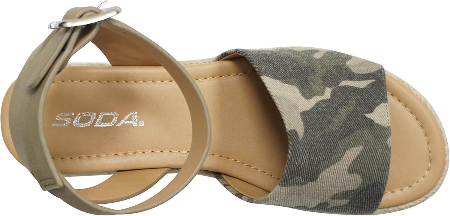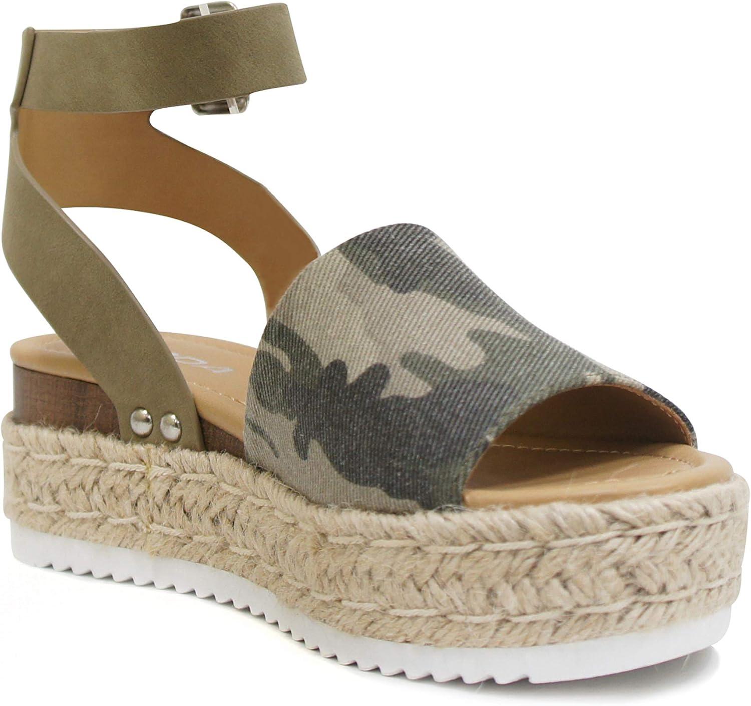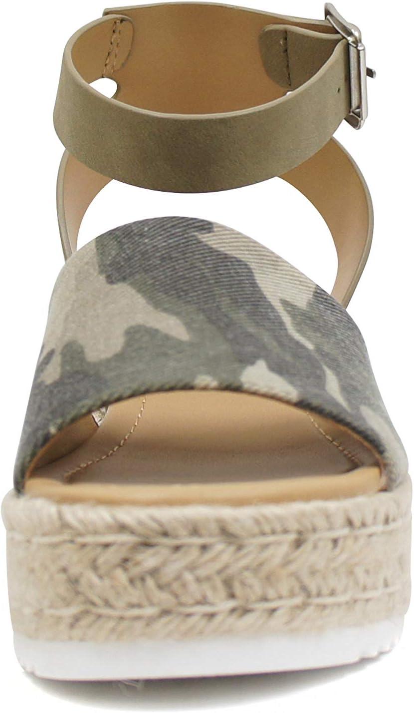 Soda Topic Open Toe Buckle Ankle Strap Espadrilles Flatform Wedge Casual Sandal(Light Khaki Camouflage)