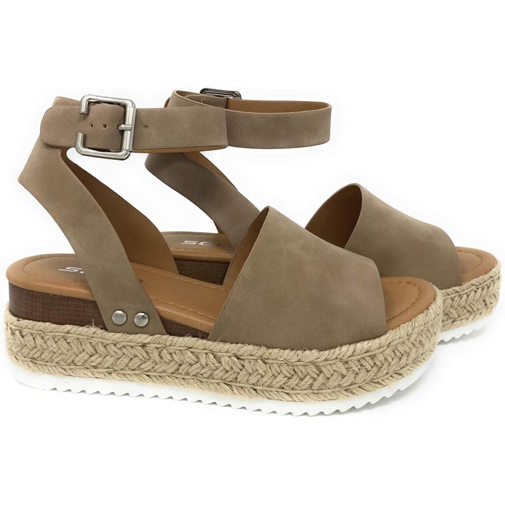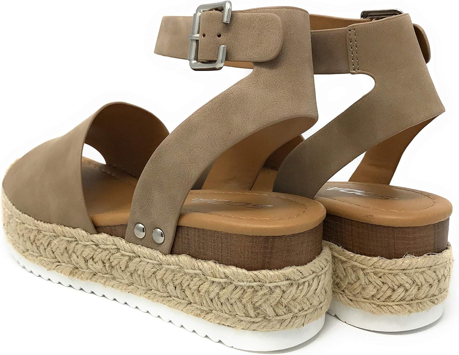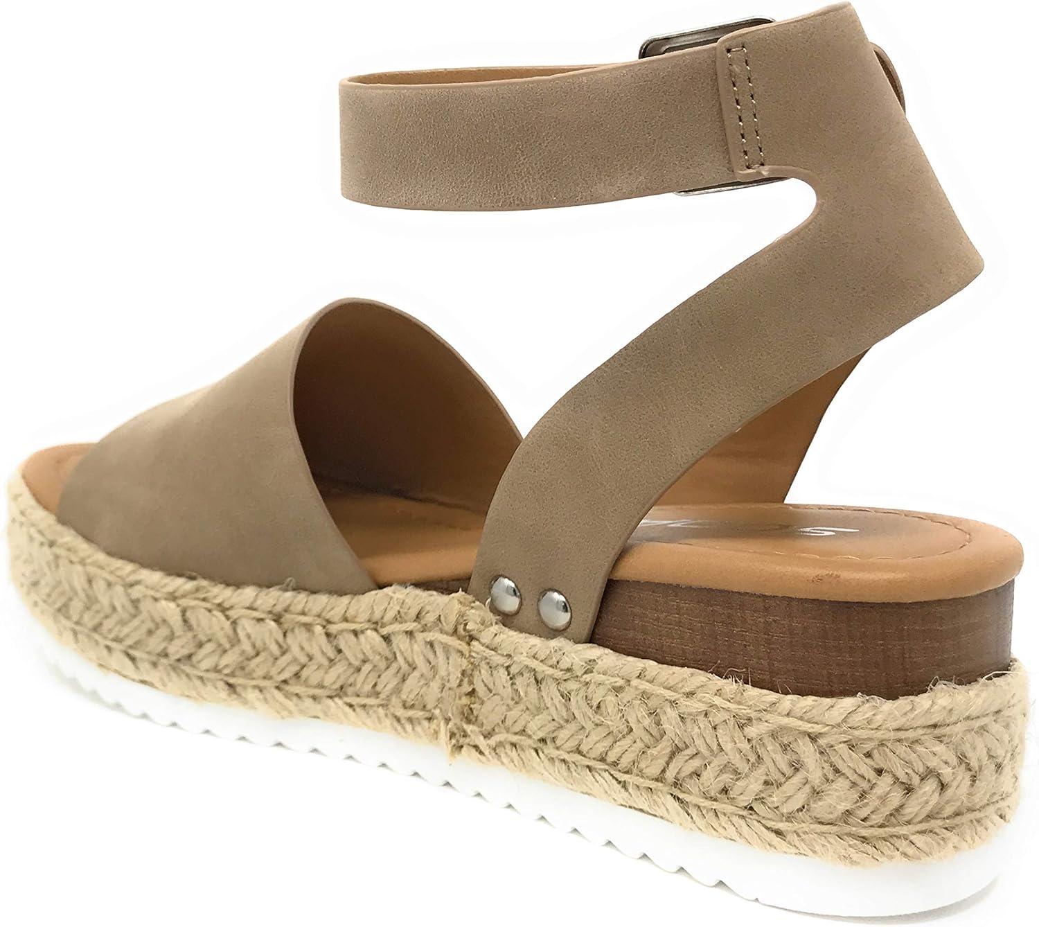 Soda Topic Open Toe Buckle Ankle Strap Espadrilles Flatform Wedge Casual Sandal(Natural Jd)