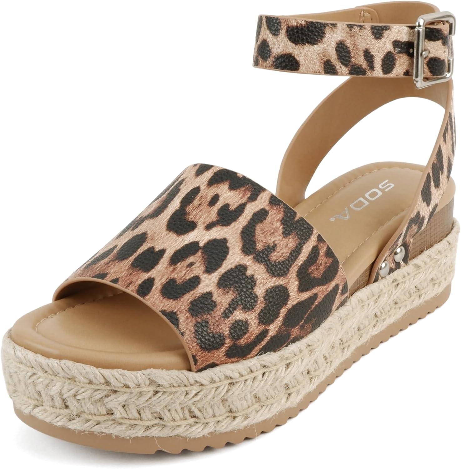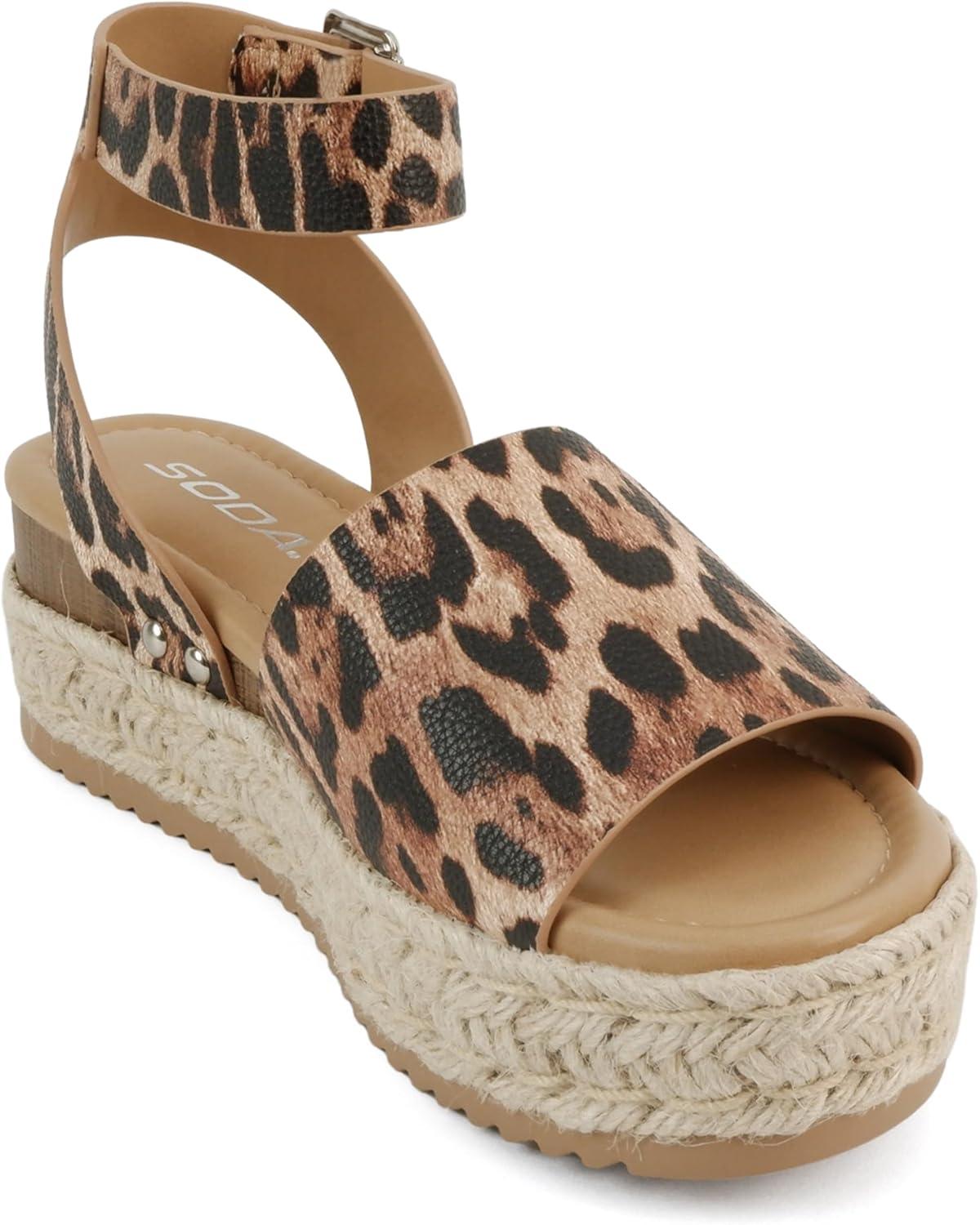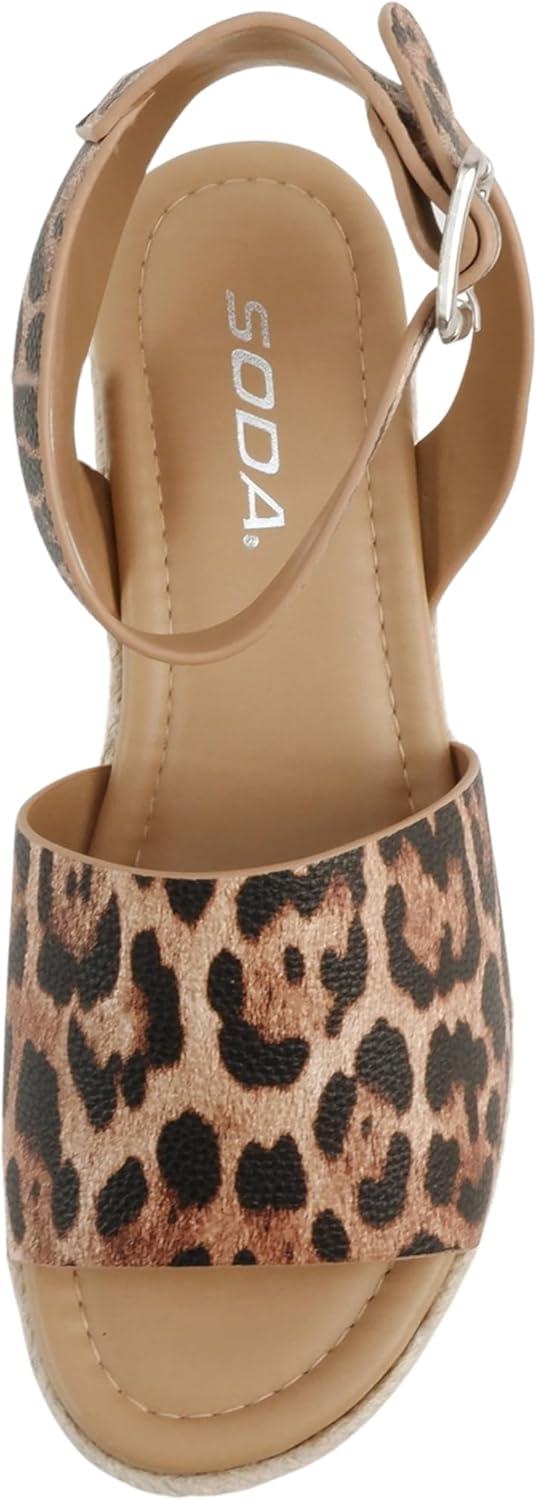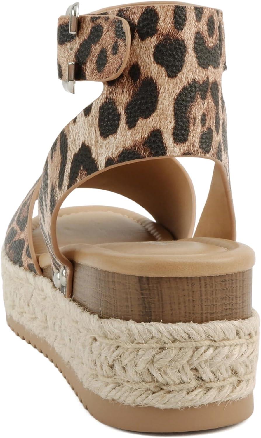 Soda Topic Open Toe Buckle Ankle Strap Espadrilles Flatform Wedge Casual Sandal(Natural Leopard)