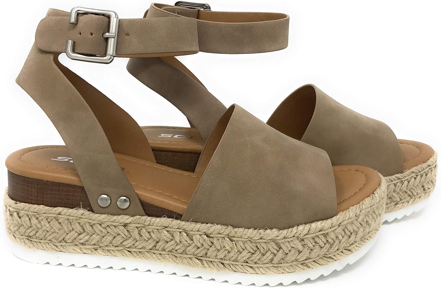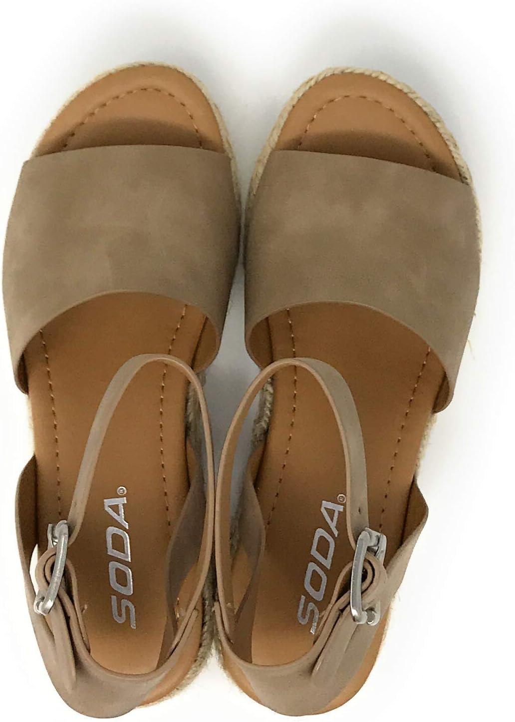 Soda Topic Open Toe Buckle Ankle Strap Espadrilles Flatform Wedge Casual Sandal(Natural T)