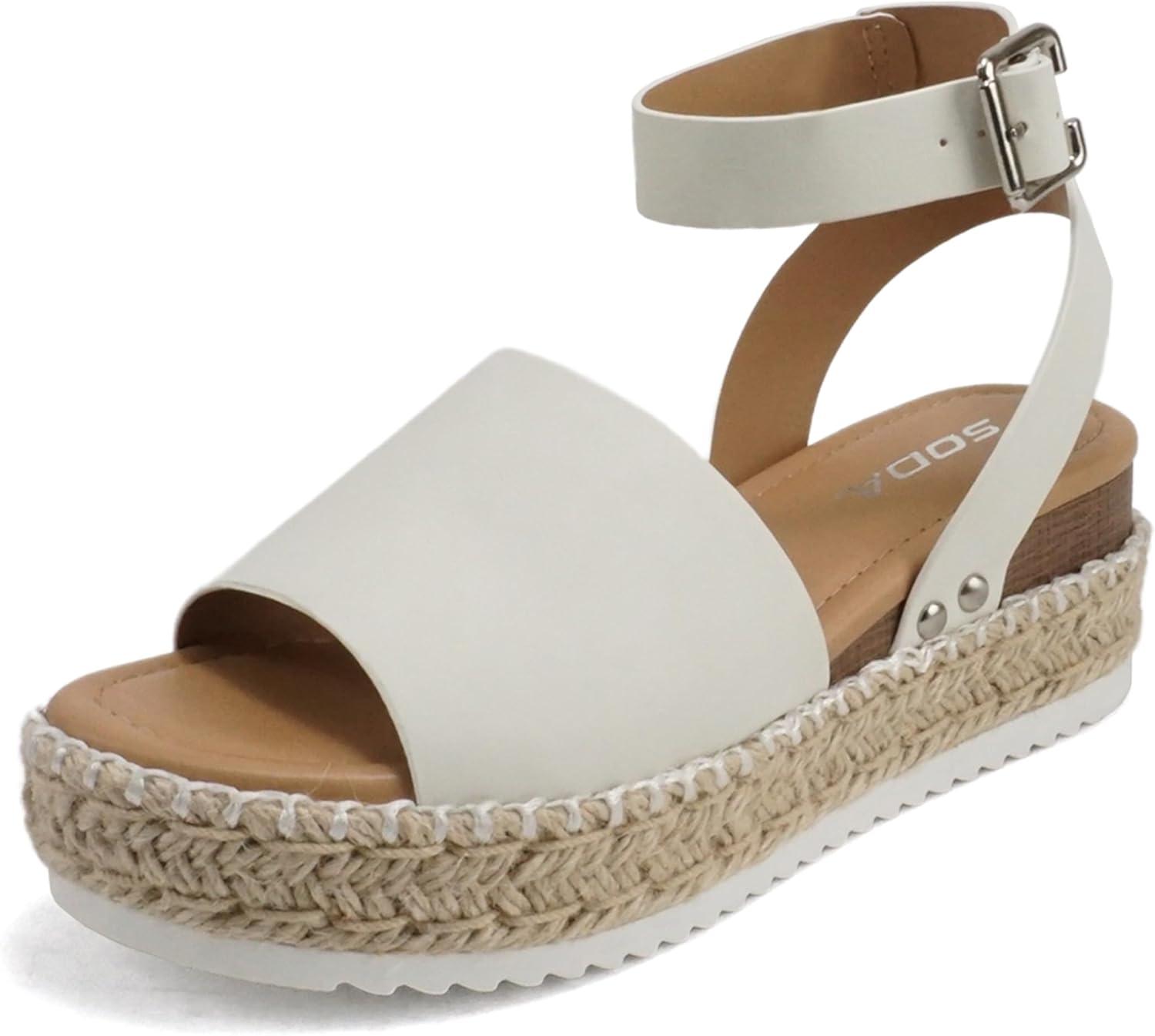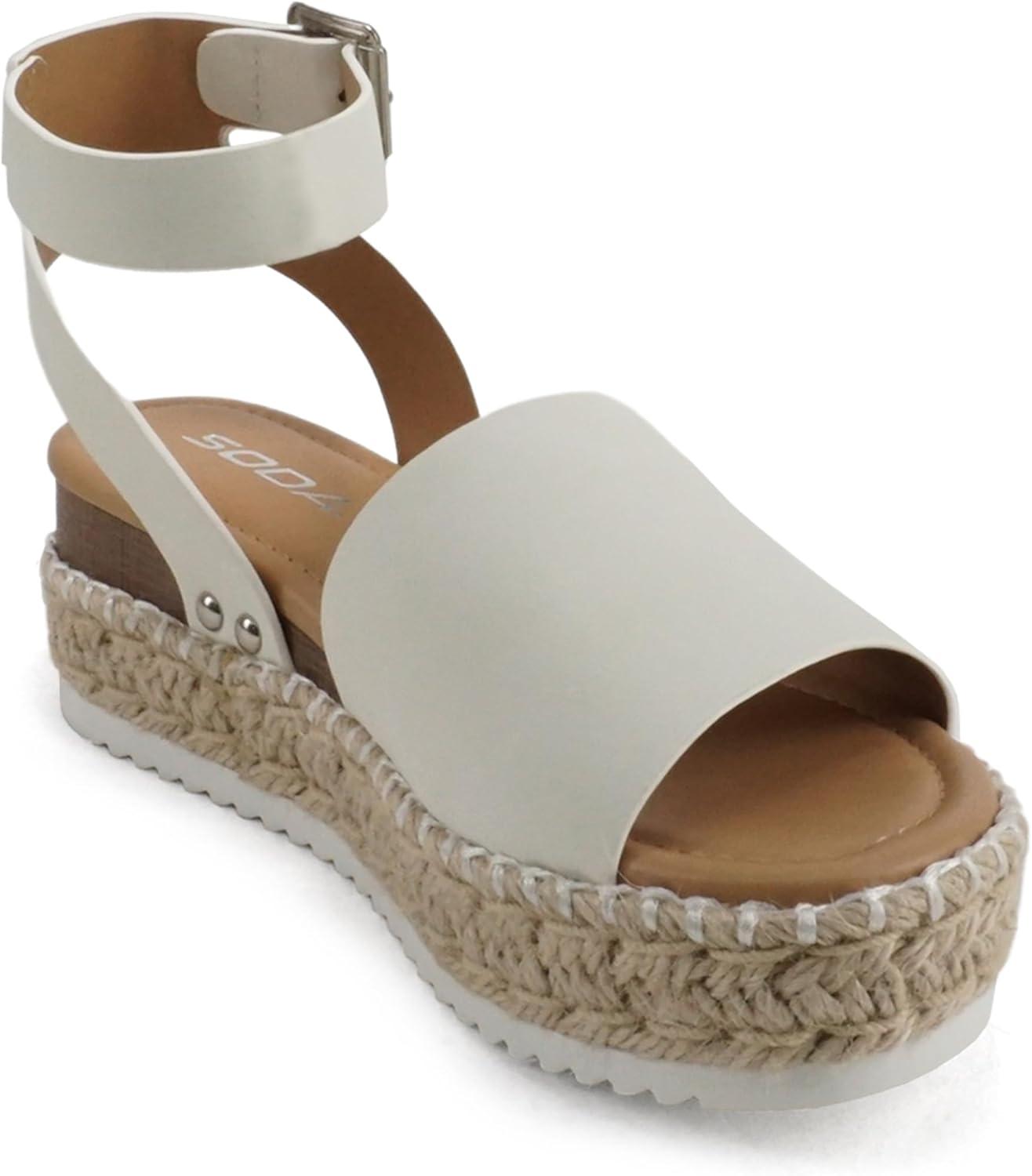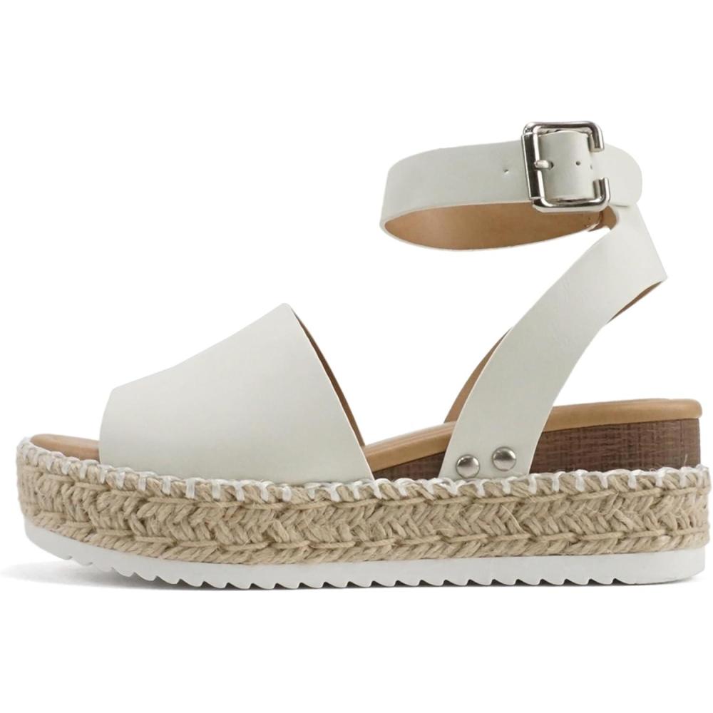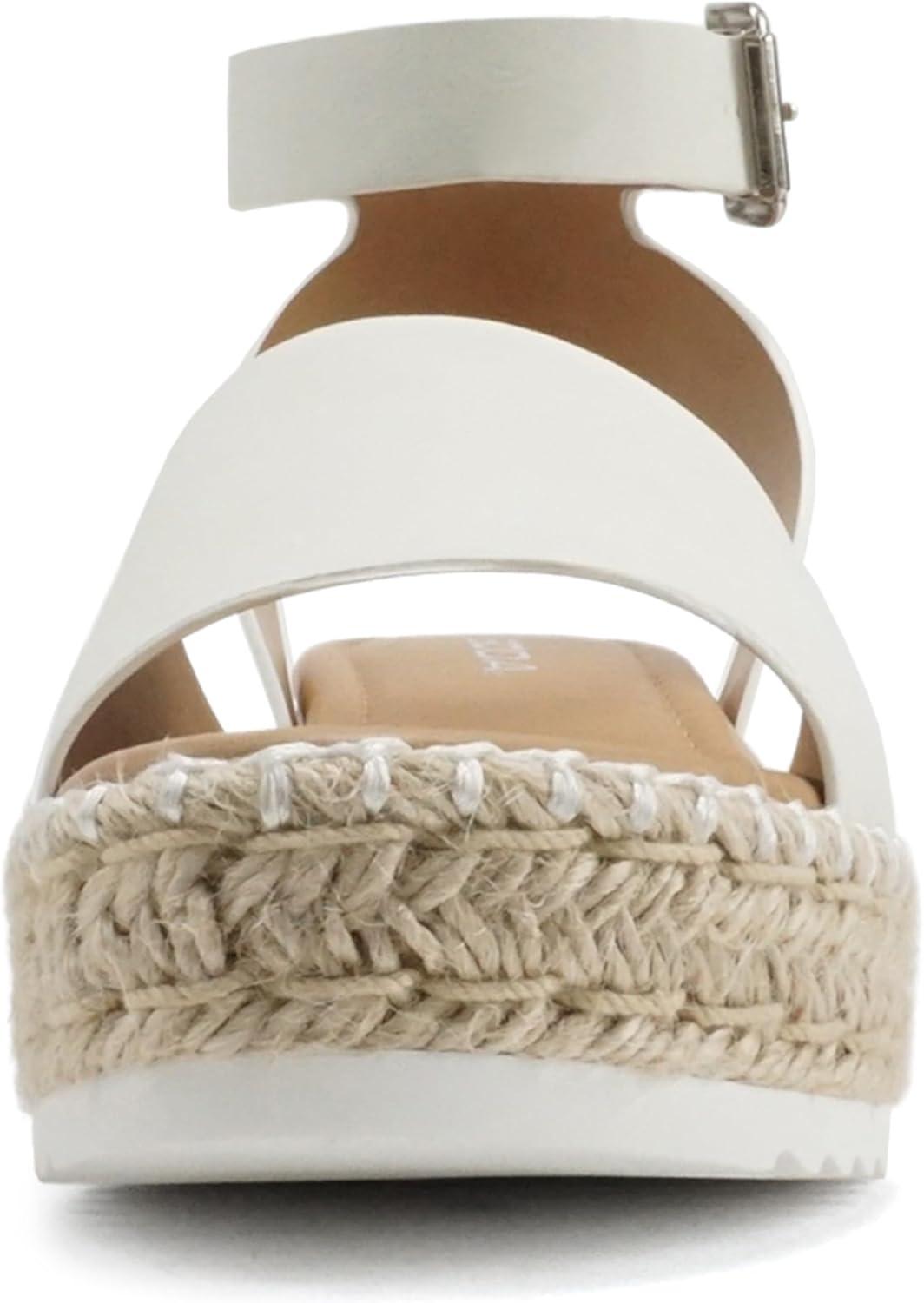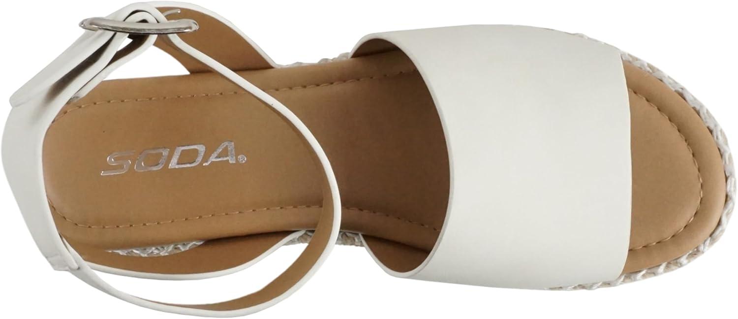 Soda Topic Open Toe Buckle Ankle Strap Espadrilles Flatform Wedge Casual Sandal(O-whte Nb (Whipped Stitch))