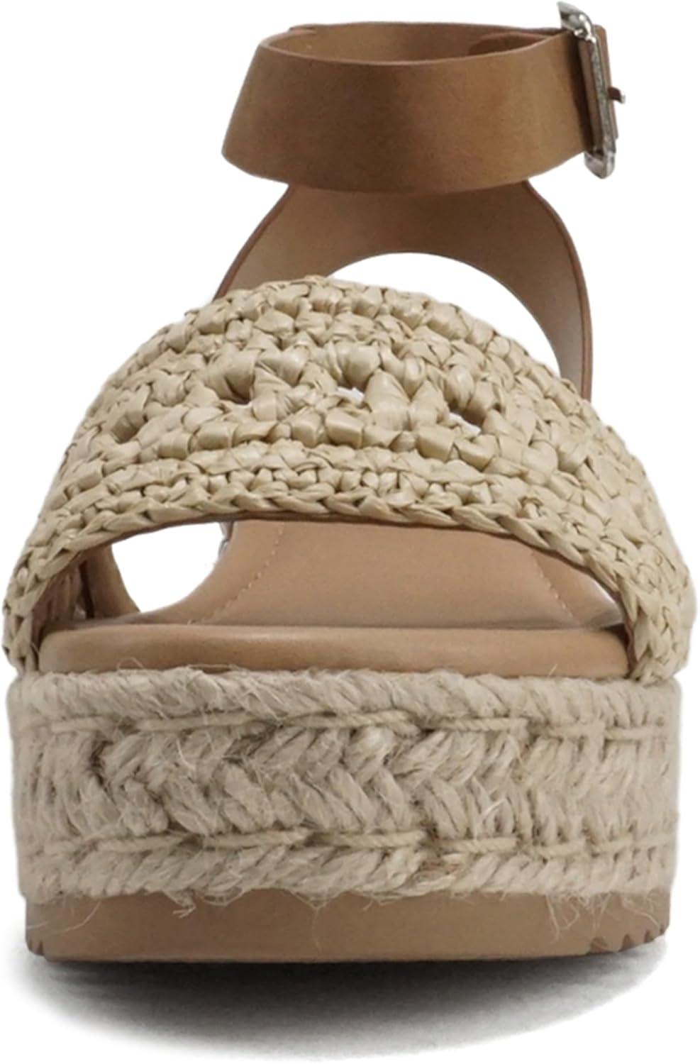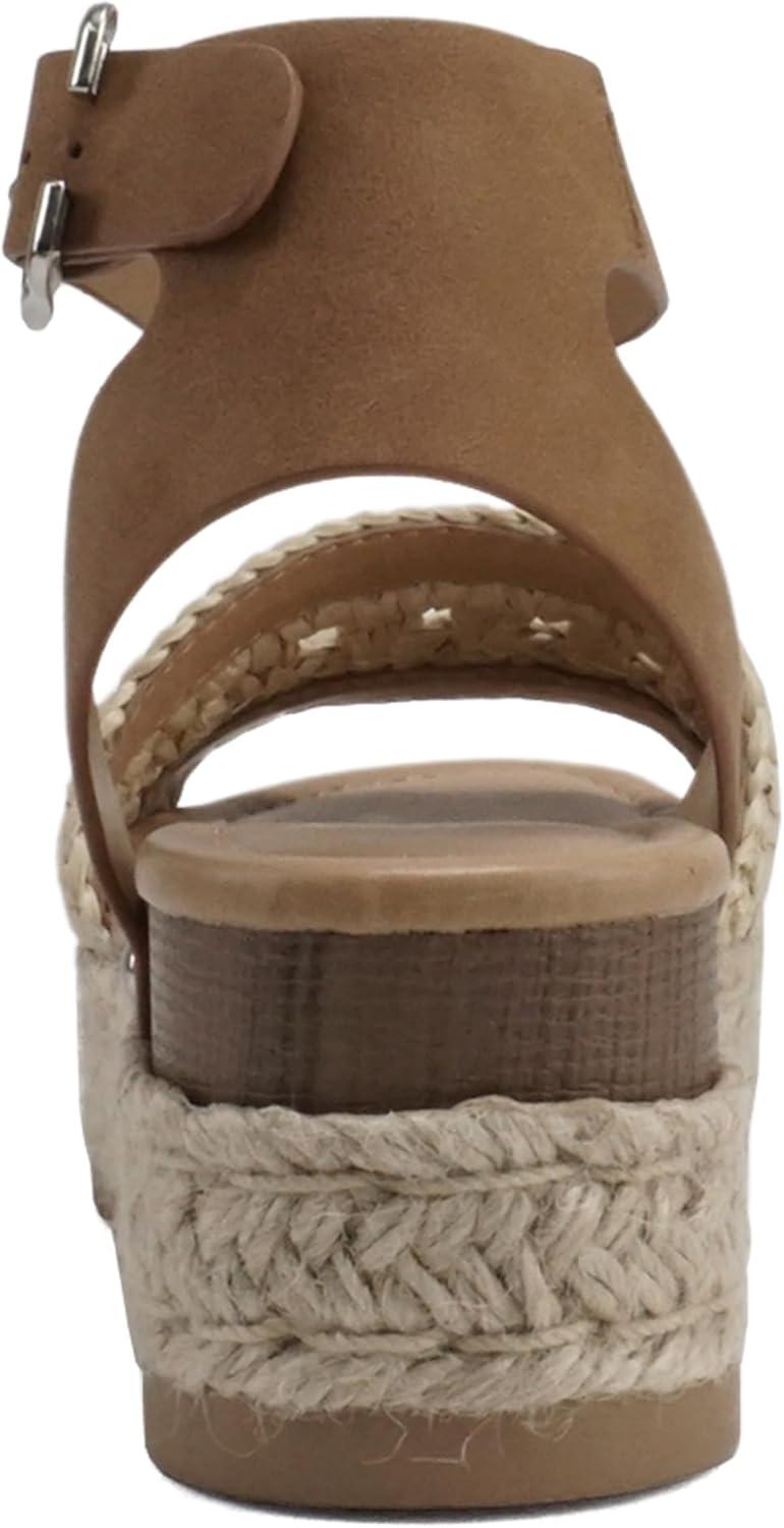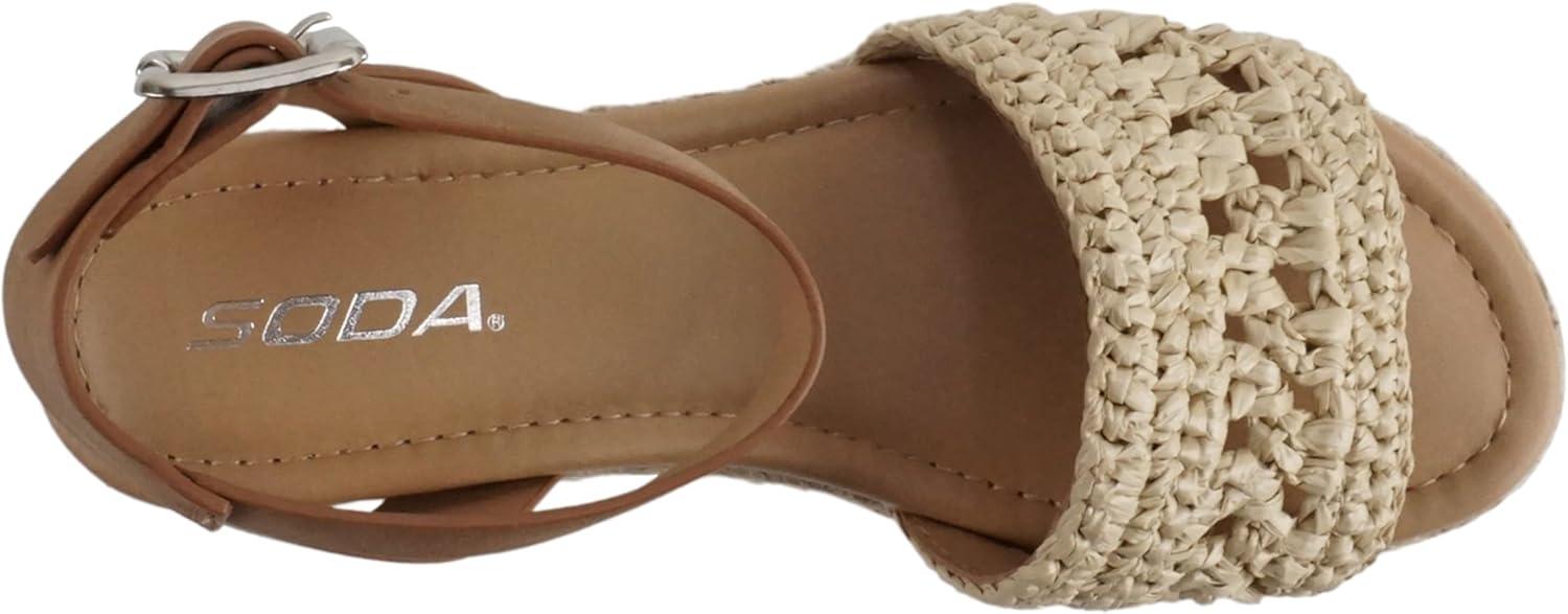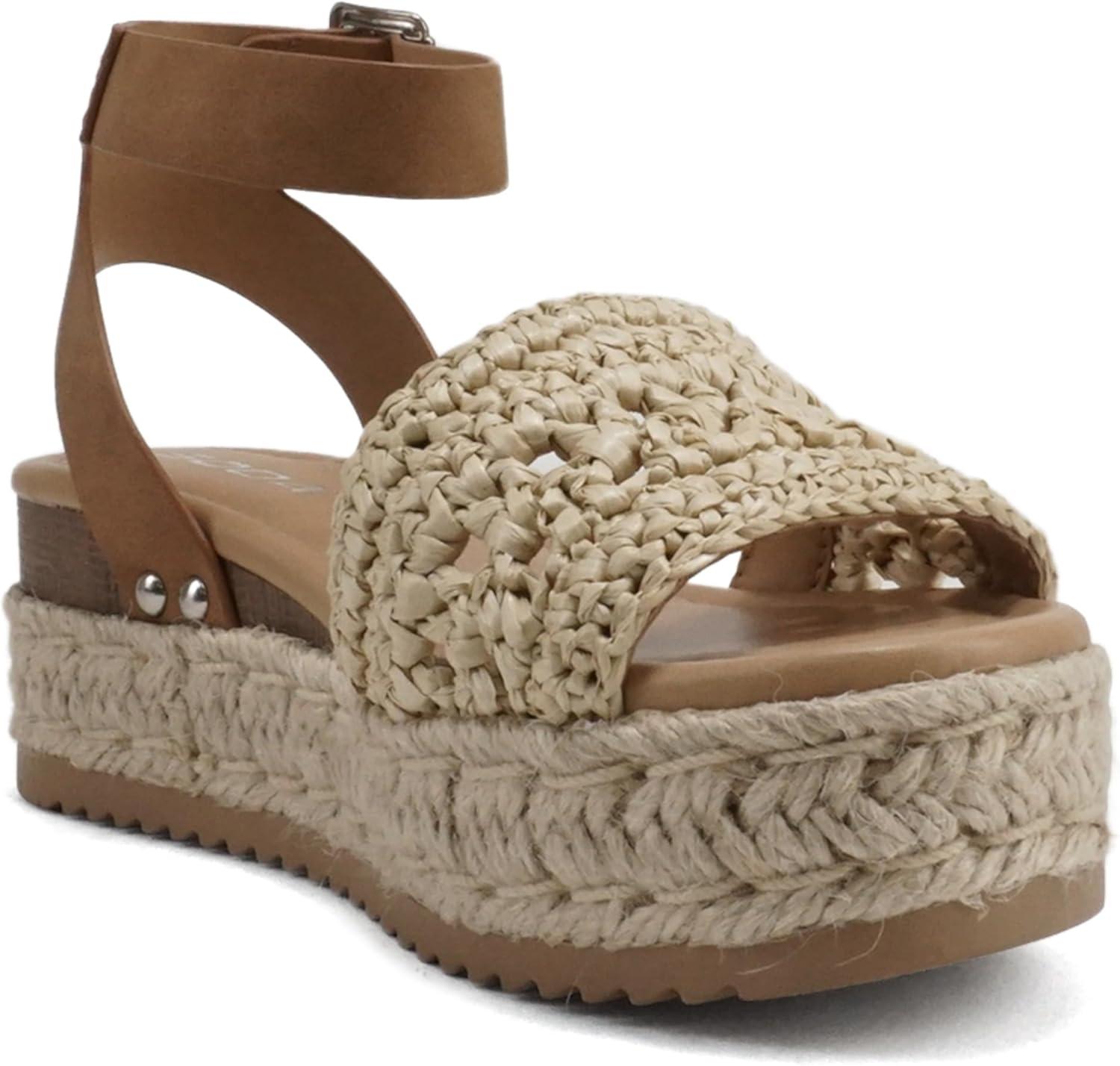 Soda Topic Open Toe Buckle Ankle Strap Espadrilles Flatform Wedge Casual Sandal(Raffia)
