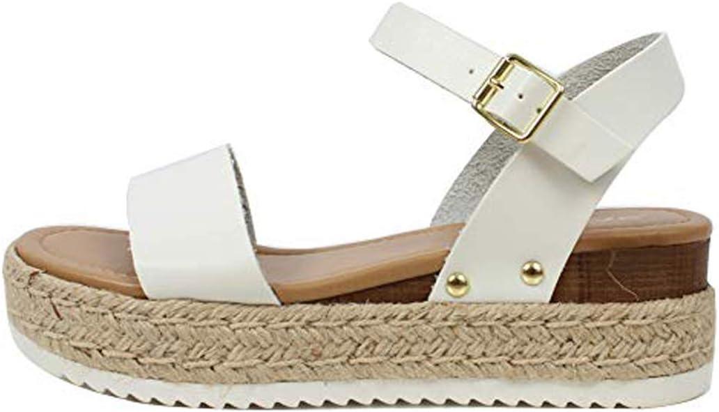 Soda Topic Open Toe Buckle Ankle Strap Espadrilles Flatform Wedge Casual Sandal(Whiteclp)