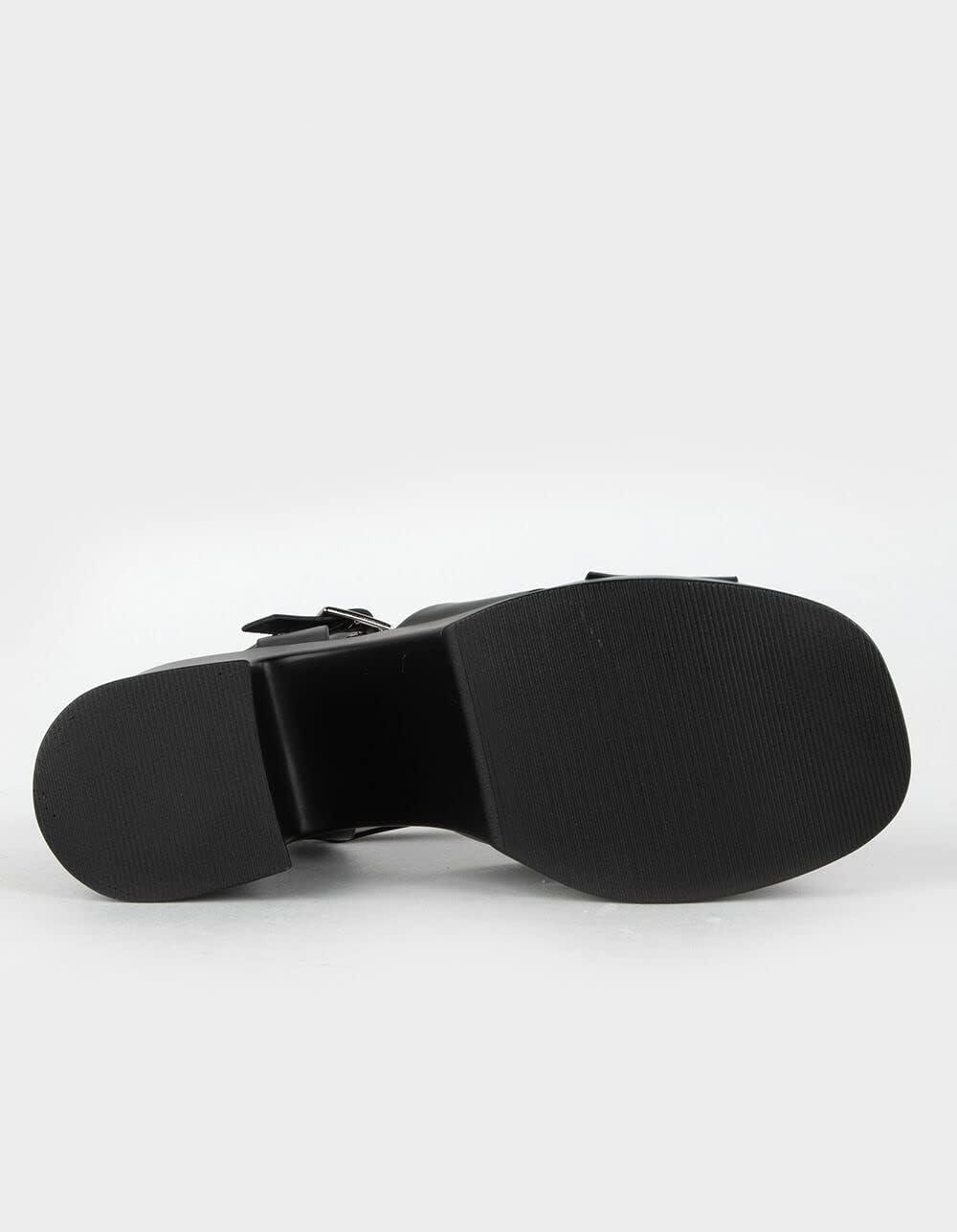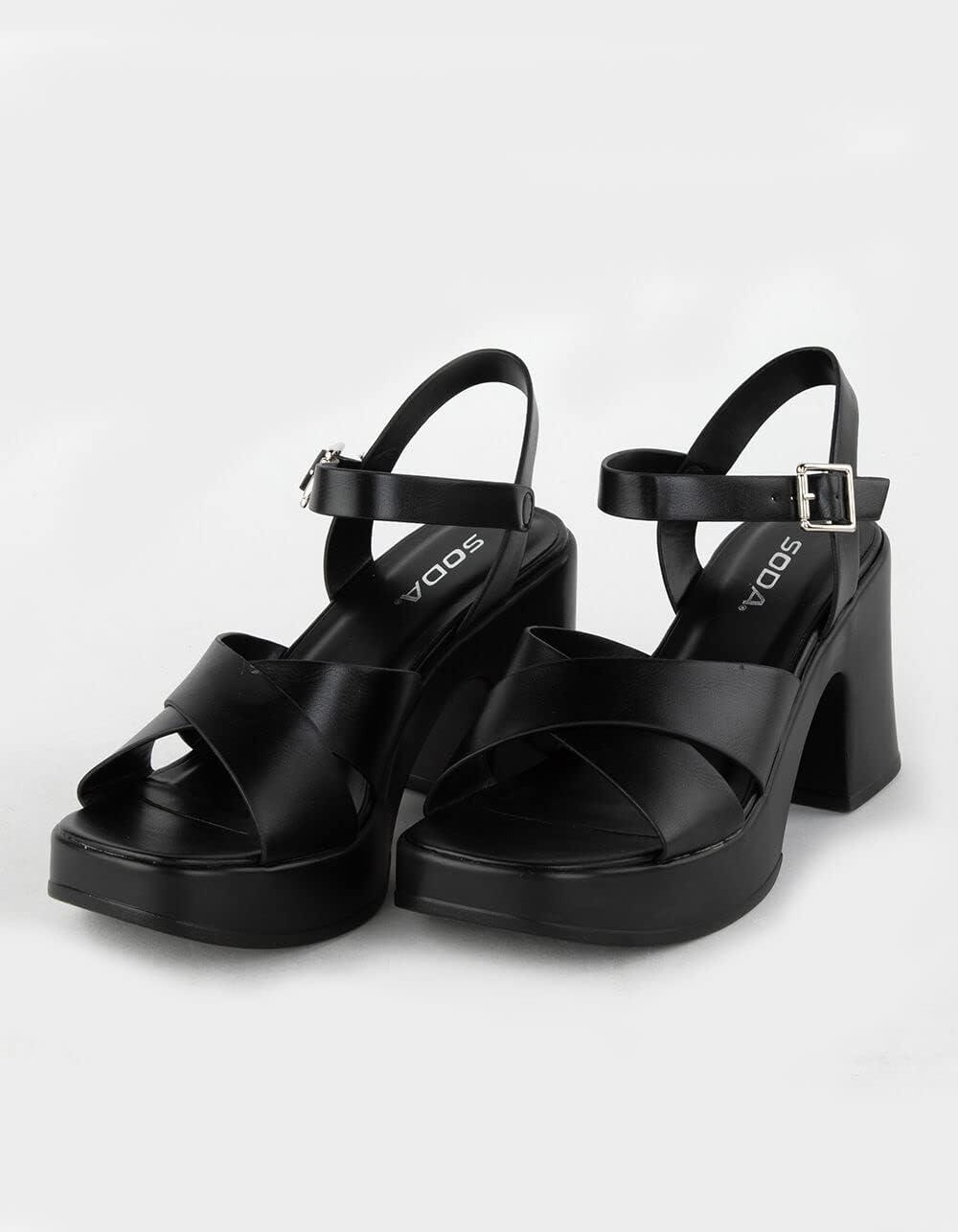 Soda Touch ~ Womens Square Toe Crisscross Band Platform Notch Wedge Heel Sandals(Black Pu)
