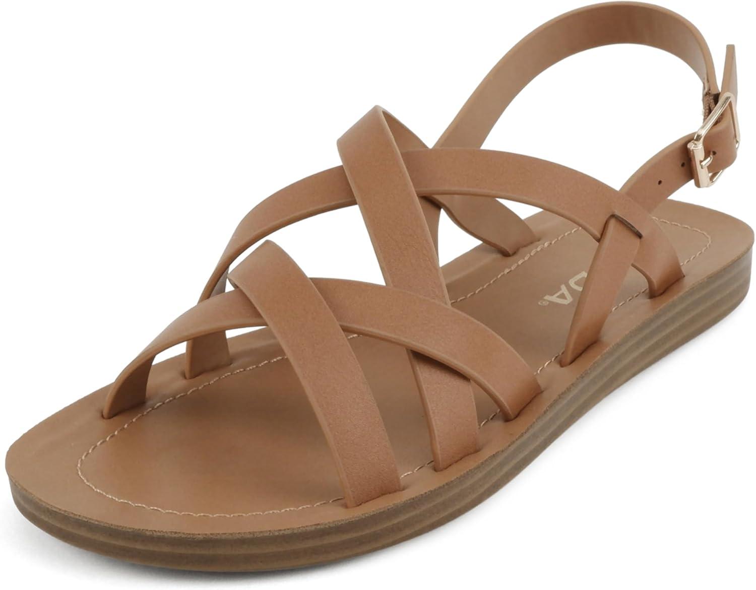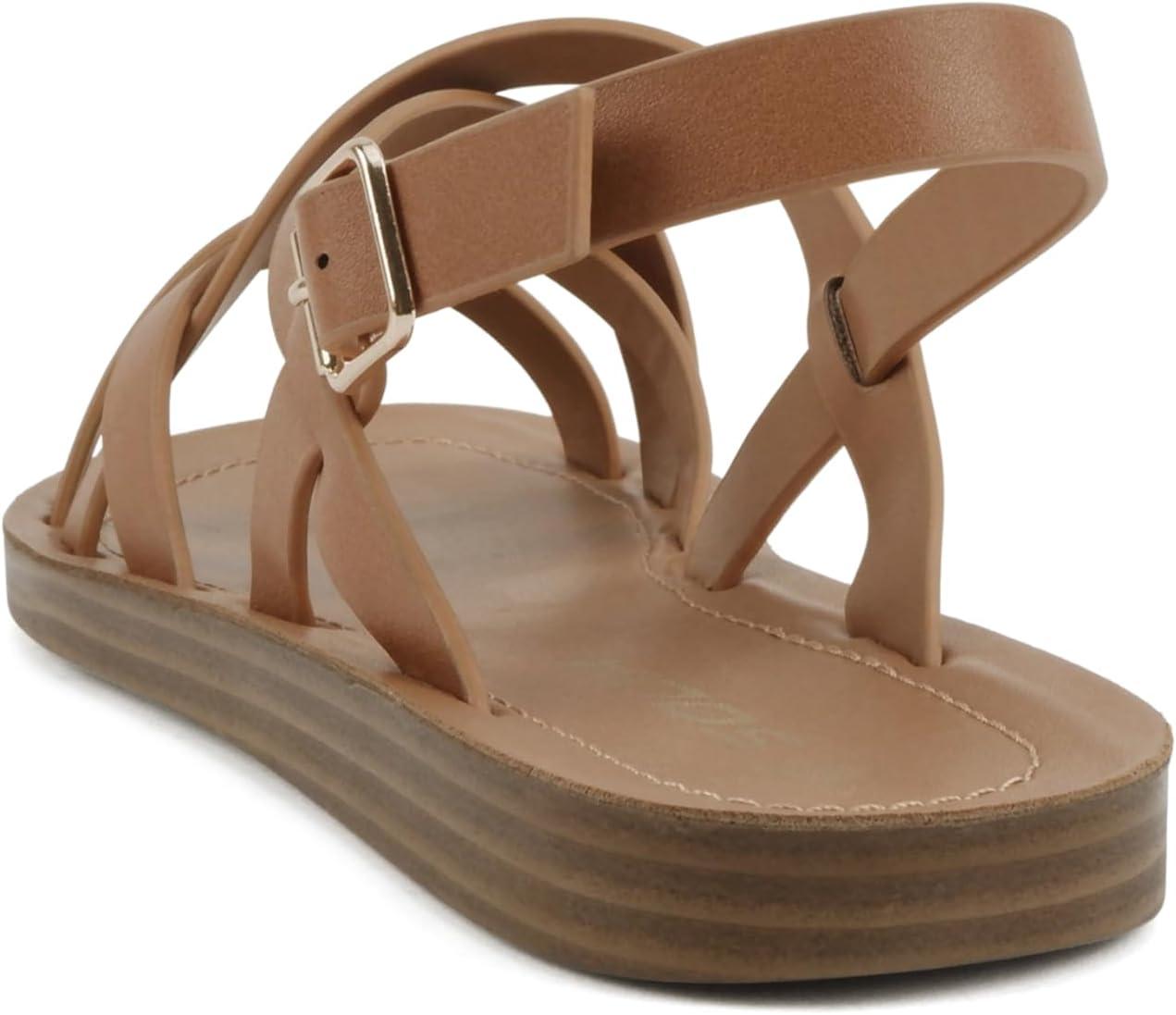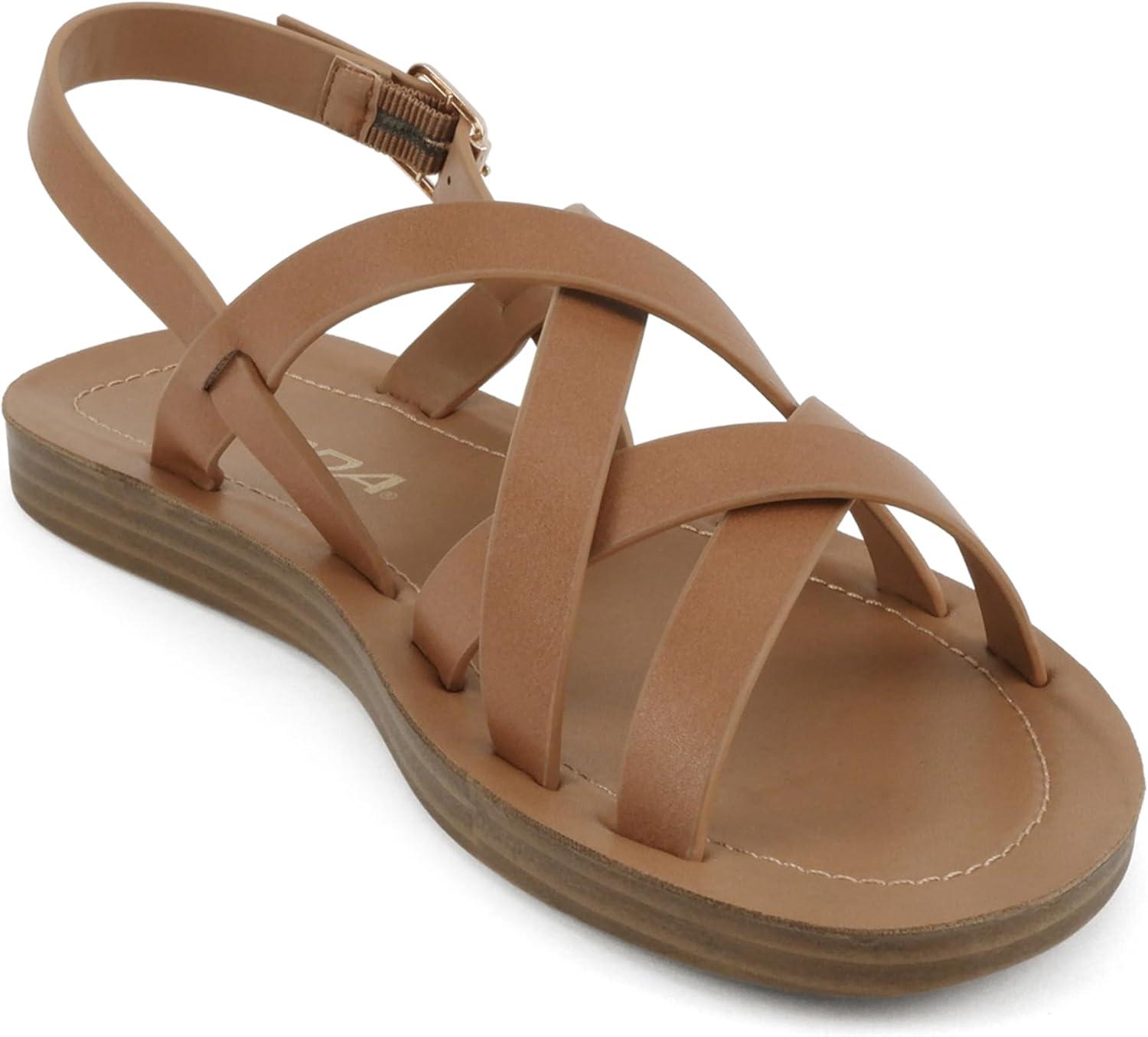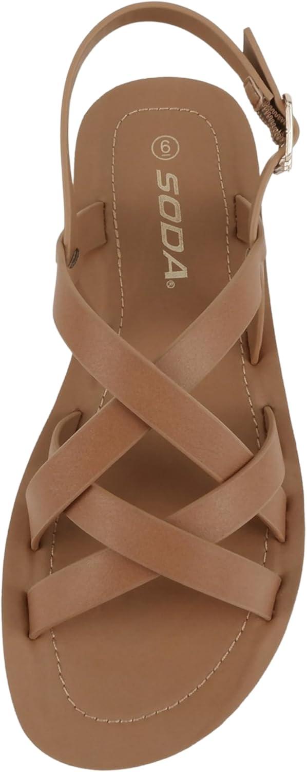 Soda WATCH ~ Women Casual Open Toe Gladiator Crisscross with Sling Back Buckle Fashion Slide Flat Sandal(A-cognac Pu)