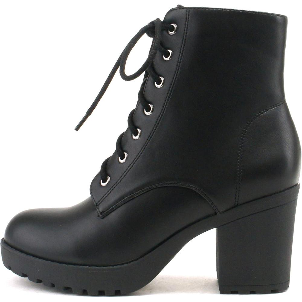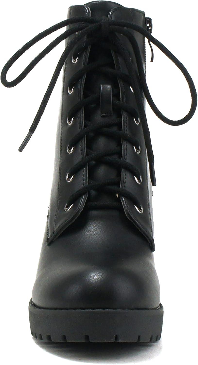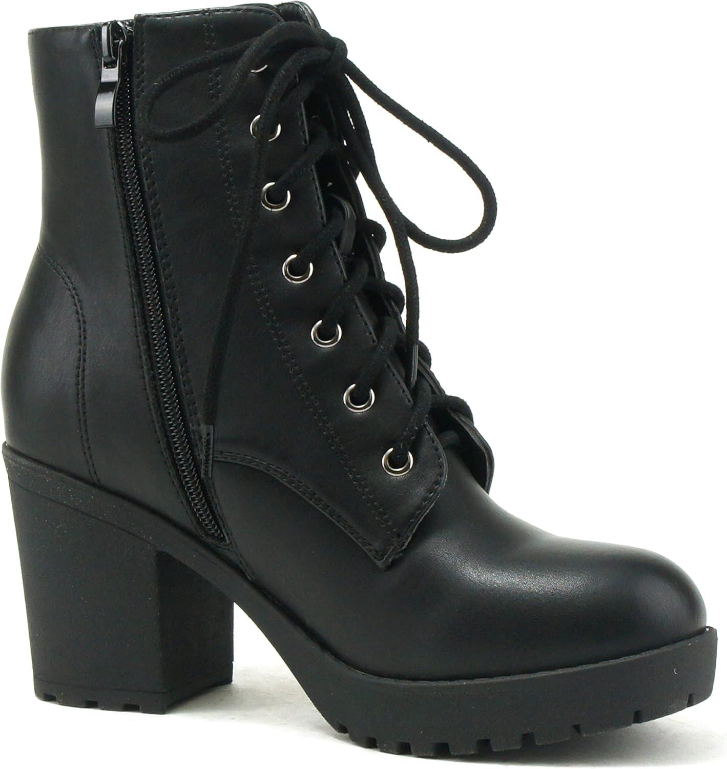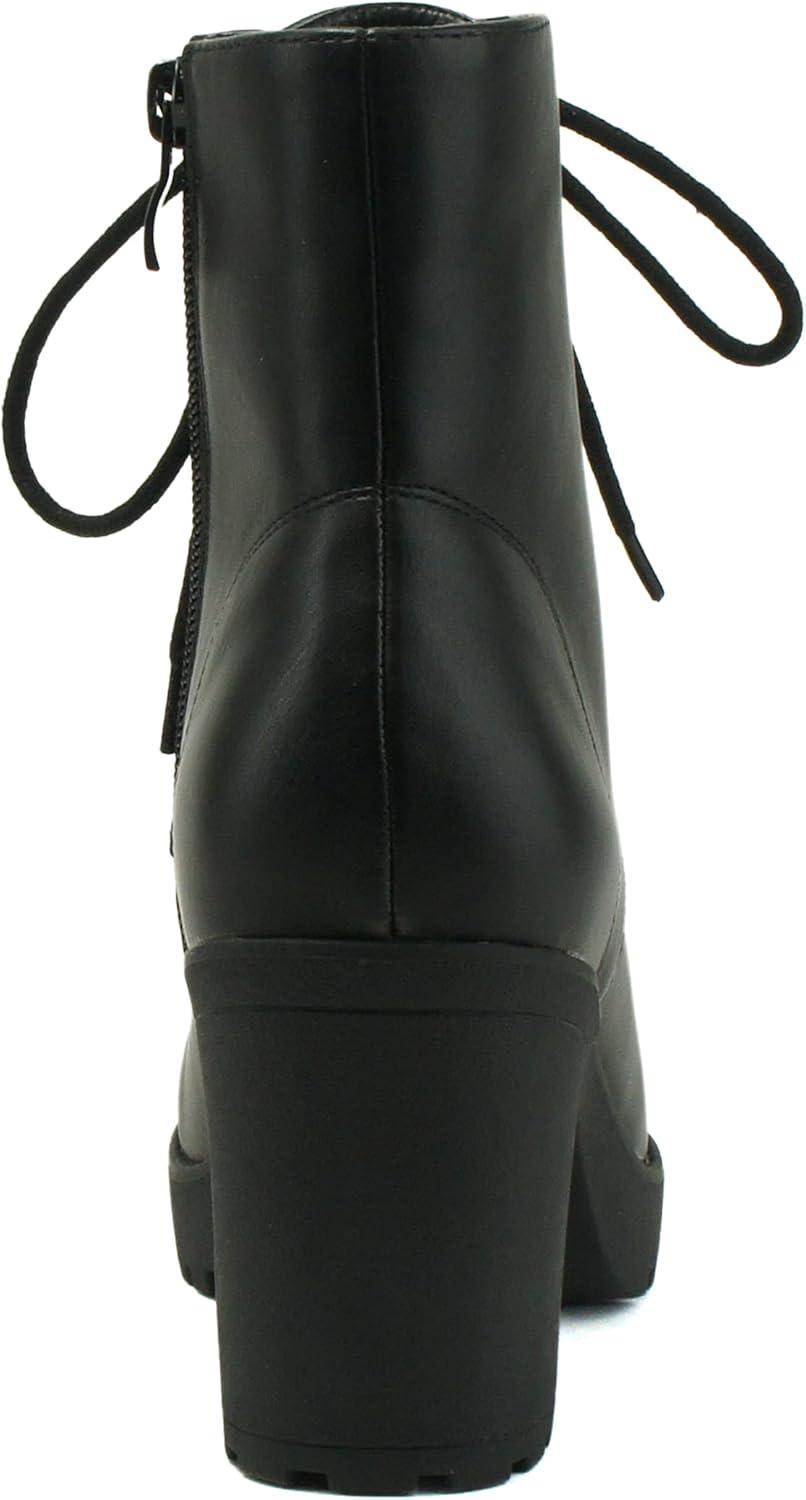 Soda WITTY Women’s Lace Up Block Mid Heel Side Zipper Platform Booties(Black Pu Witty)