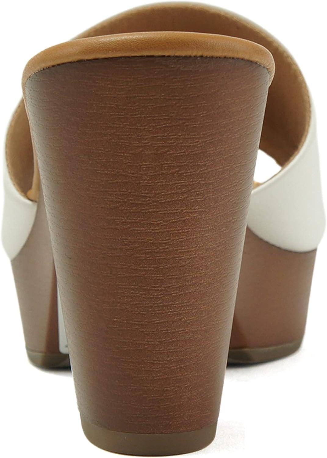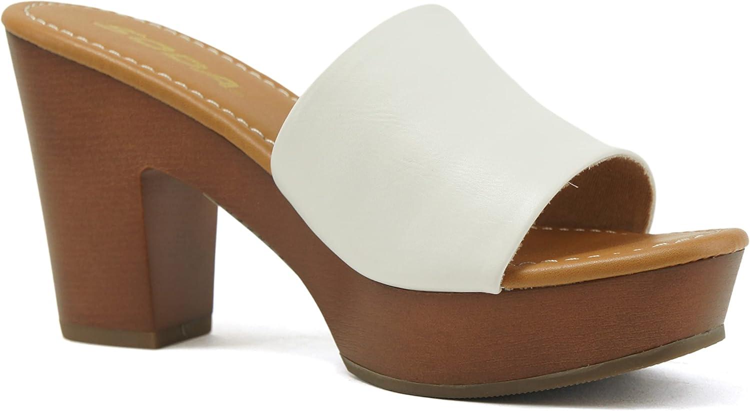 Soda Womens Sunkist Slip On Heeled Platform Sandal(White Pu)