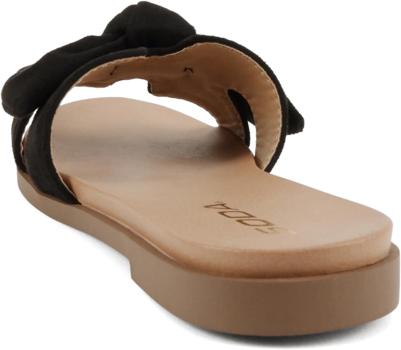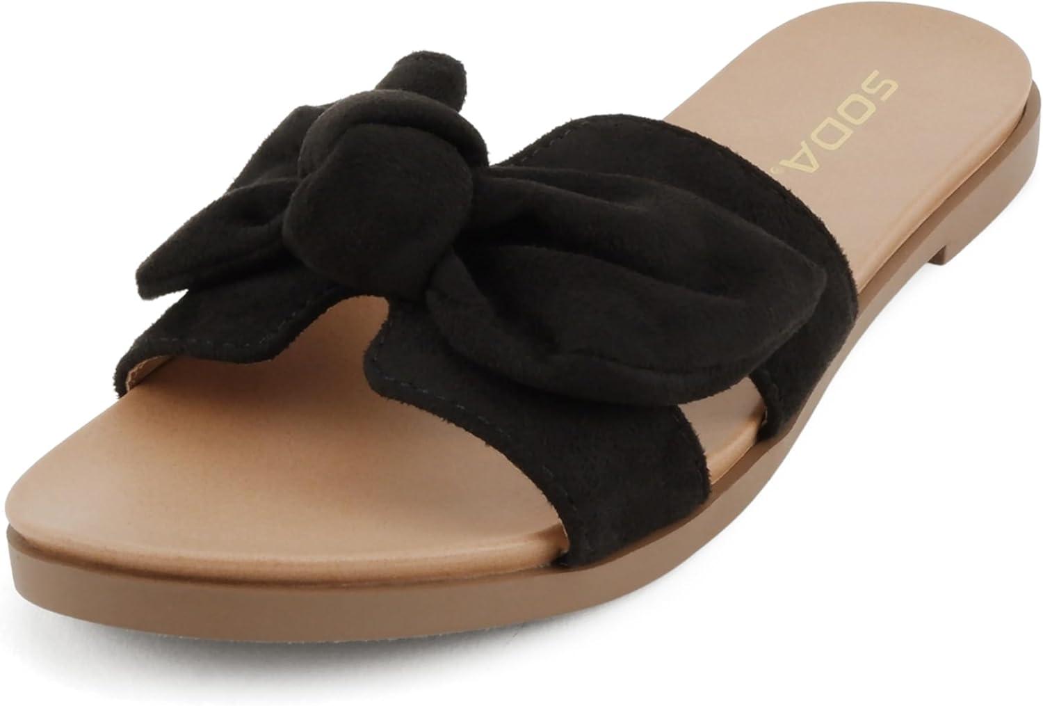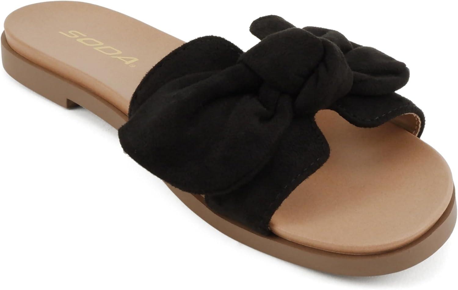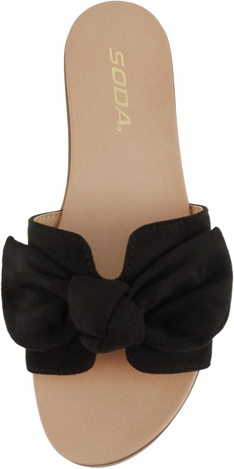 Soda Writer ~ Women Round Toe H-Band Bow Slide Sandals(Black Suede)