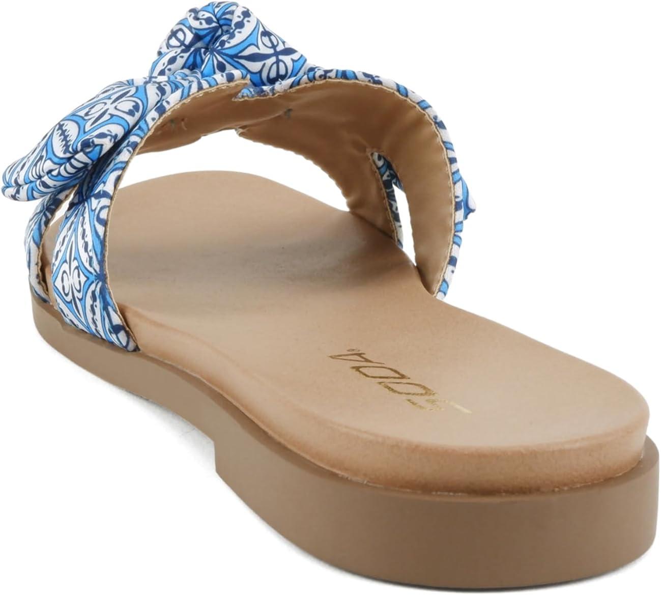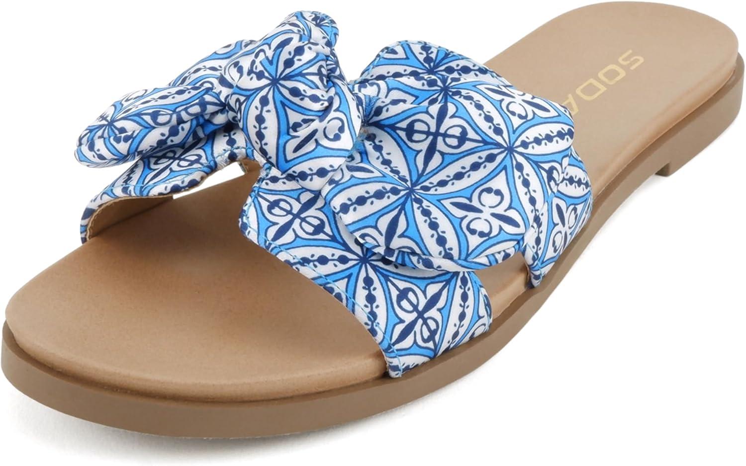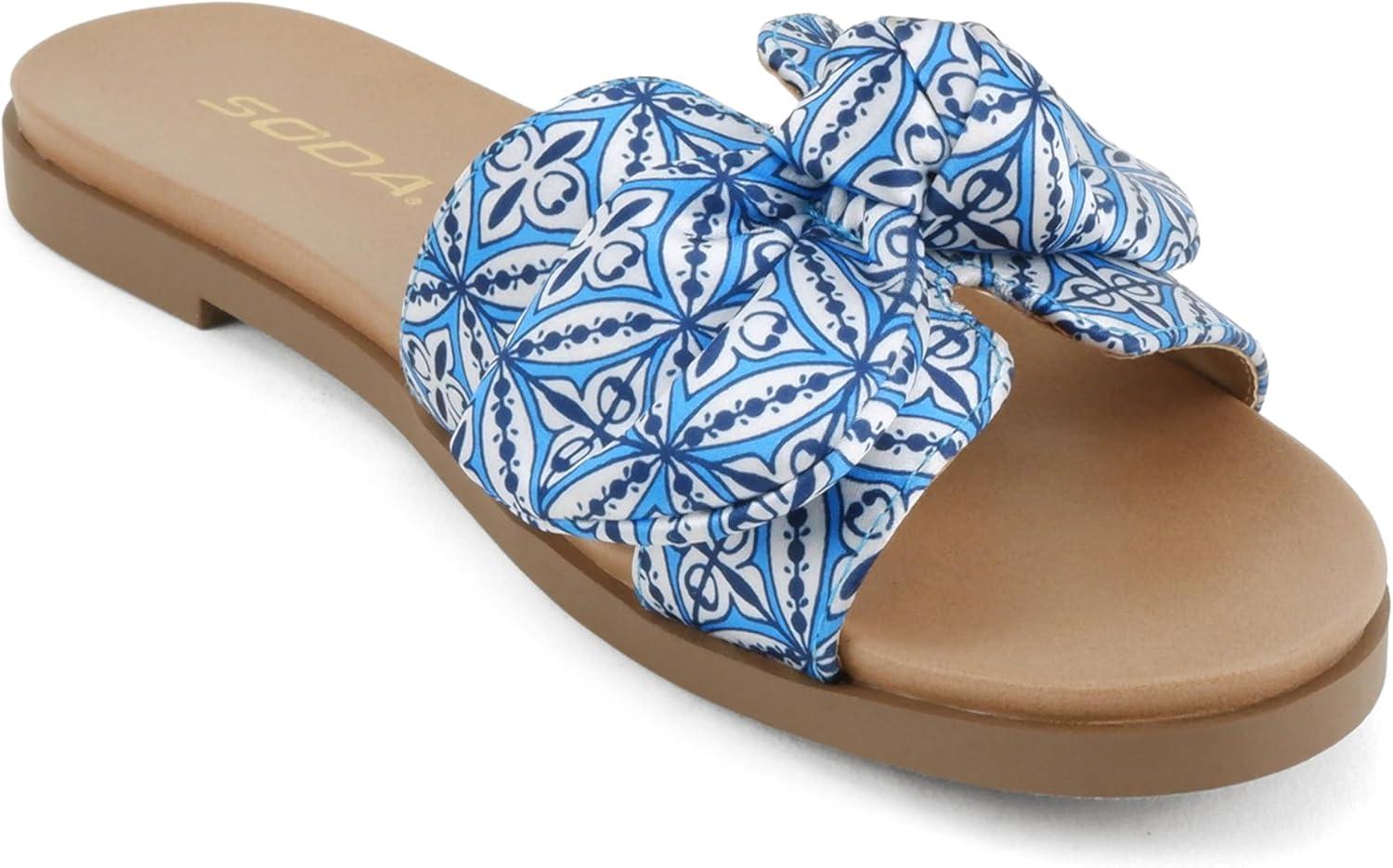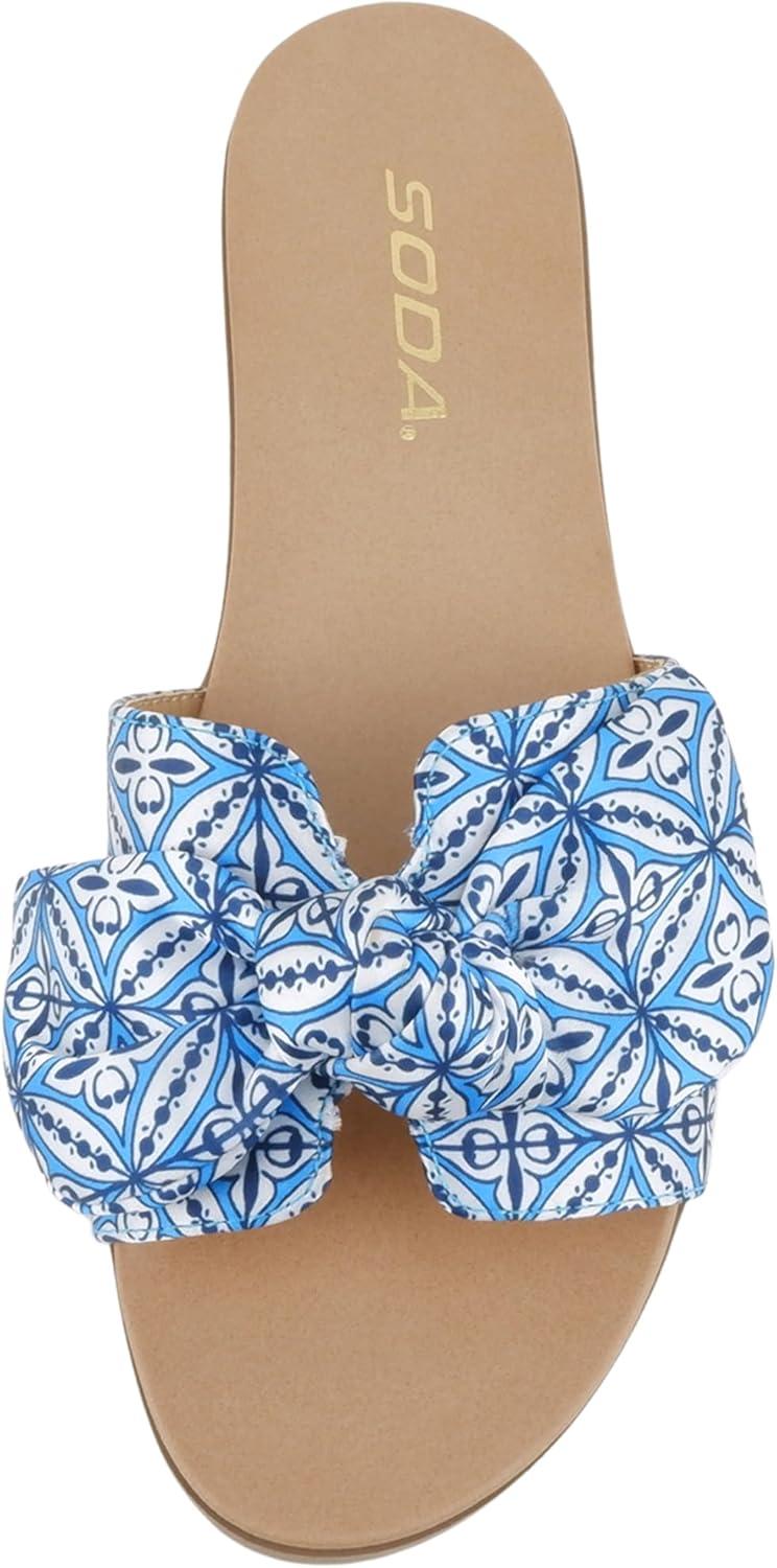 Soda Writer ~ Women Round Toe H-Band Bow Slide Sandals(Blue Multi)