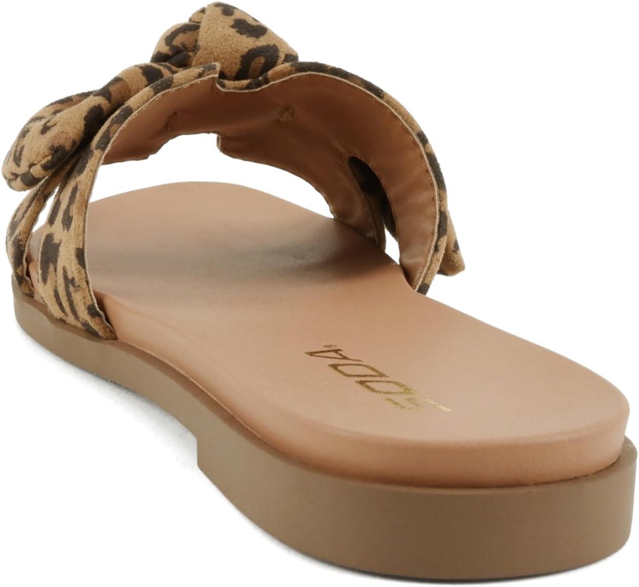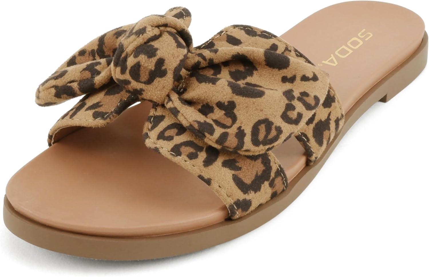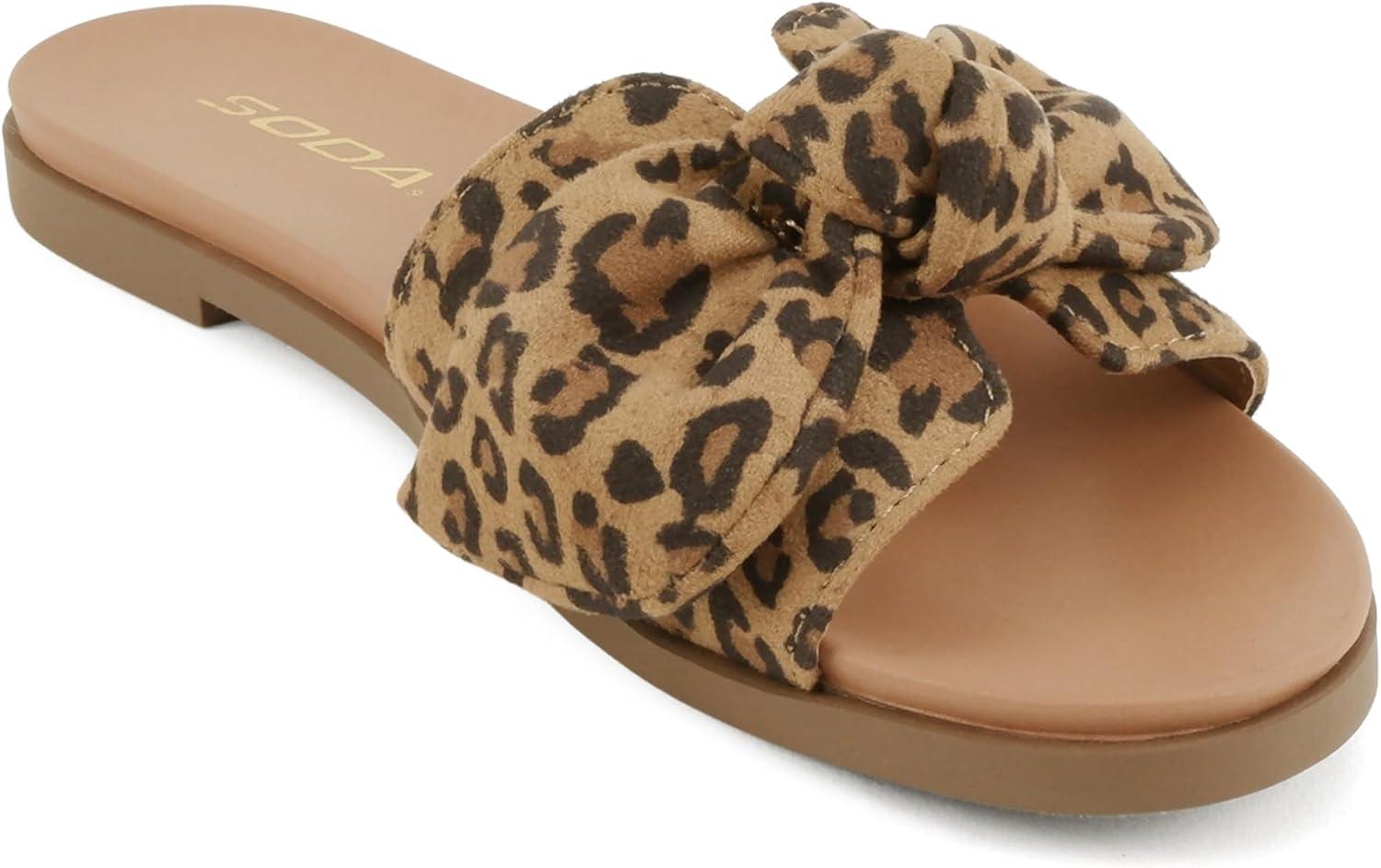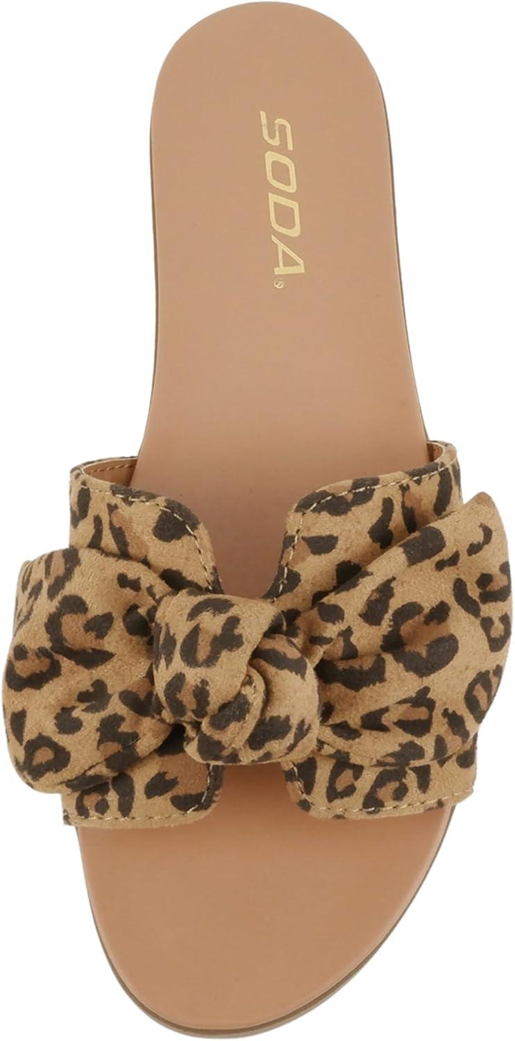Soda Writer ~ Women Round Toe H-Band Bow Slide Sandals(Leopard Suede)