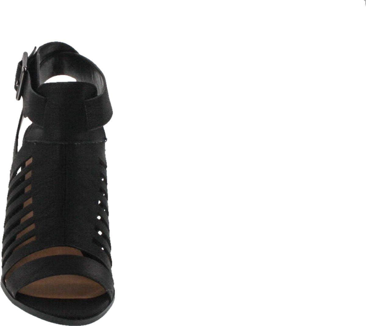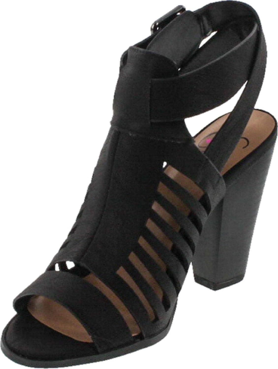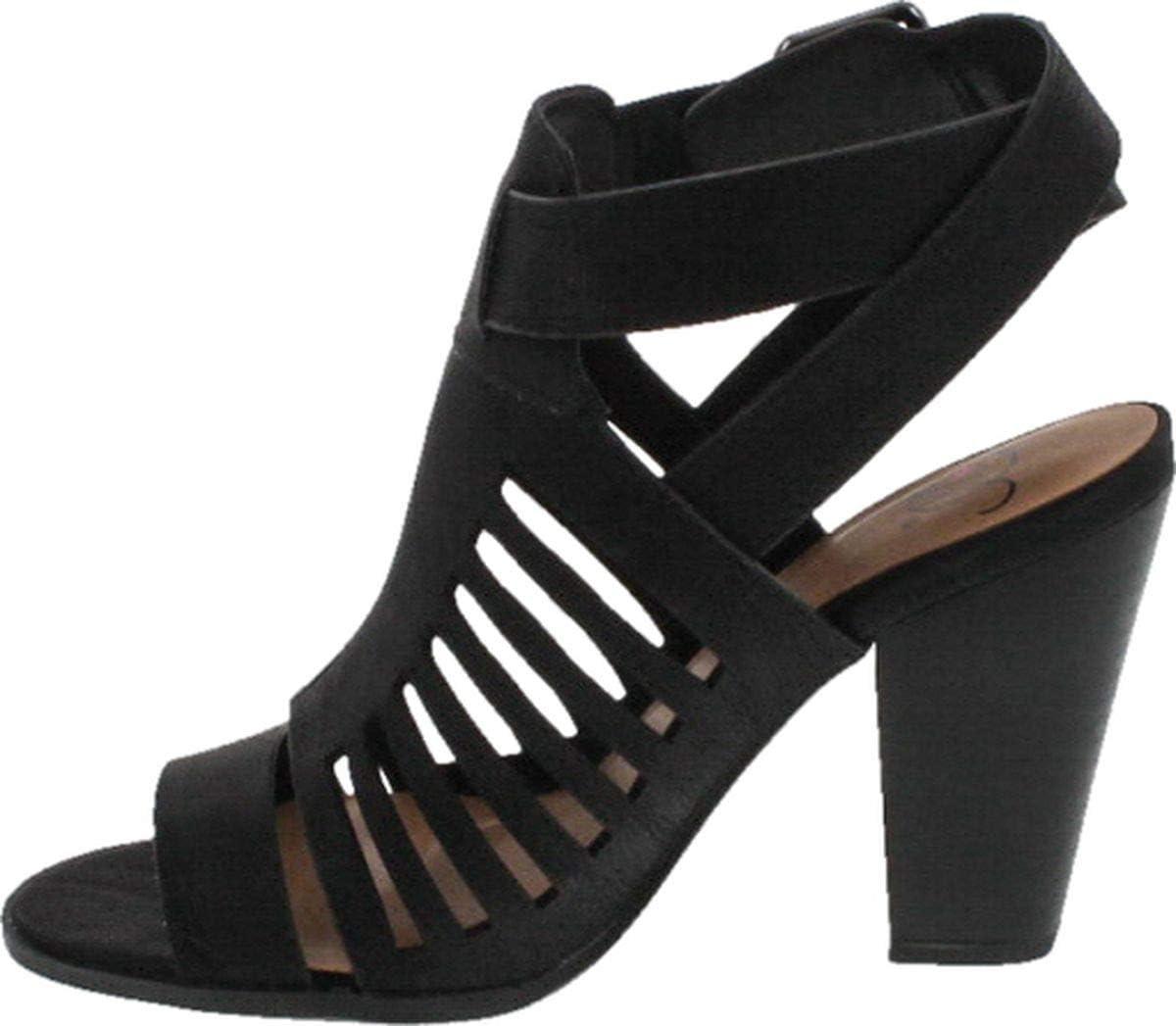 Soda Yummy ~ Gladiator Cutout Stacked Heel Sandal Shoes with Adjustable Ankle Buckle(Black Nub)