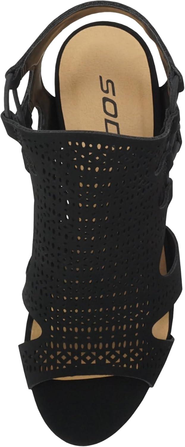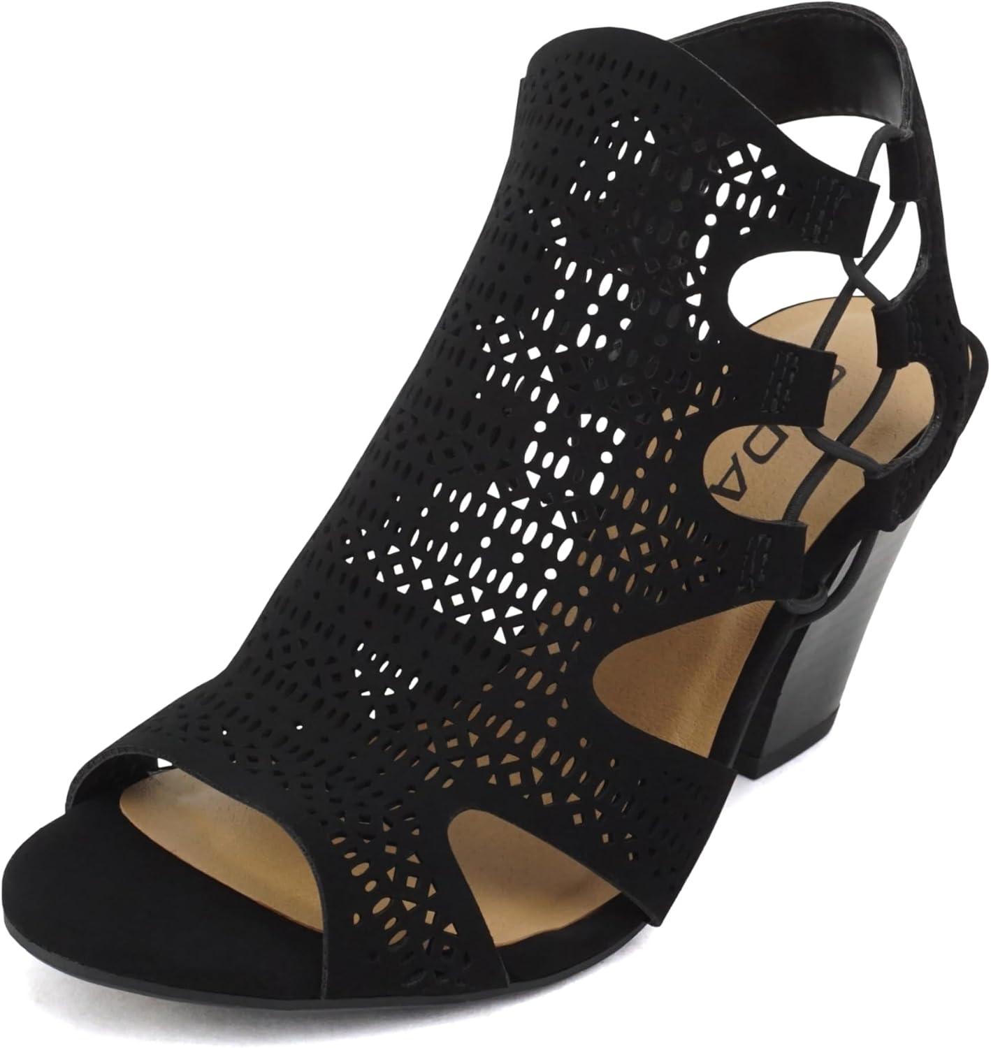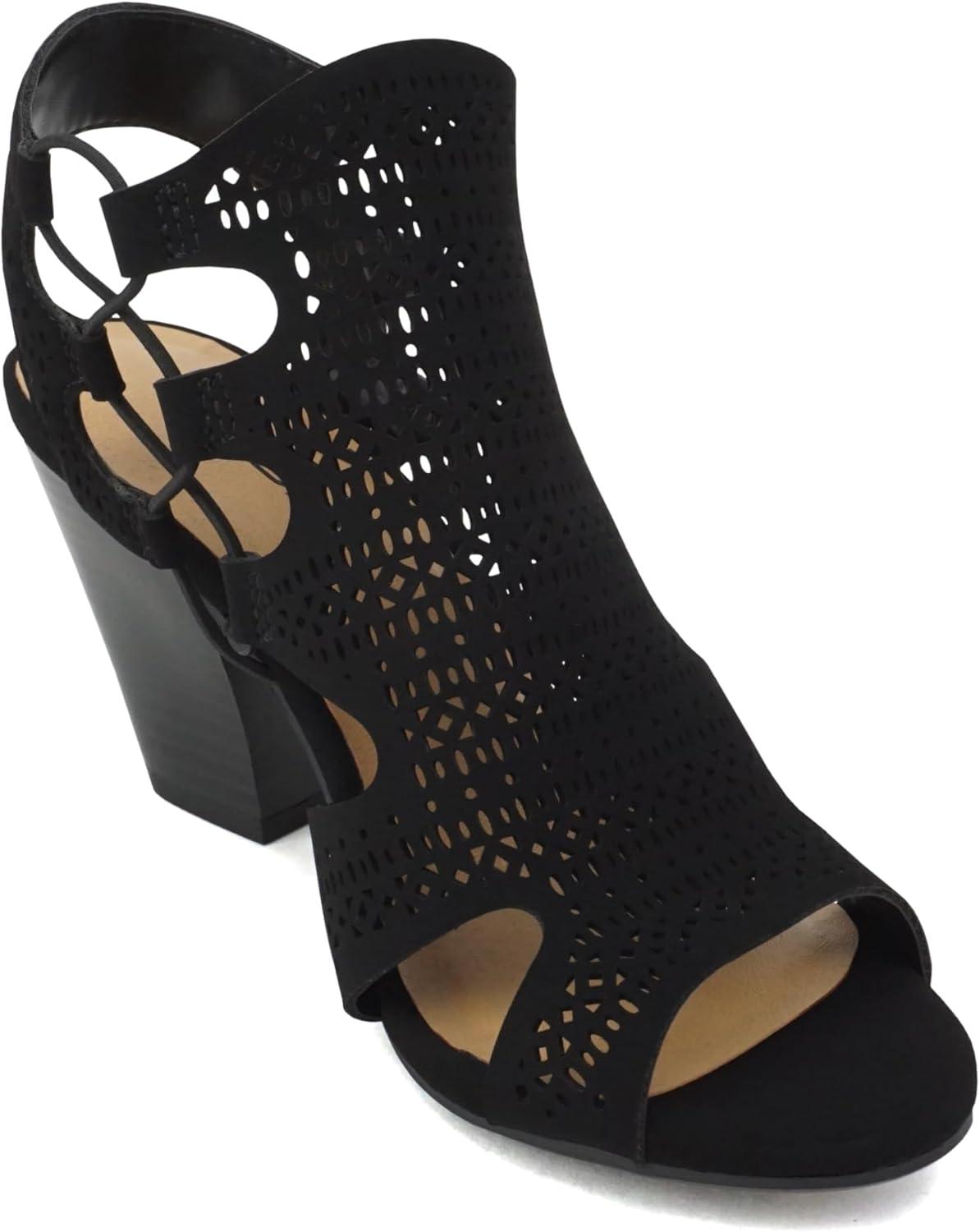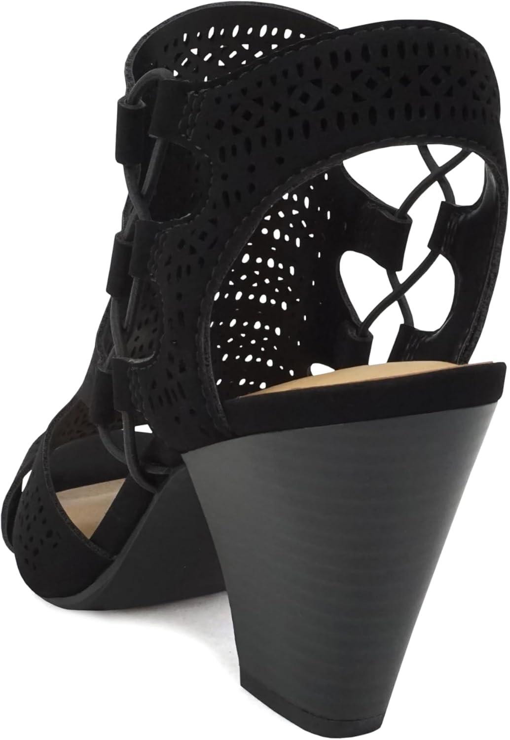 Soda Zuka ~ Women Open Toe Laser Cut High Heel Sandal with Adjustable Ankle Strap(Black Nubuck)